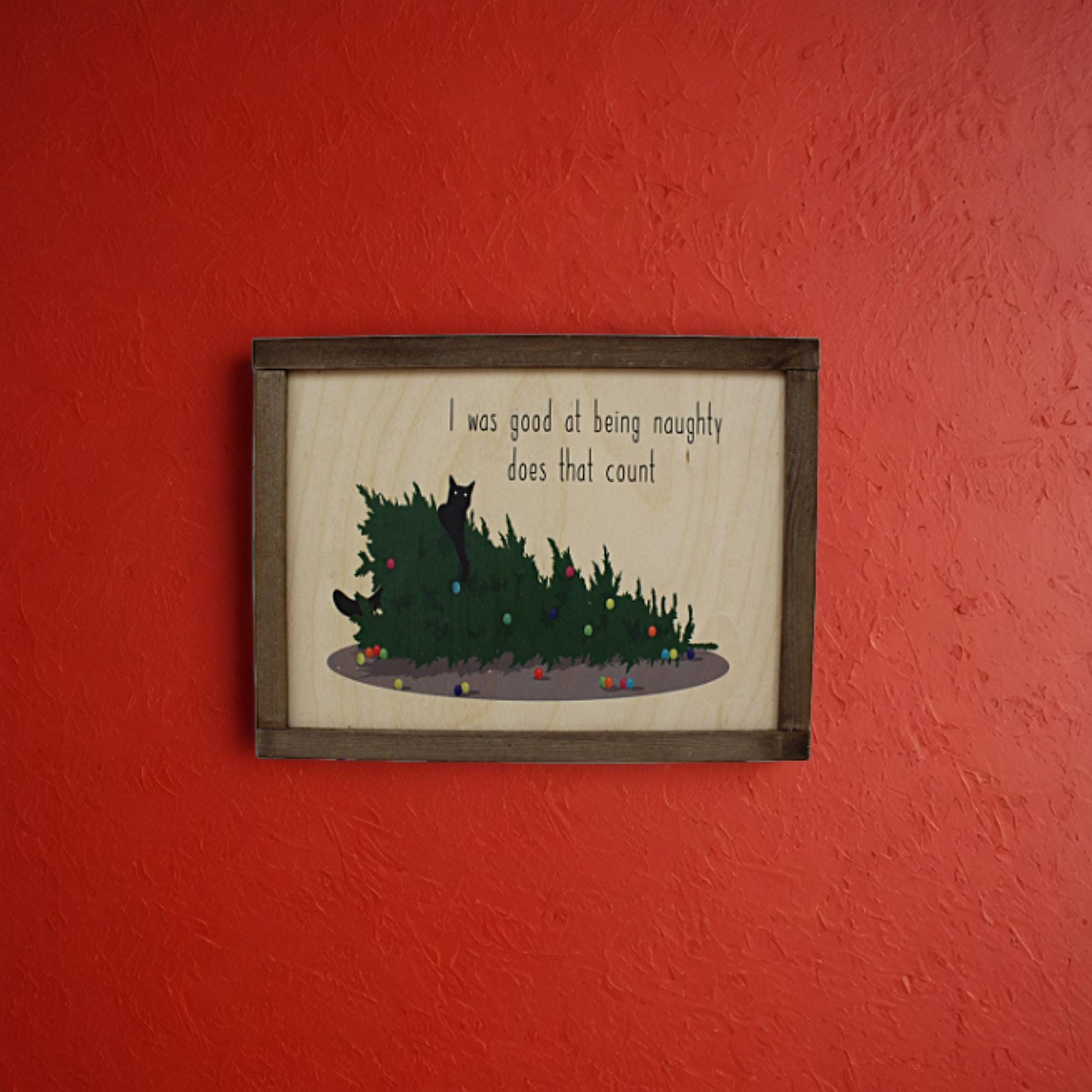 Printed Christmas Cat Sign • Funny Holiday Cat Decor • UV‑Printed Naughty Kitty Christmas Wall Art