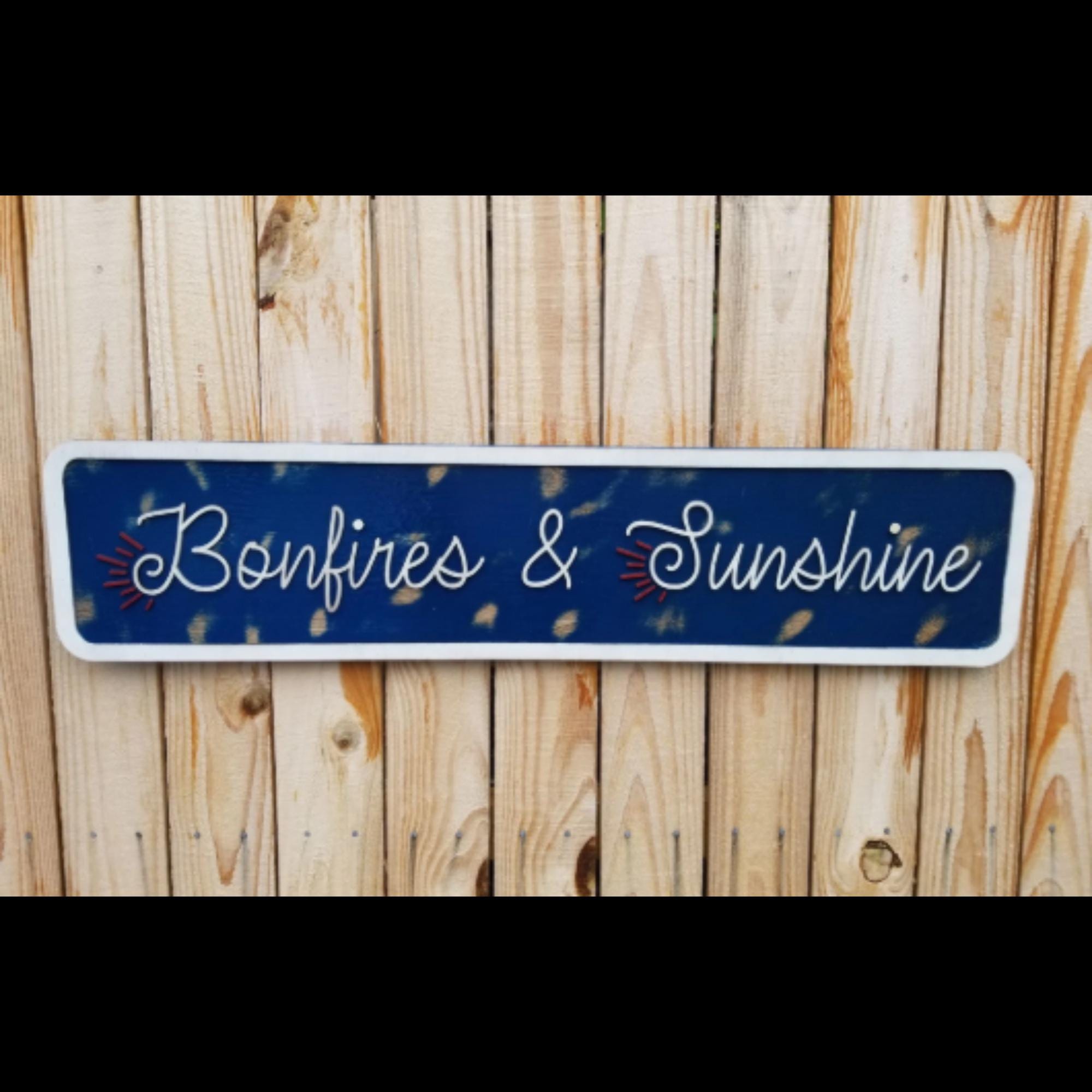 Bonfires & Sunshine Sign – Raised Wood Summer Decor – Rustic Outdoor Patio Sign – Layered Wood Wall Art Summer Porch Decor Patio Decor