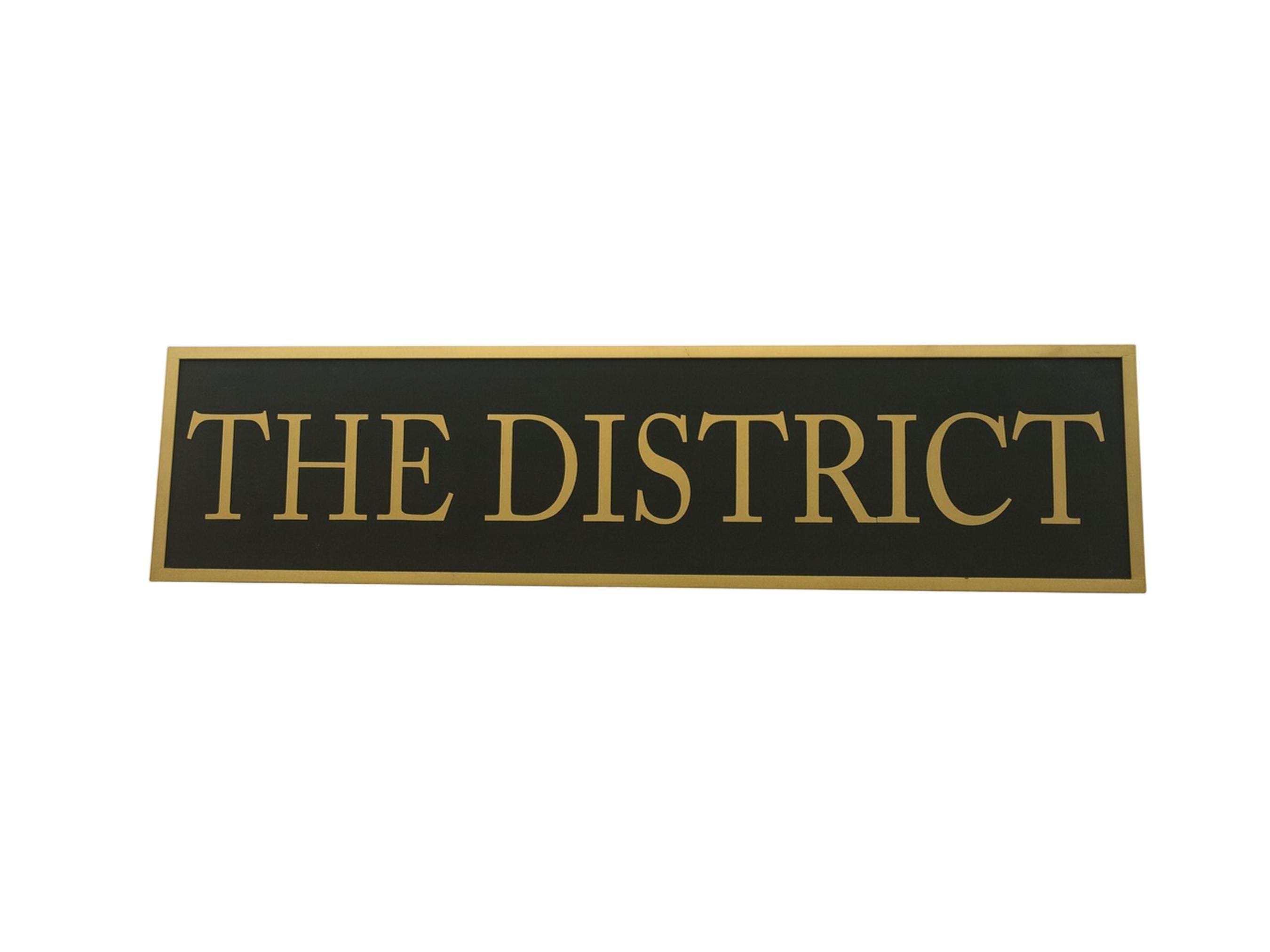 It has laser cut plywood letters and graphics. Your custom sign will NOT come standard with these graphics or lettering. All components can be customized. This sign has a solid wood frame painted gold, black painted backerboard, and gold painted letters.