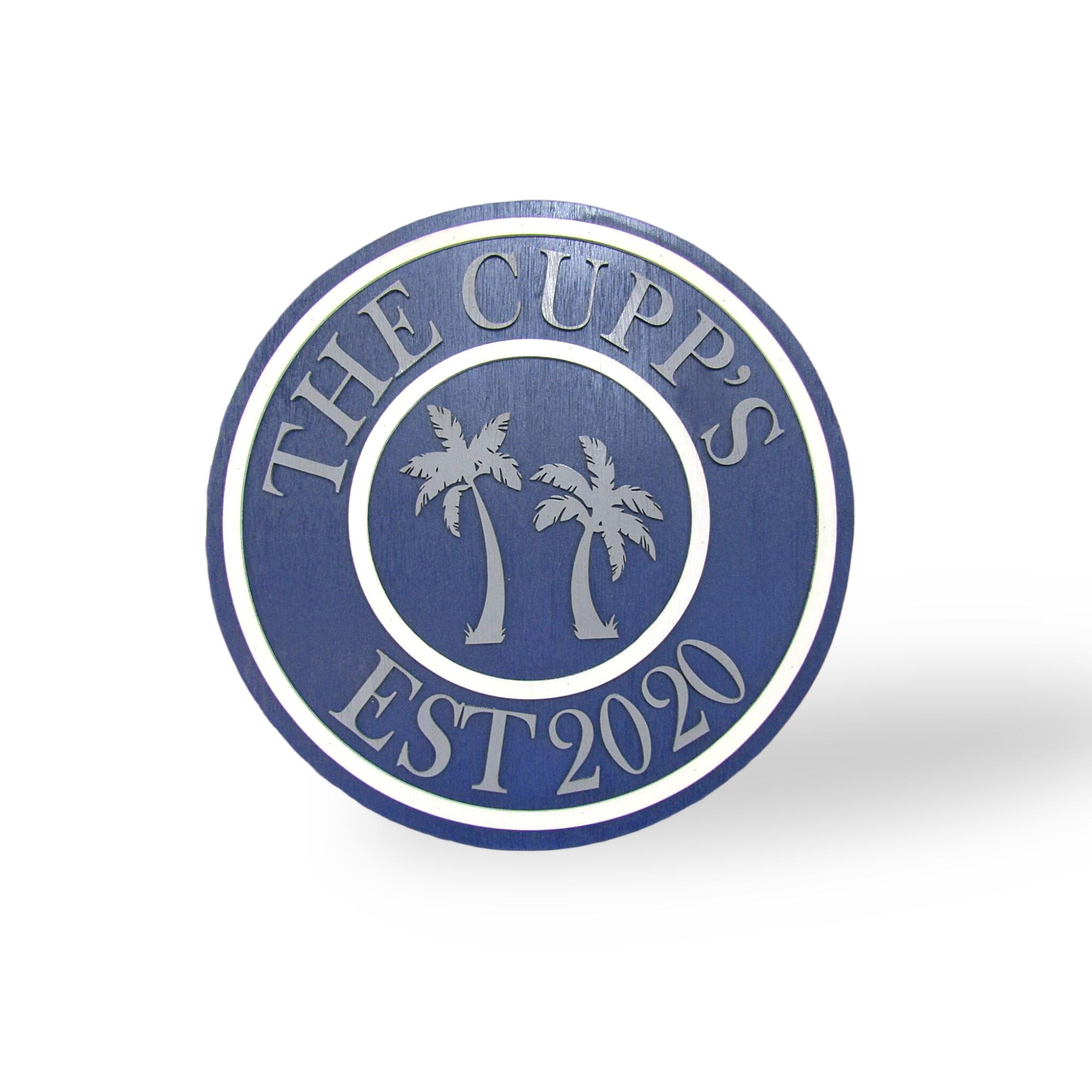 Rustic Coastal Farmhouse Family Name Sign • Round Wood Sign with Palm Trees • Personalized Established Date Decor for Beach‑Loving Homes