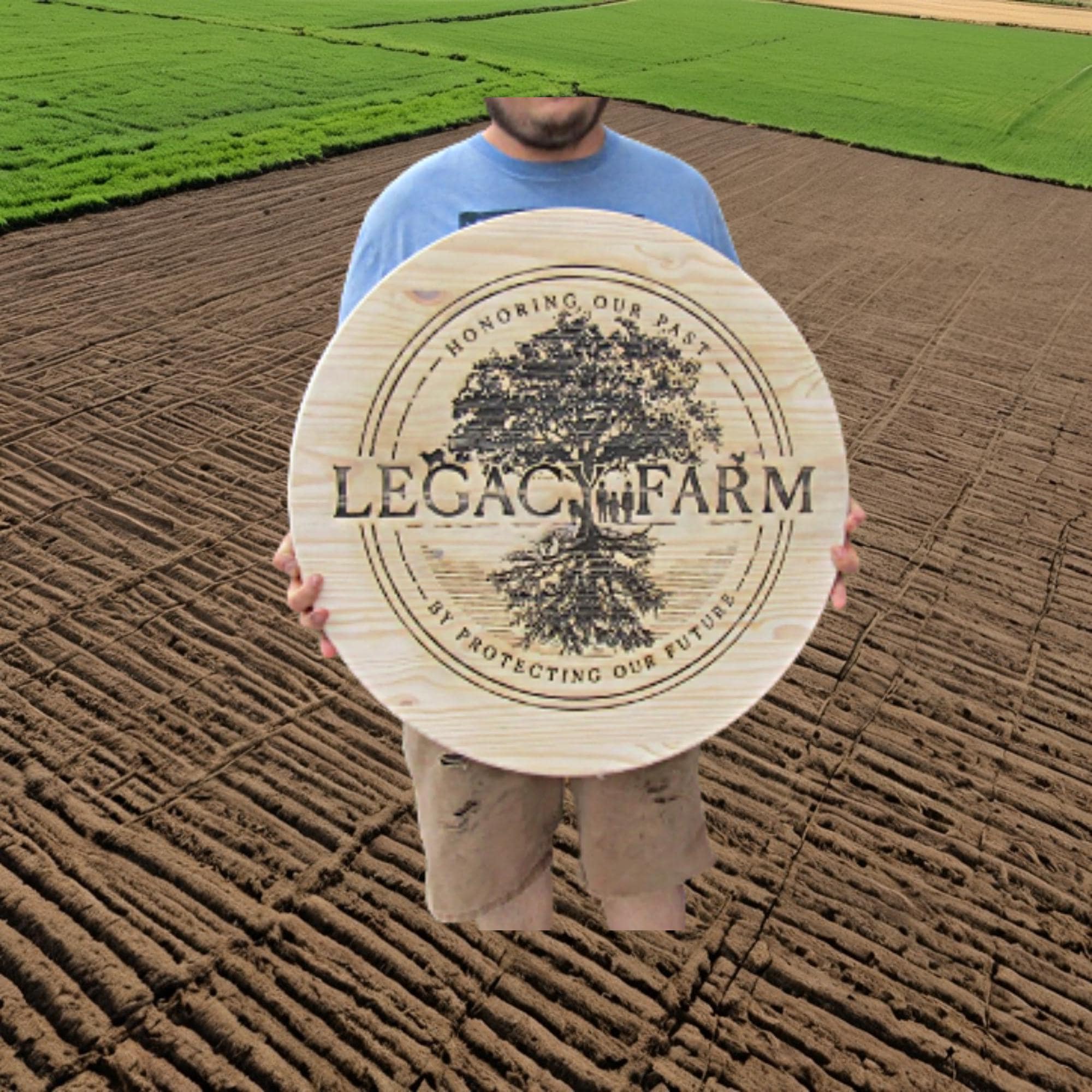 Custom Farm Logo Engraved Wood Sign • Deep Carved Homestead Sign • Rustic Round Barn or Family Farm Plaque