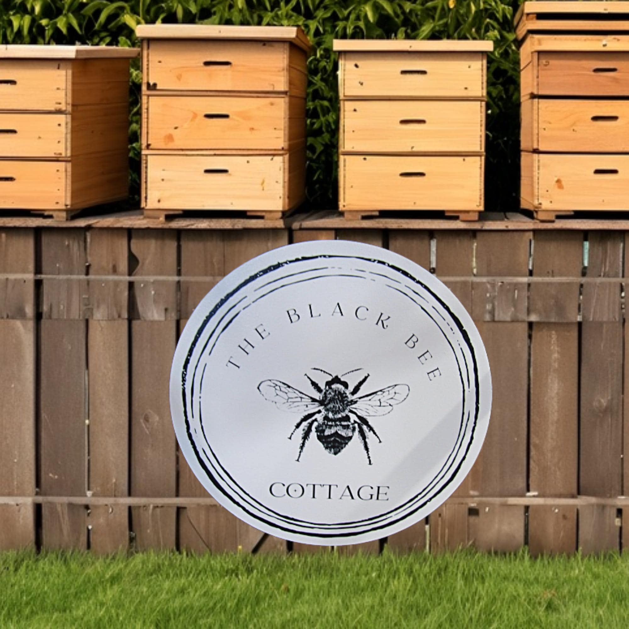 UV Printed Apothecary Cottage Sign • Vintage Bee Emblem • Botanical Herbal Shop Style Round Wood Decor
