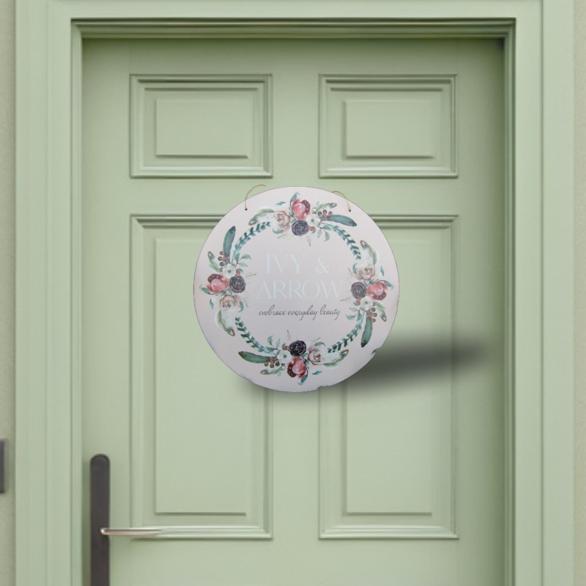 Rustic Farmhouse Floral Business Sign • Custom Round Wooden Logo Sign • Hand‑Painted Style Boutique Branding for Shops & Studios