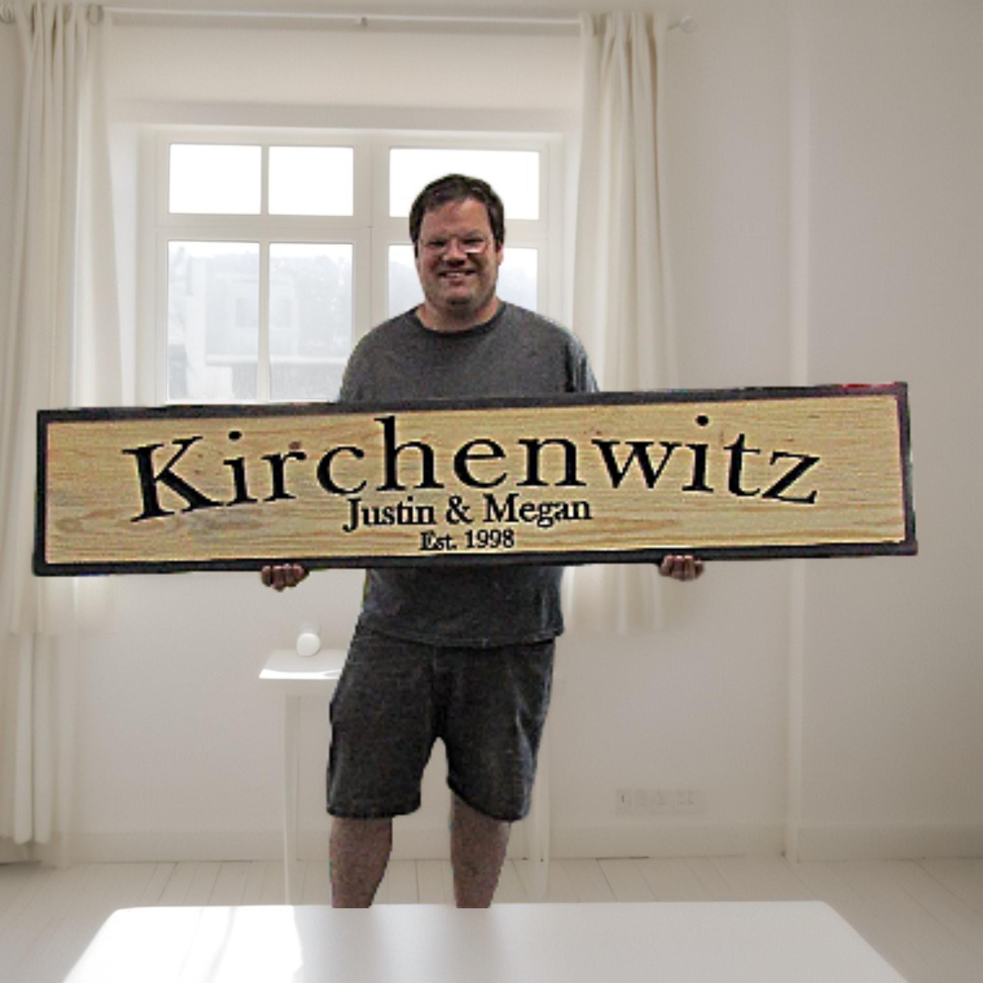 Engraved Family Name Sign – Large Custom Wood Last Name Plaque with Established Date – Rustic Personalized Wall Decor for Home or Wedding Gift