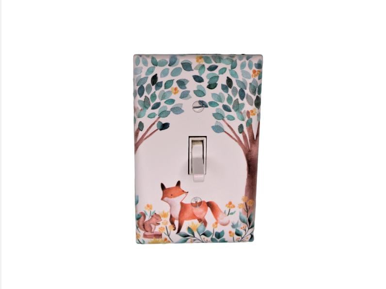 woodland cute fox squirrel forest theme animal friends printed in color light switch cover plate durable nursery baby room kids room