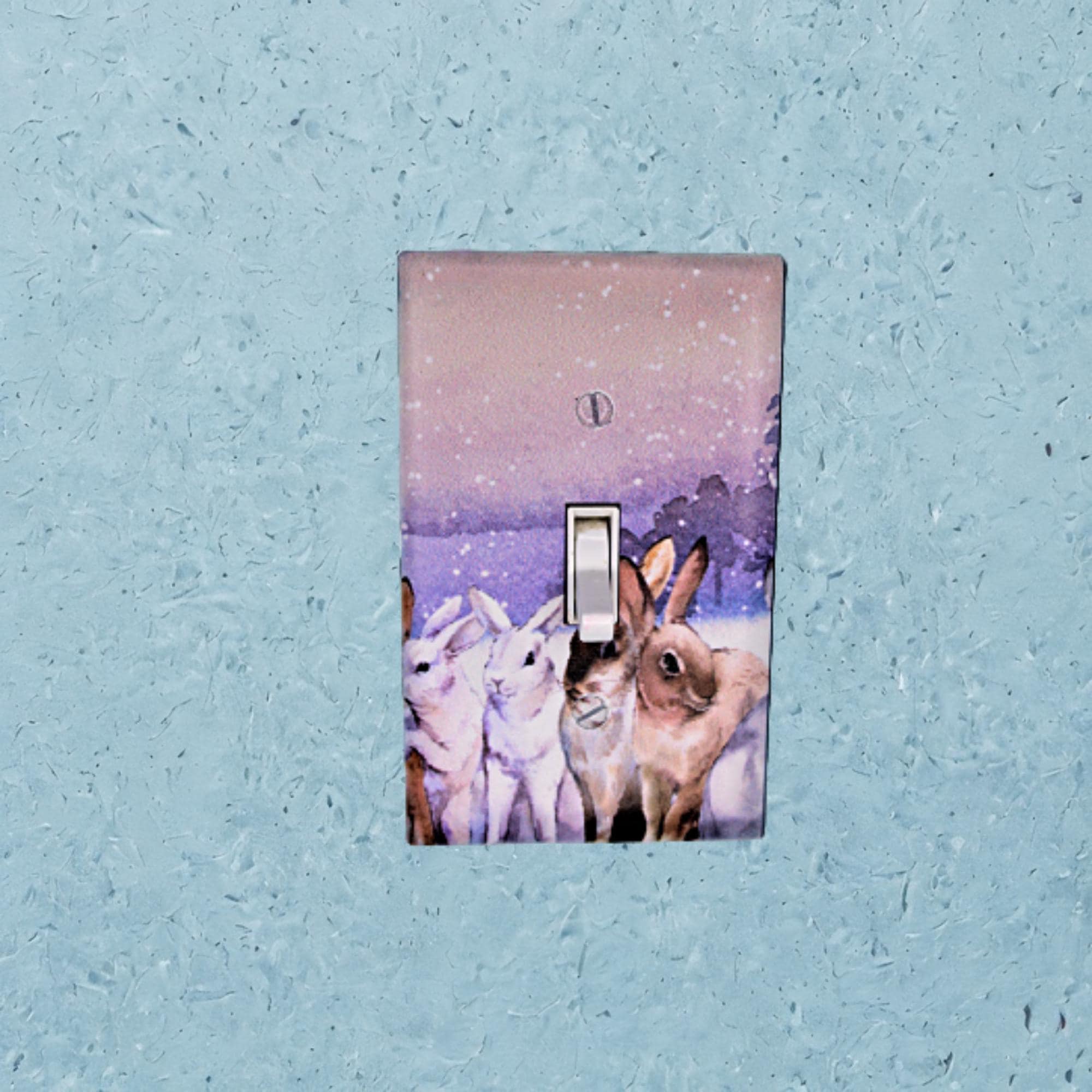 Whimsical Woodland Light Switch Cover • Watercolor Bunny Snow Scene • UV‑Printed Enchanted Forest Wall Plate