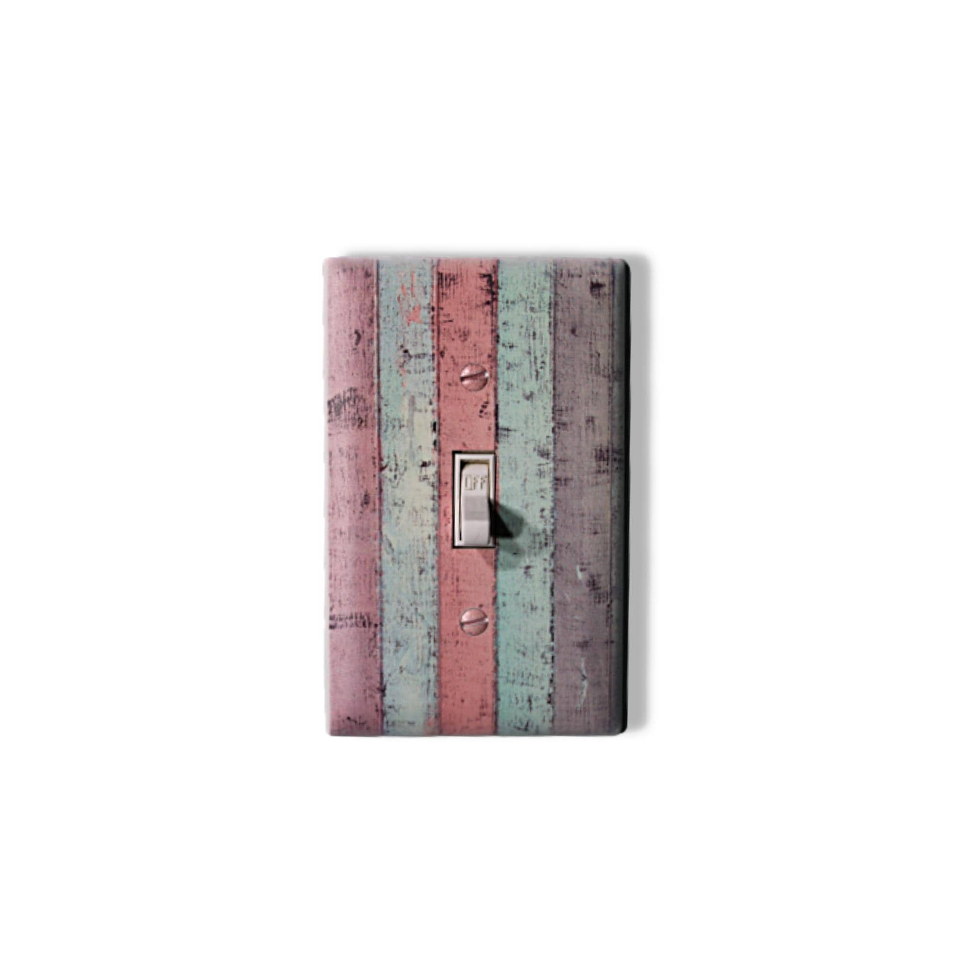 Shabby Chic Printed Light Switch Cover • Pastel Distressed Stripe Plate • Cottage‑Style UV‑Printed Wall Decor