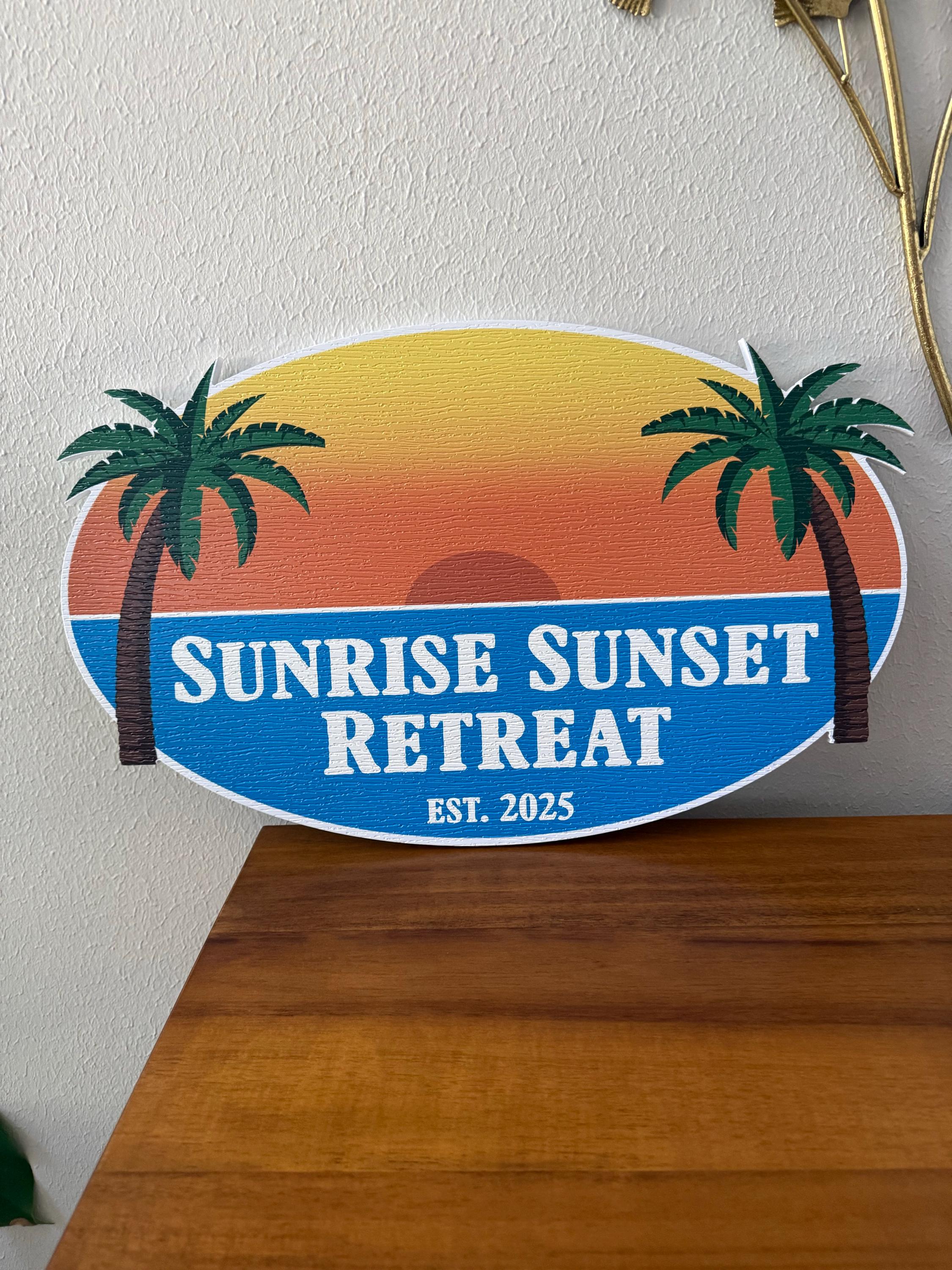 Oval Beach House Palm Contour Custom Made Sign Your Logo PVC All Weather Sturdy Outdoor Fade Mold Resistant Personalized UV Printed Color