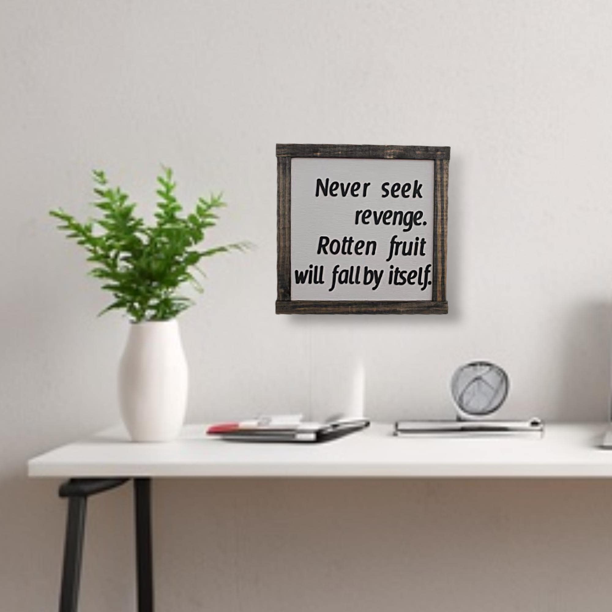 Raised Wood Quote Sign • Never Seek Revenge Wall Art • Farmhouse Inspirational Decor • Rustic Framed Wooden Motivational Sign
