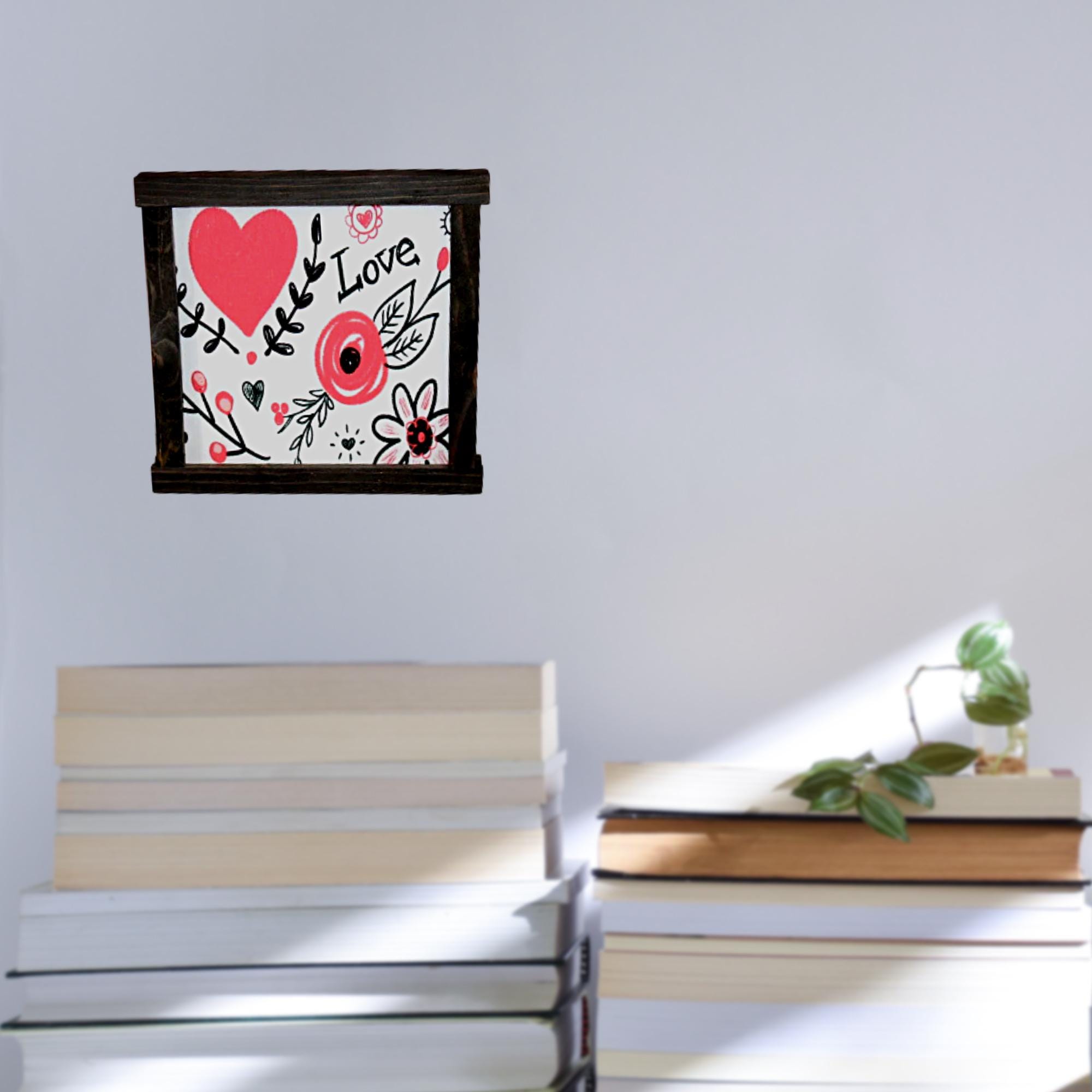 Love Floral Heart Sign – Romantic Wall Art for Bedroom or Entryway – Valentine’s Day Wood Framed Decor – Red Heart Botanical Artwork