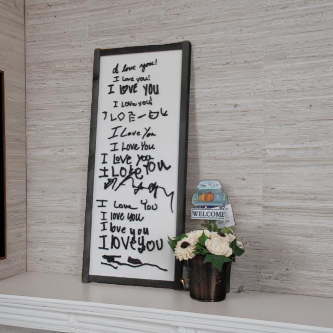 ❤️🖋️ Custom “I Love You” Handwriting Sign – Raised Letter Keepsake for Kids, Parents, or Grandparents Capture love in its most personal form with this custom wood sign featuring your actual handwriting or a loved one’s note. Whether it’s a child’s first “I love you,” a message from a parent, or a romantic keepsake for your partner, this framed sign turns a simple phrase into a lasting memory.