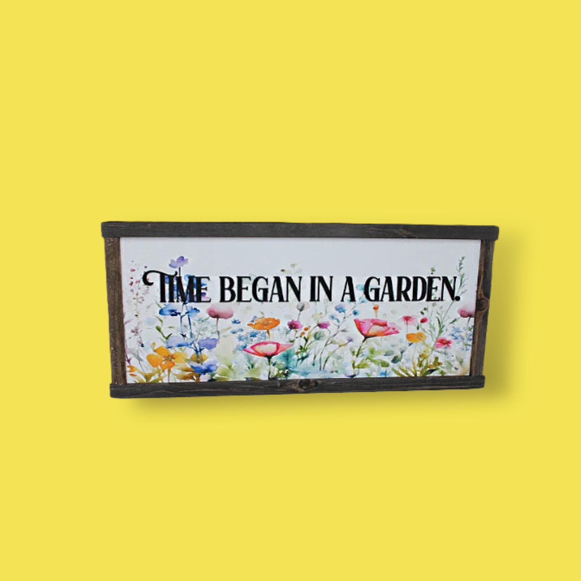 Time Began in a Garden Sign, 3D Wood Quote Sign, Floral Wall Decor, Framed Garden Sign, Inspirational Home Art, Gift for Gardener, Spring