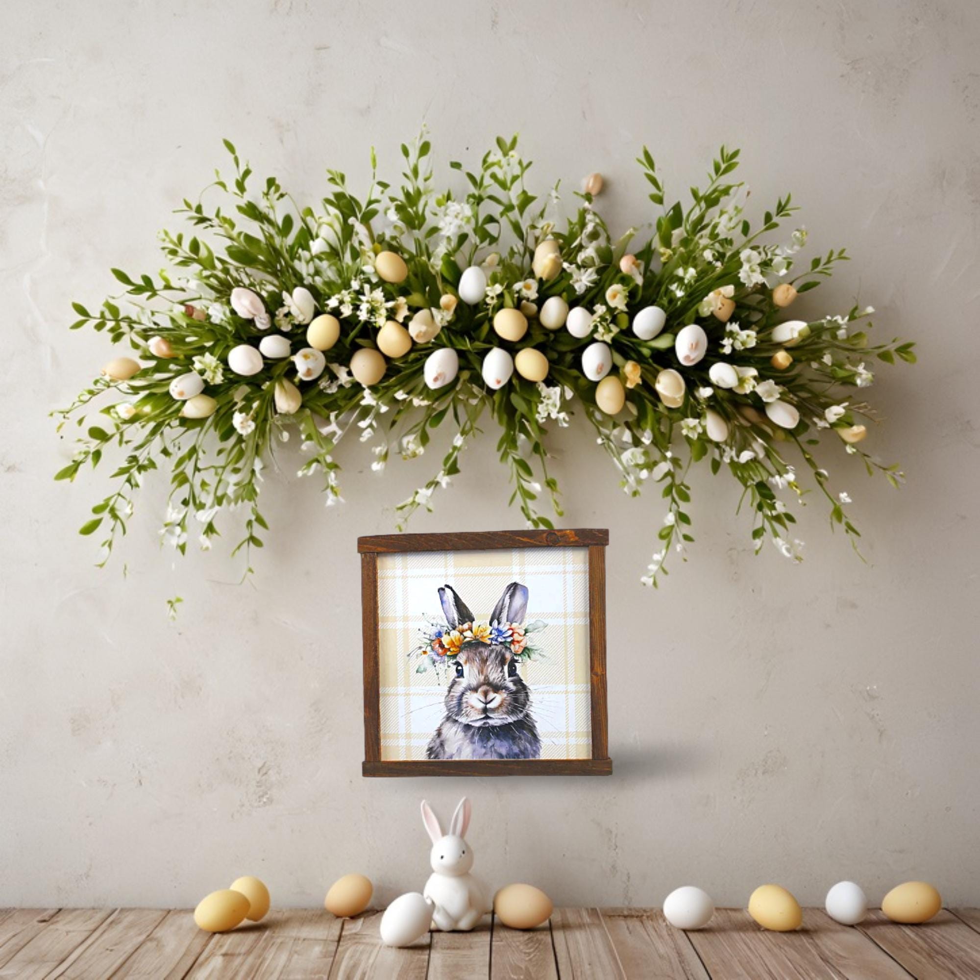 UV Printed Spring Bunny Wood Sign • Floral Rabbit Wall Decor • Rustic Cottagecore Easter Accent • Framed Wooden Spring Art