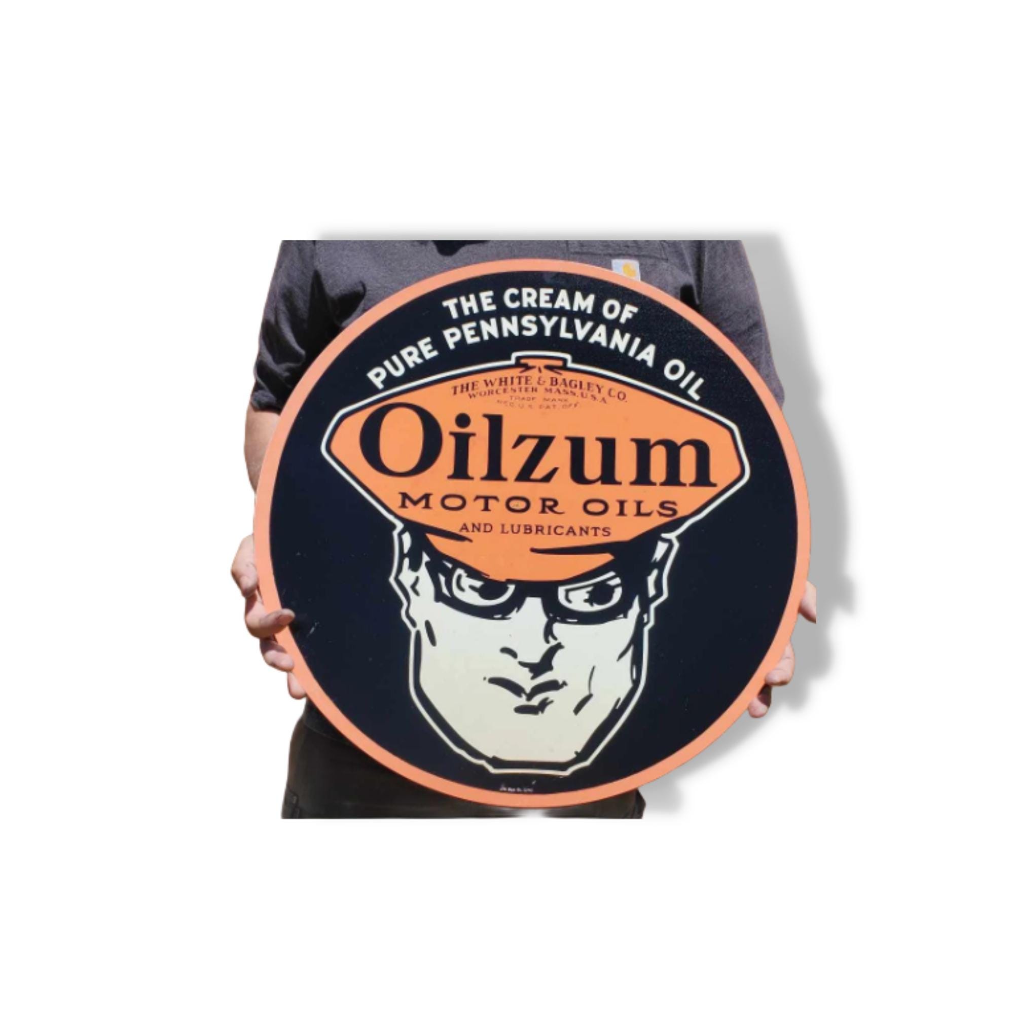 Vintage Metal Reproduction Sign • Retro Oilzum Garage Sign • Classic Motor Oil Wall Decor • Antique Style Metal Shop Sign