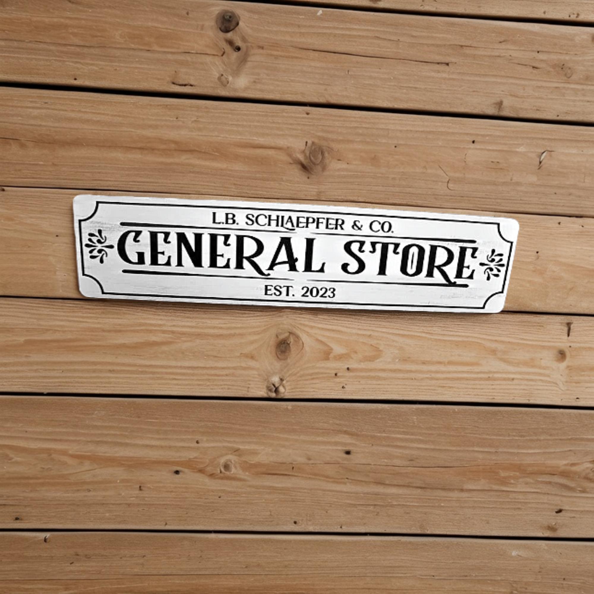 Custom General Store Wood Sign – Vintage Business Name Plaque for Rustic Farmhouse or Shop Decor 3D