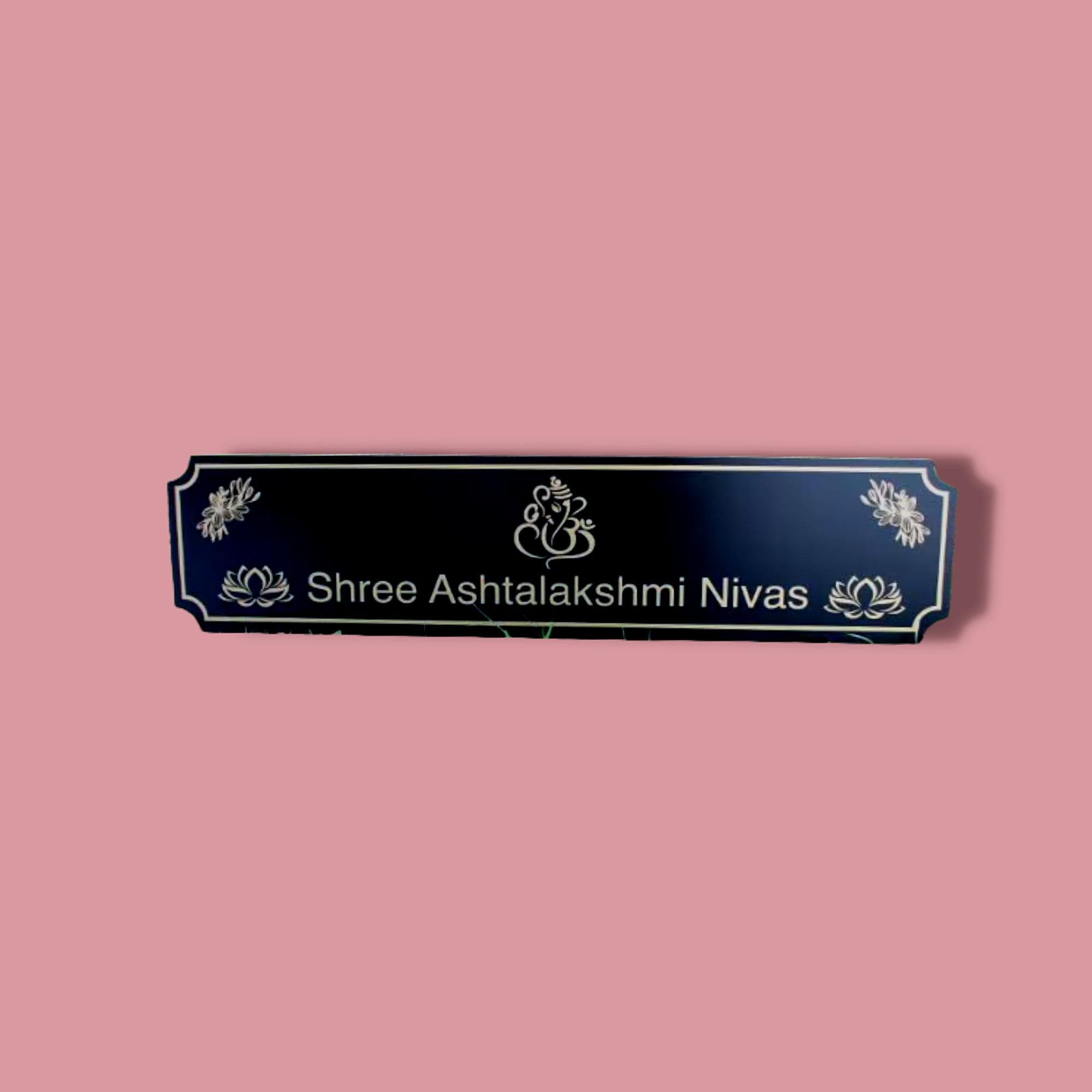 Custom Indian Nameplate, Shree Ashtalakshmi Nivas Sign, Personalized Home Entrance Decor, Elegant Black and Gold Plaque, House Warming Gift