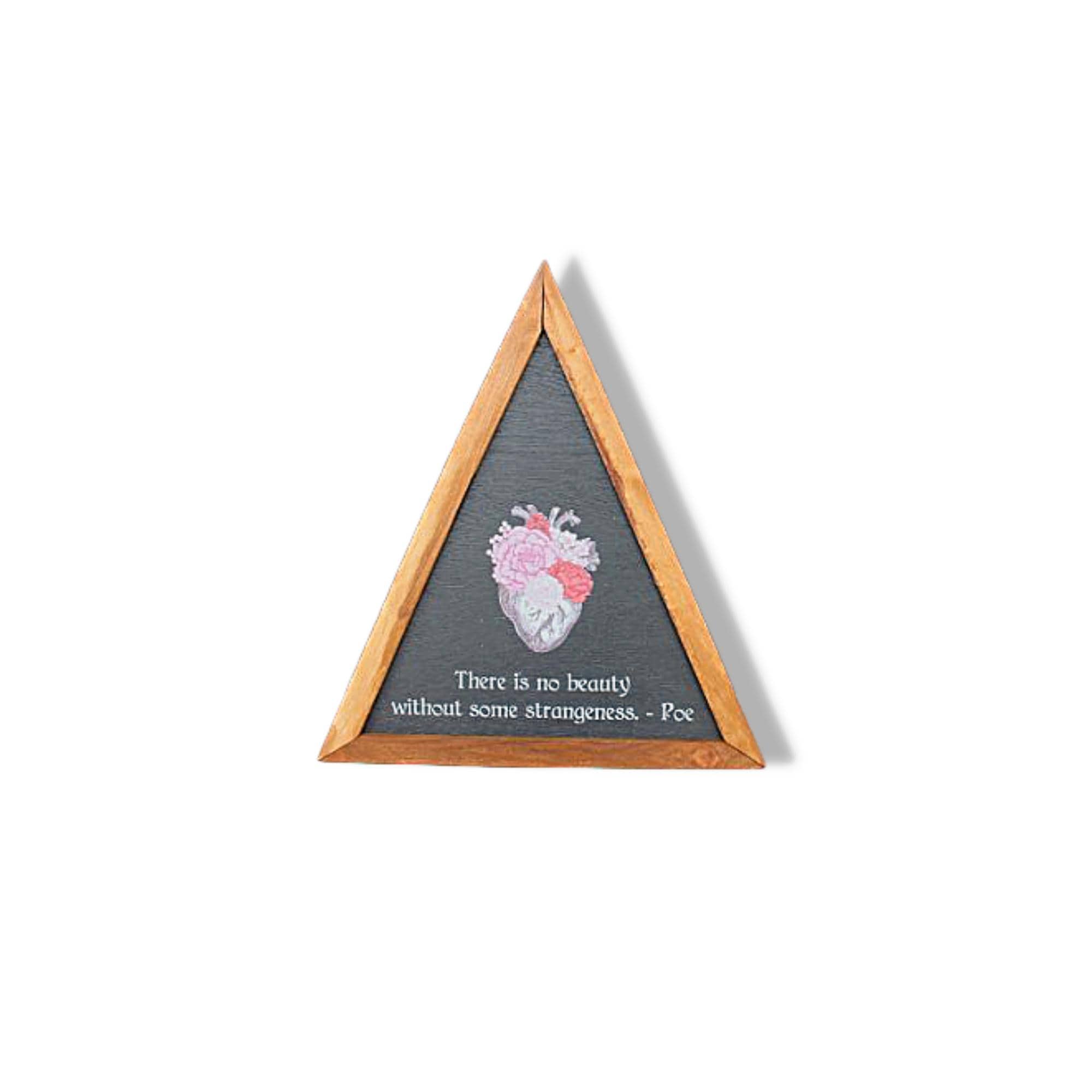 Poe Quote Wood Sign • Gothic Home Decor • Triangle Wall Art • Dark Academia Sign • Floral Heart Art • Rustic Literary Decor
