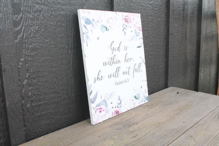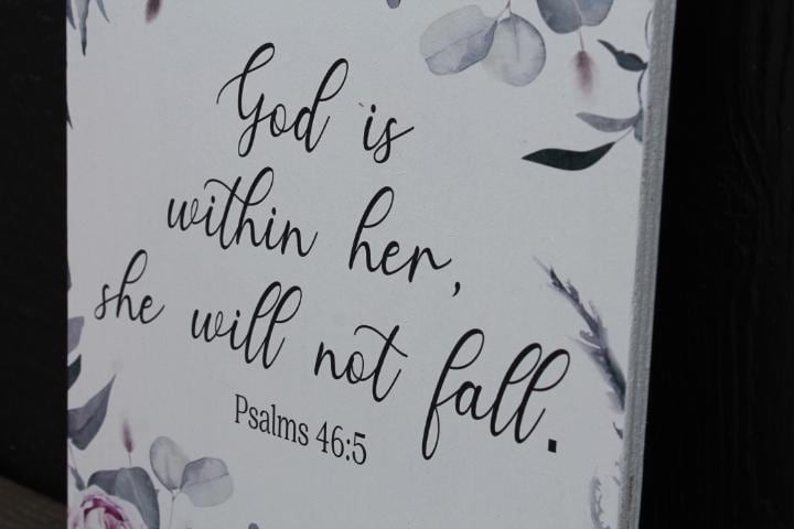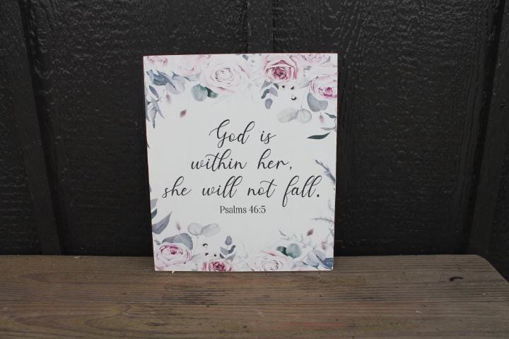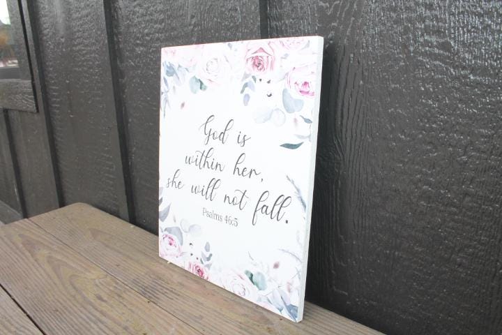 Printed Floral Scripture Sign • Feminine Christian Wall Decor • Inspirational Bible Verse Wood Sign