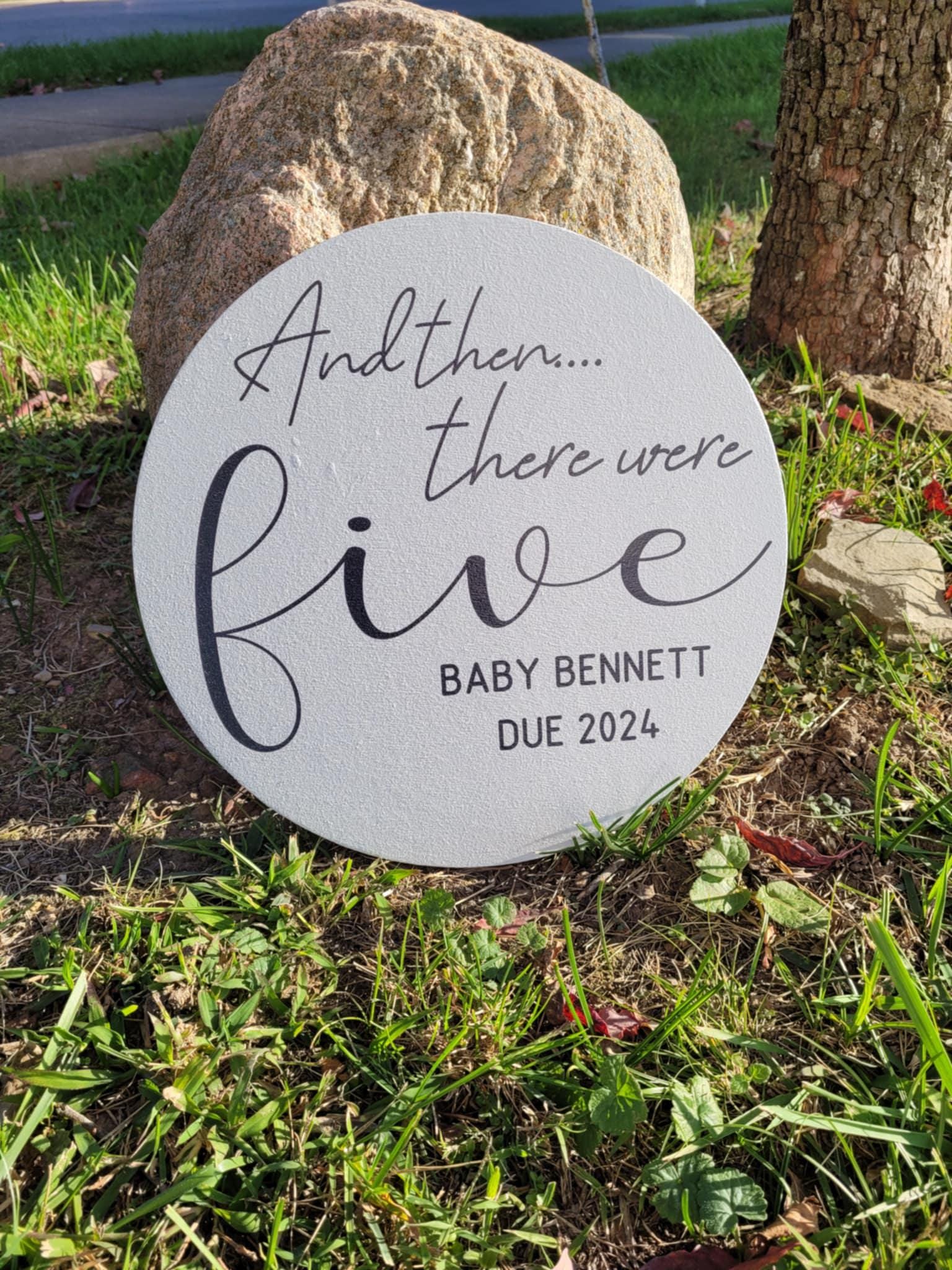 And Then There Were Life Baby Due Date Personalized Customized Lightweight Affordable Booth Vendor Door Hanger Signage UV Printed Wood