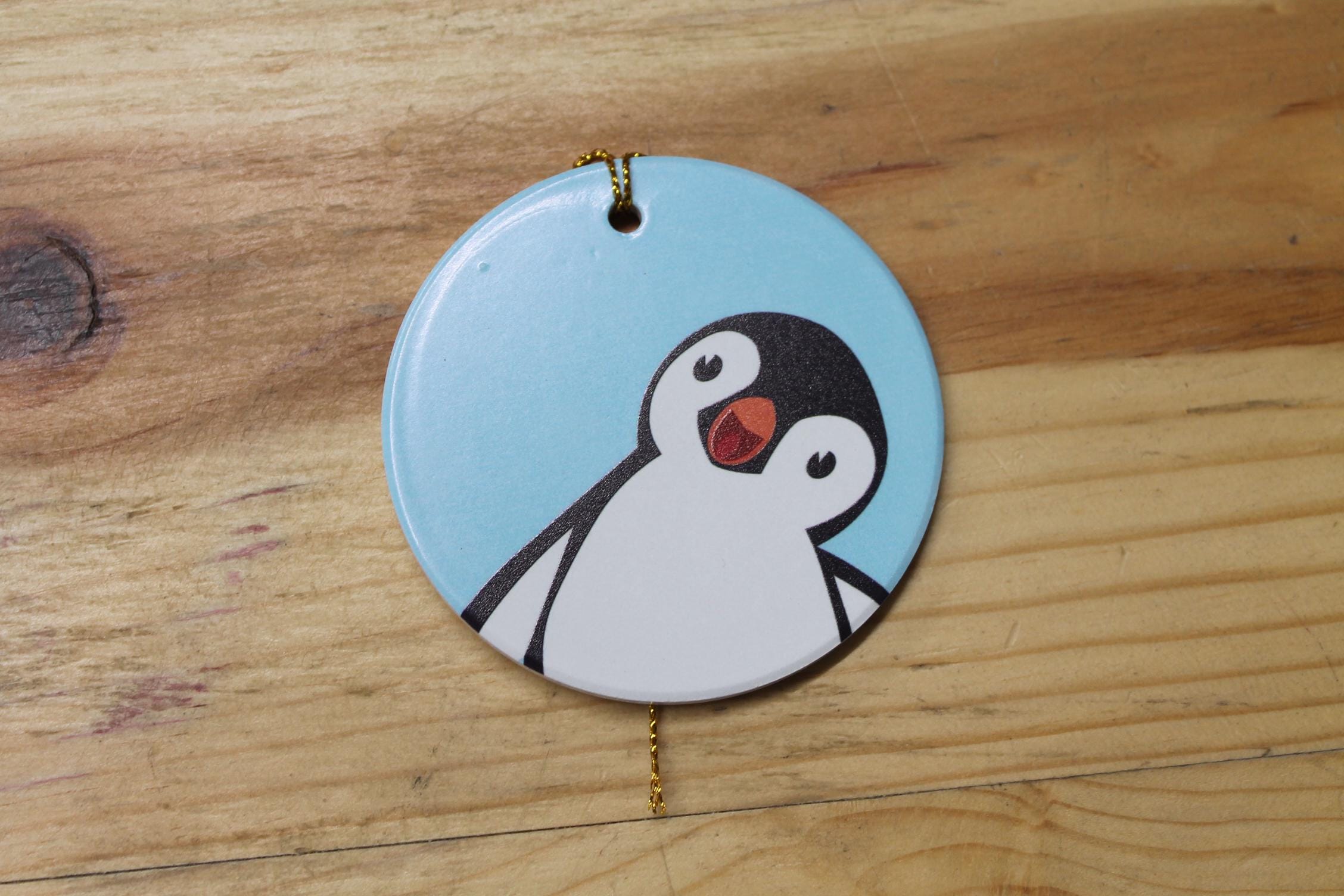 Cute Penguin Ceramic Ornament – Printed Christmas Ornament – Winter Holiday Decor – Kids Penguin Gift – Adorable Printed Tree Ornament
