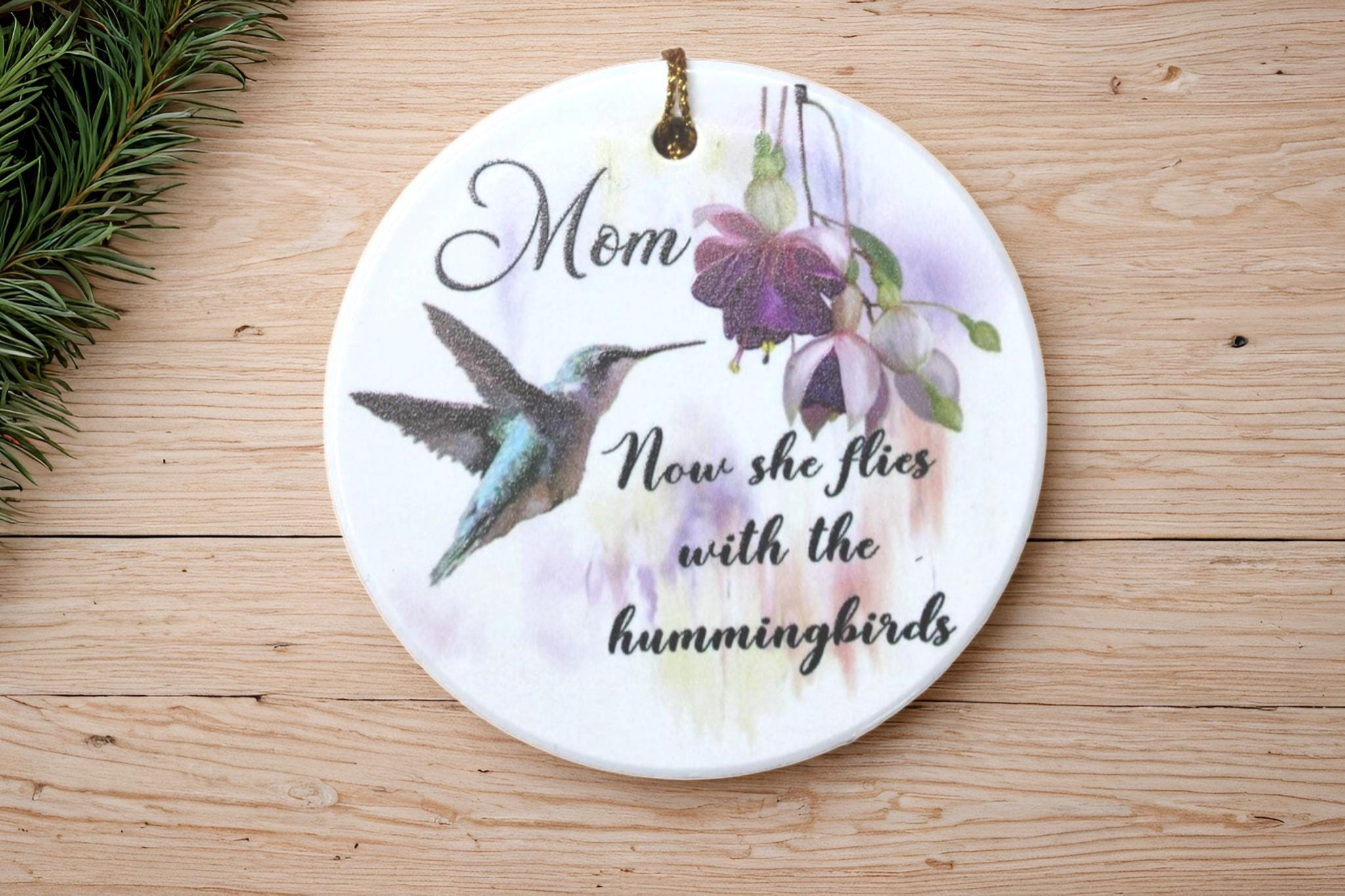 Printed Ceramic Memorial Ornament • Hummingbird Remembrance Gift • “Now She Flies with the Hummingbirds” Keepsake