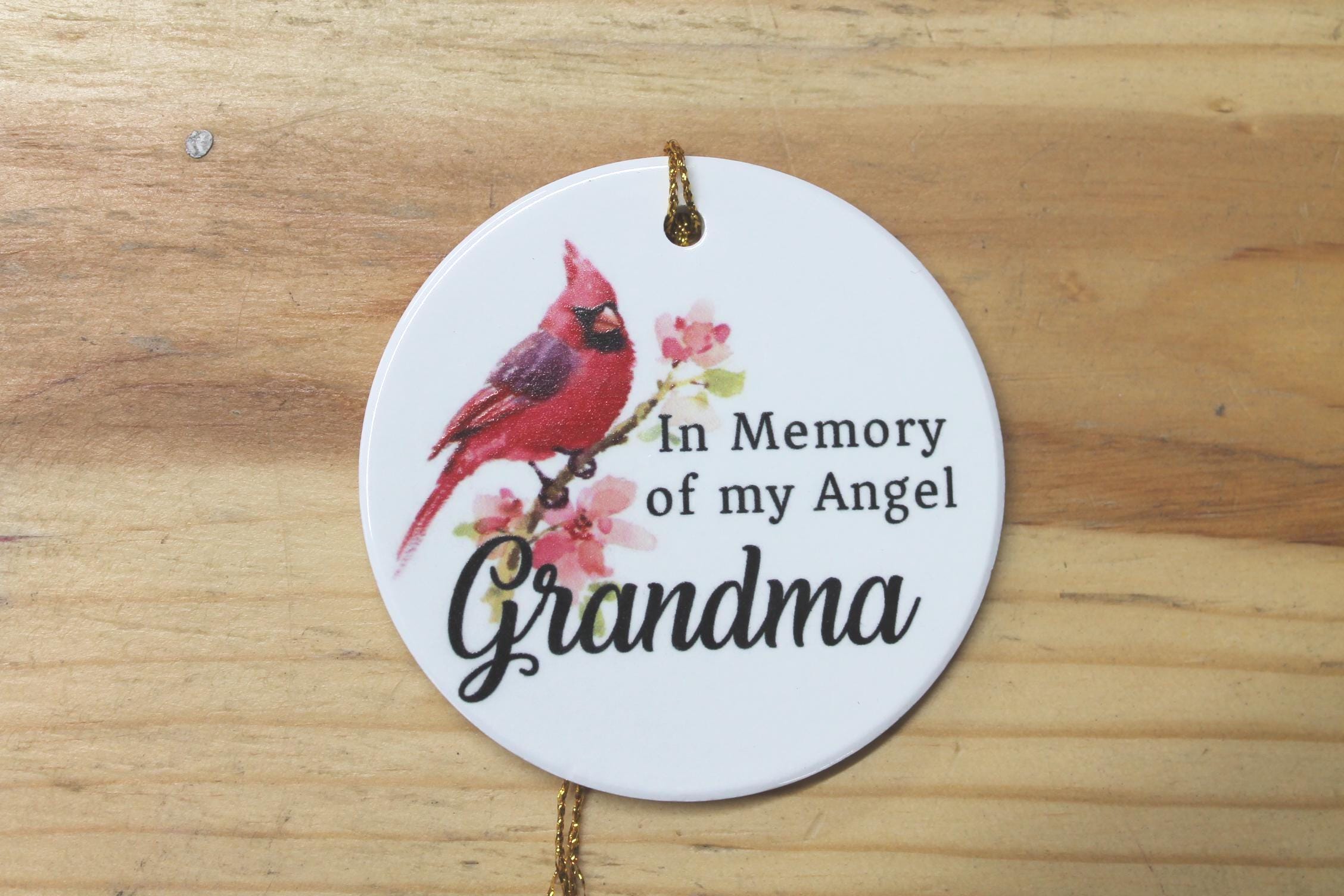 In Memory Of My Angel Grandma Ceramic Cardinal Memorial Ornament Decor Floral Memories Gifts Cute Mother Nana Grammy Hanging Circle Heaven