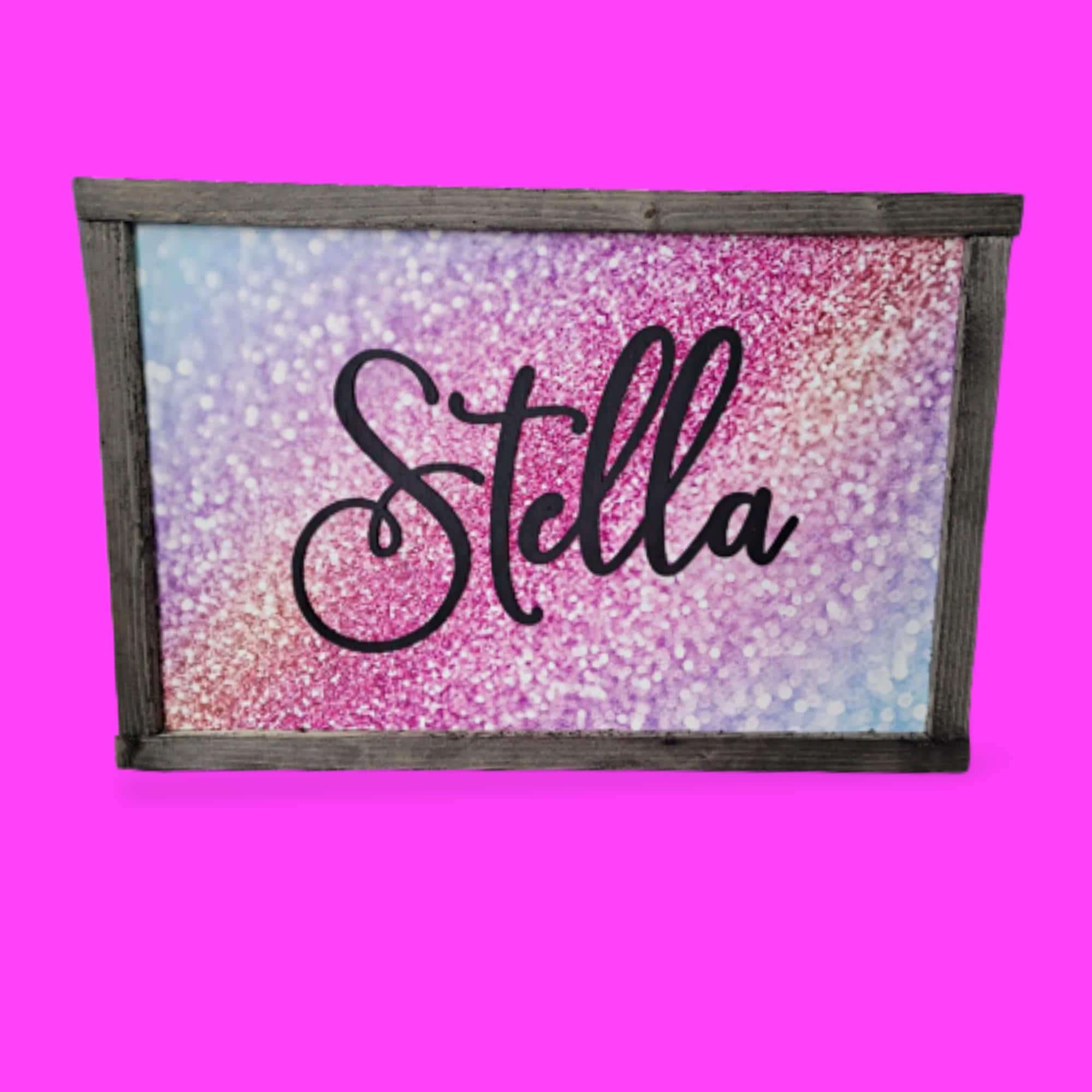 Custom Printed & Raised Name Sign • Glitter Gradient Wood Sign • Personalized Kids Room Decor • Sparkly Framed Name Wall Art