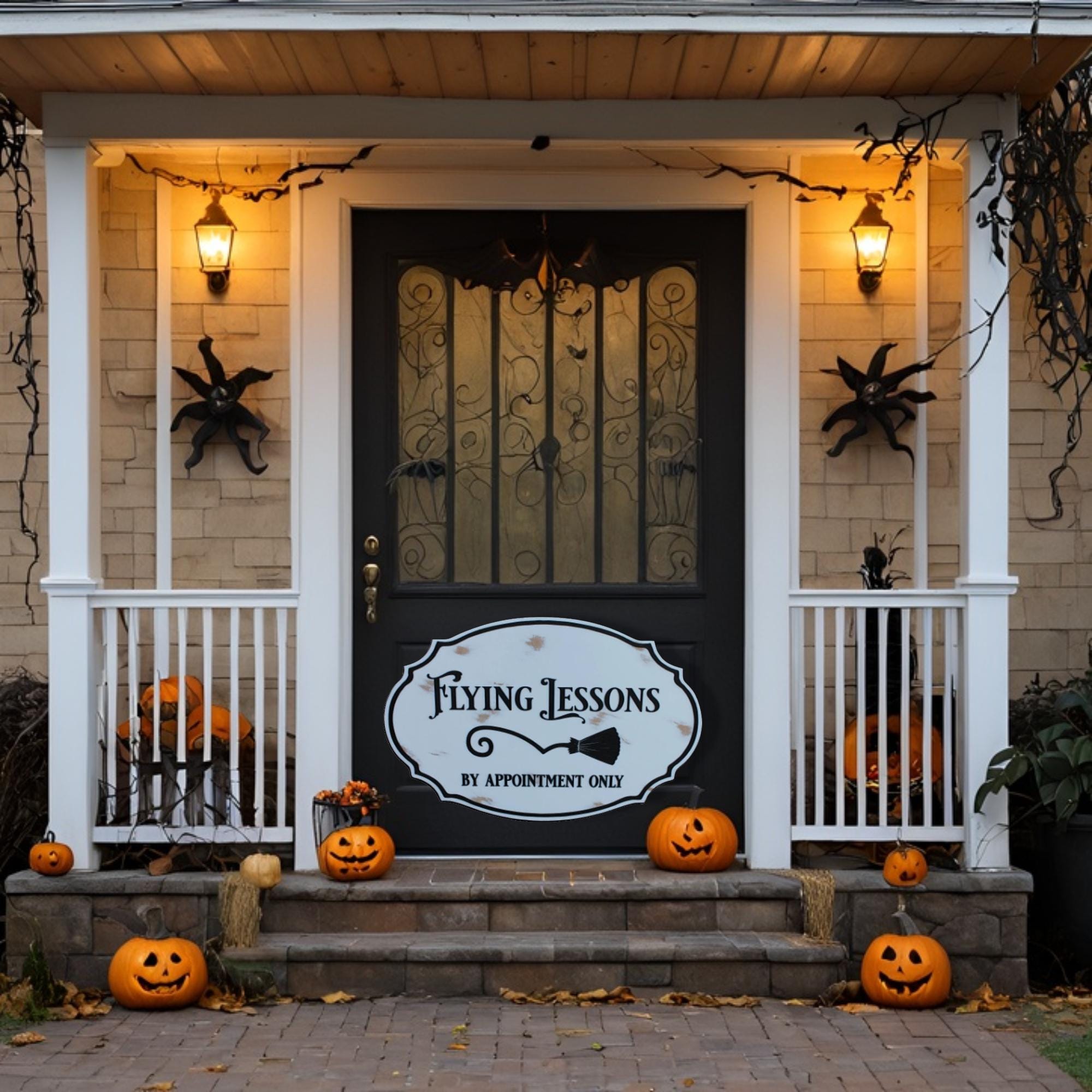 Raised 3D Wood Flying Lessons Sign • Witchy Halloween Decor • Custom Wooden Broomstick Sign • Spooky Vintage Wall Accent
