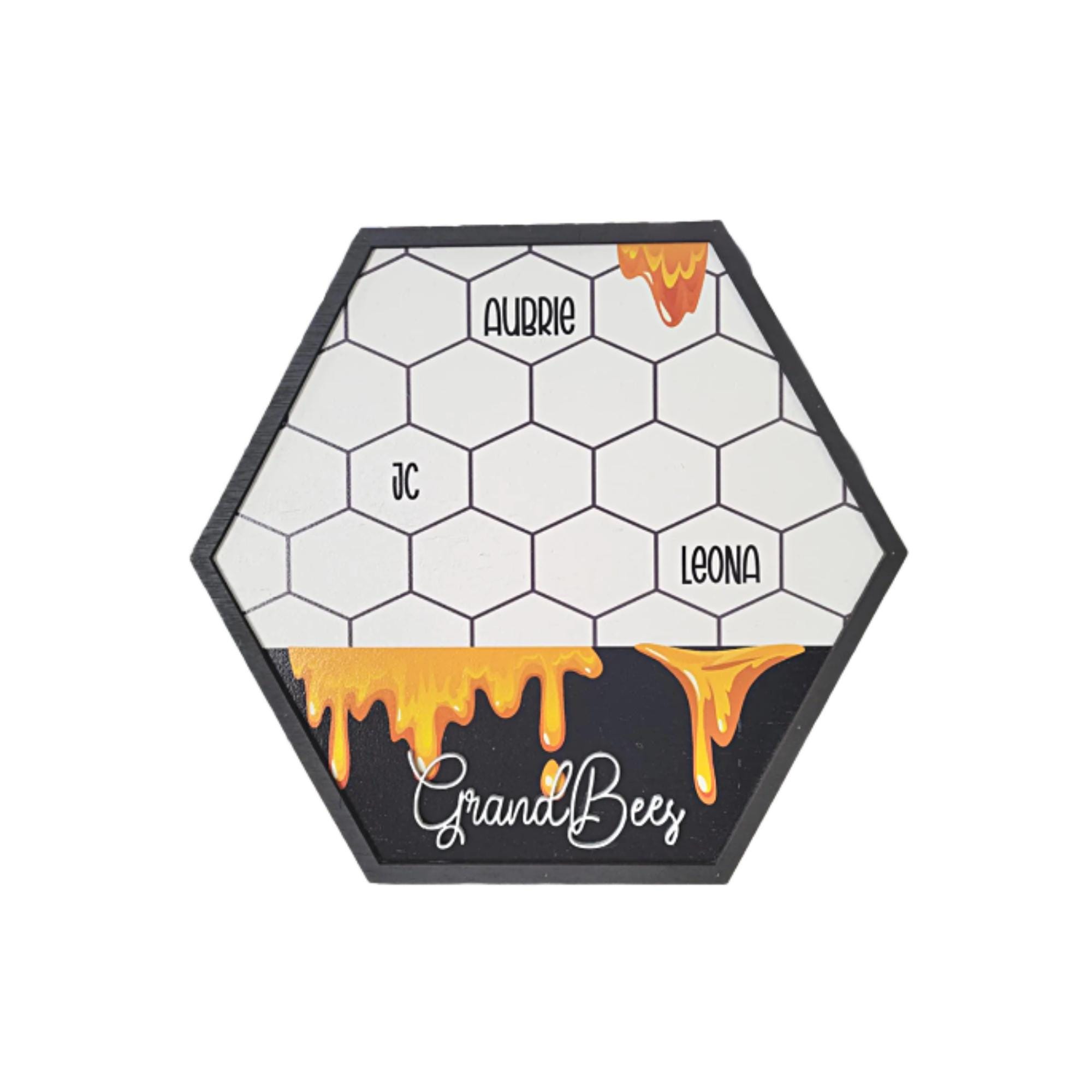 Custom Honeycomb Family Sign • Personalized “Grand Bees” Wood Wall Art • Raised and Printed Bee‑Themed Hexagon Decor