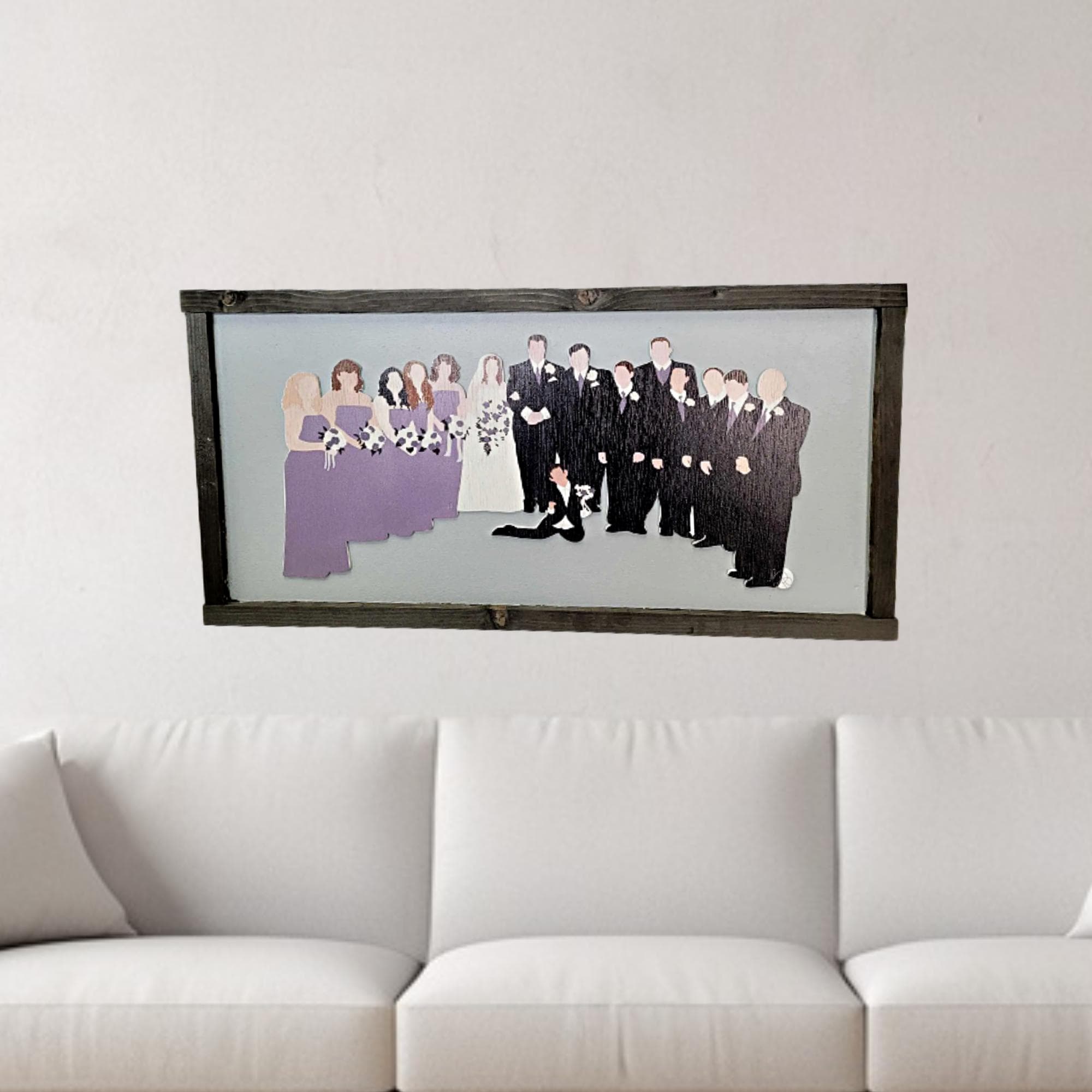 Custom Wedding Cartoon Portrait • Personalized Bride & Groom Party Sign • Faceless Wedding Party Wood Wall Art