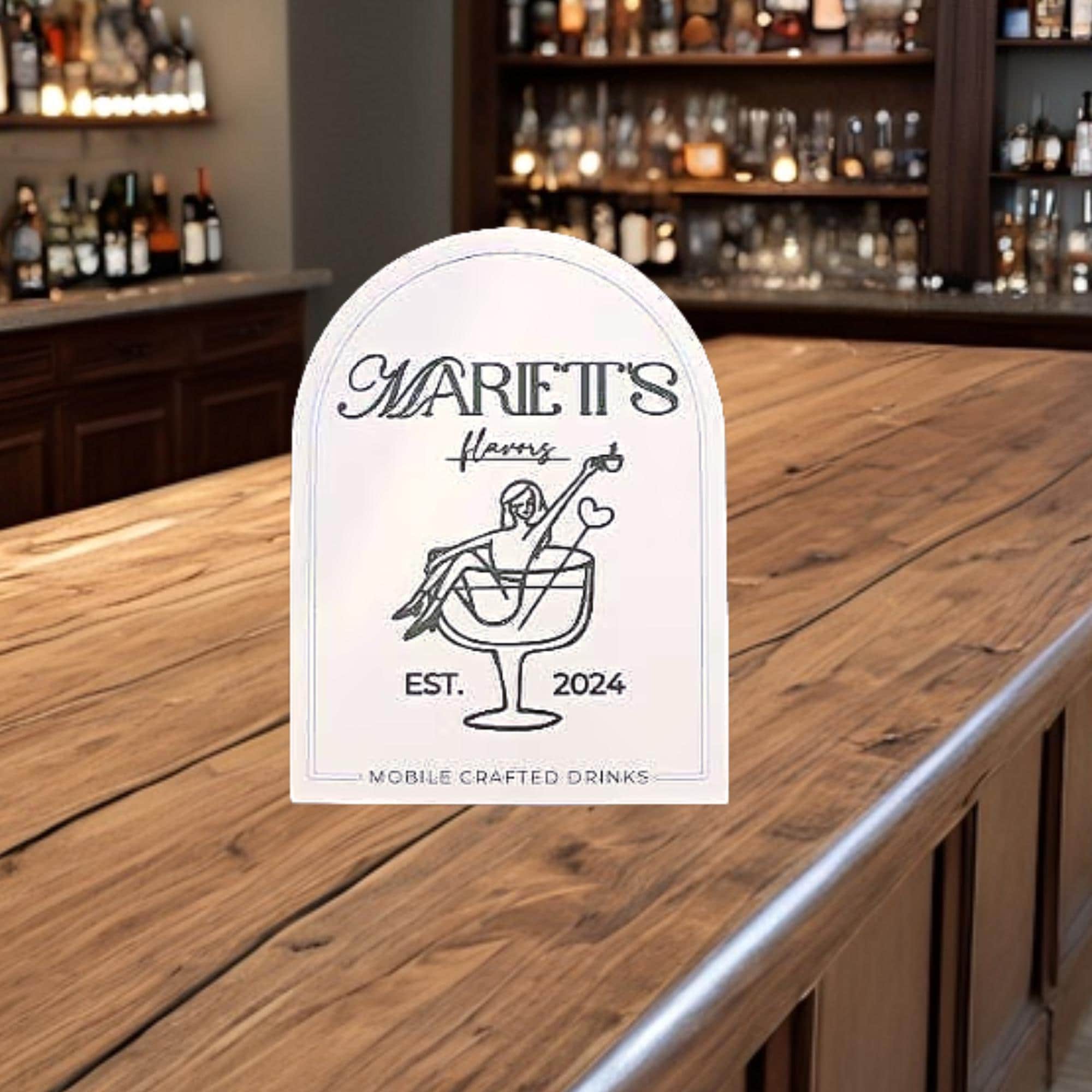 3D Wood Custom Logo Sign • Raised Layered Mobile Bar Branding • Modern Arch Business Sign for Events & Drink Services