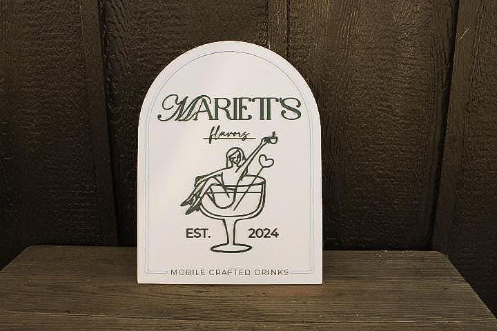 The sign shown is an example of one we created for a mobile bar business.