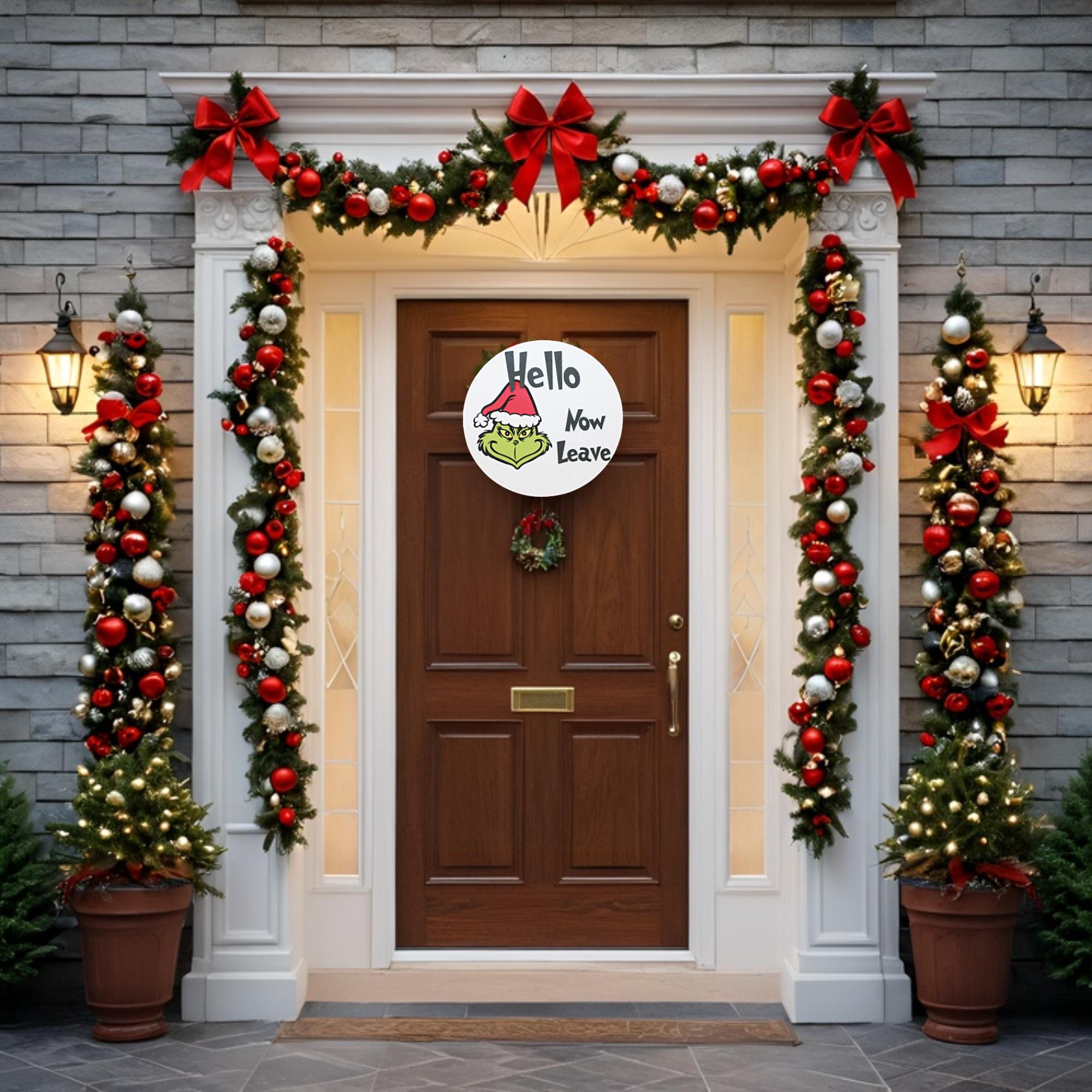 Hello Now Leave Sign • Printed & Raised 3D Wood Christmas Sign • Funny Holiday Door Sign • Snarky Christmas Decor
