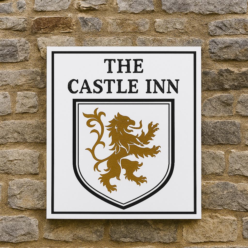 Castle Inn Lion Pub Sign: Rustic Medieval Tavern Decor