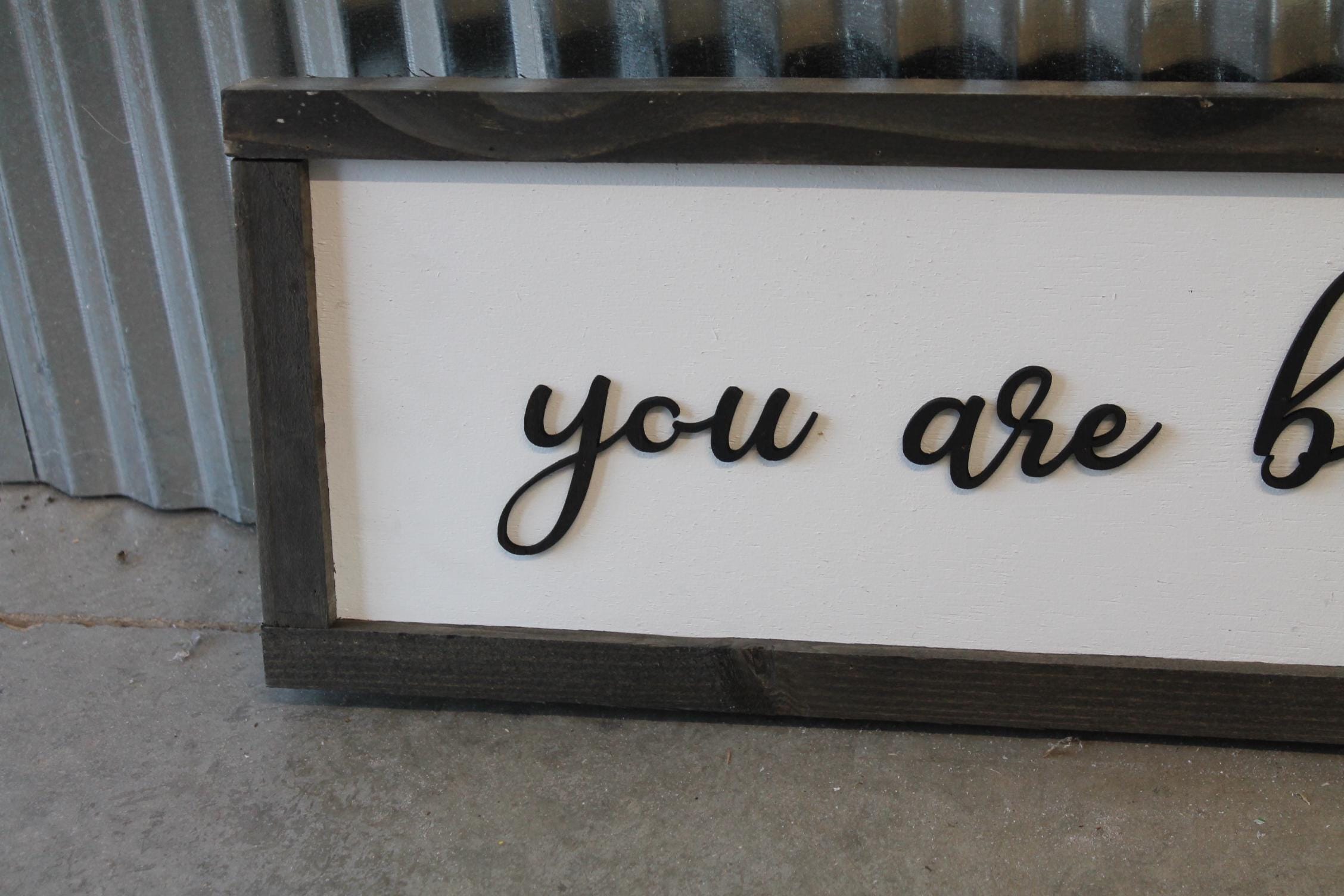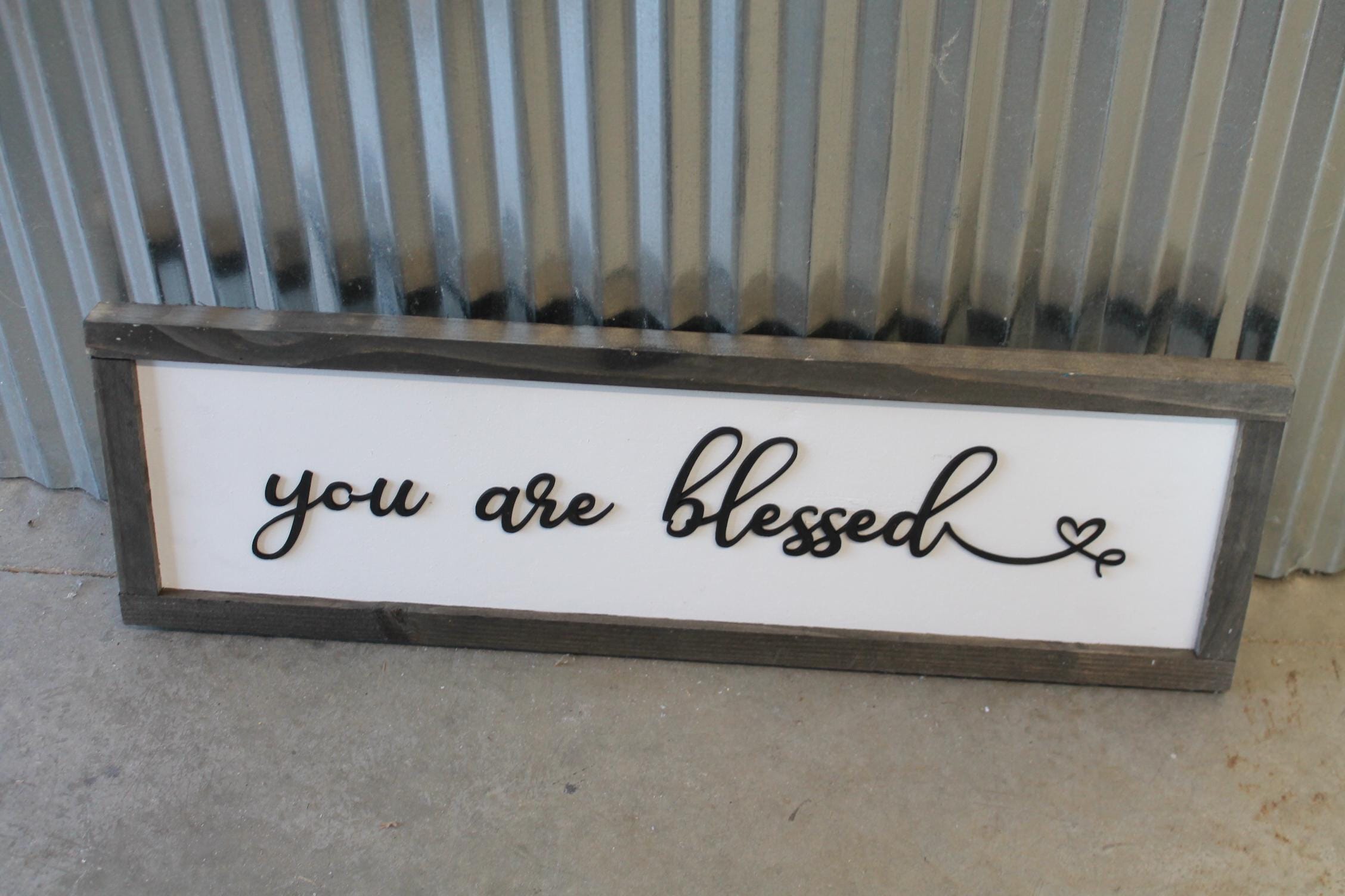 The item we are offering is a wonderful handmade, decorative sign. The size is in inches, and it is the overall size of the size, frame included. It is mounted on white 3/8 inch plywood with 1/4 inch laser cut plywood letters. Complete with solid wood frame. The frame is stained in an ebony coloring.