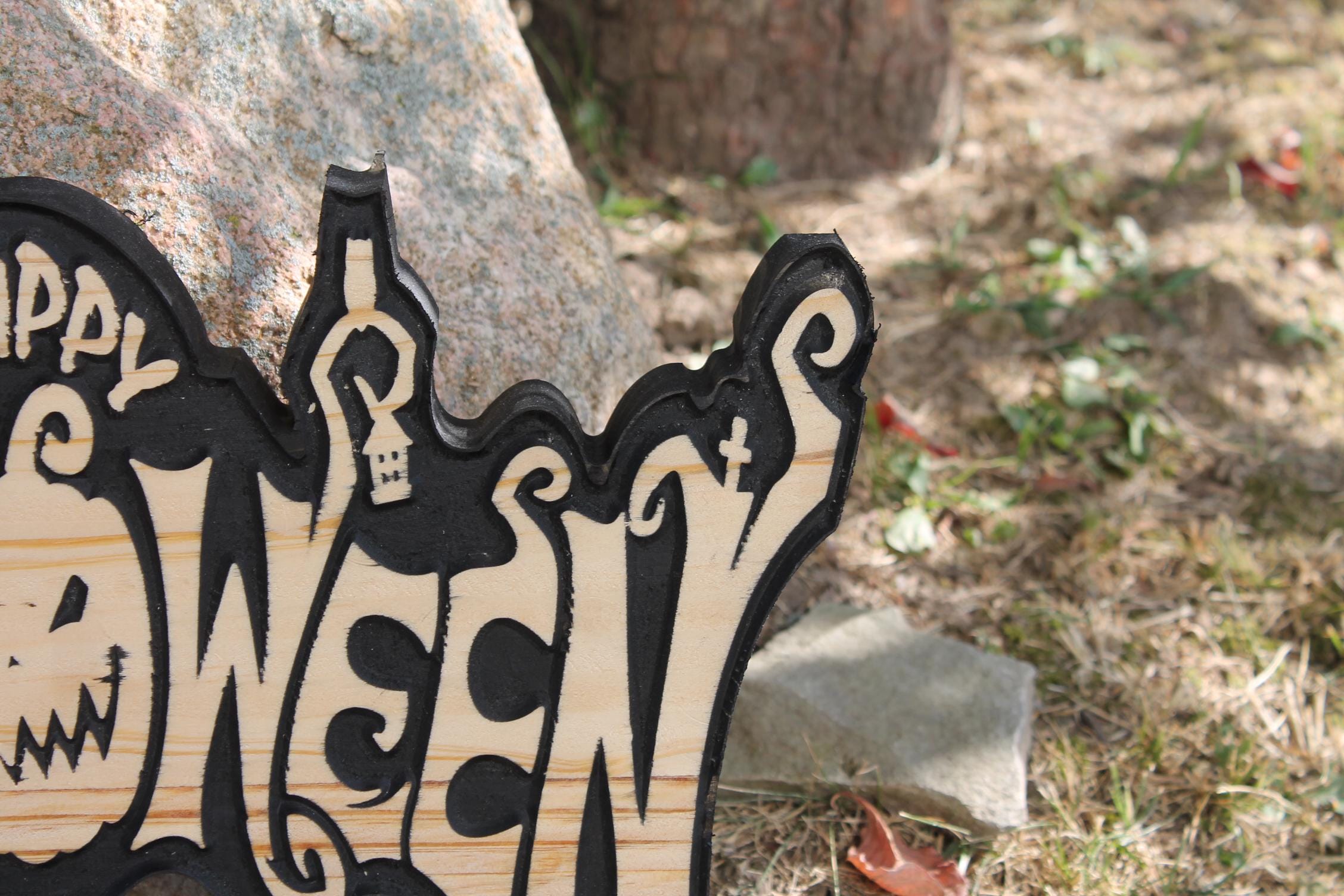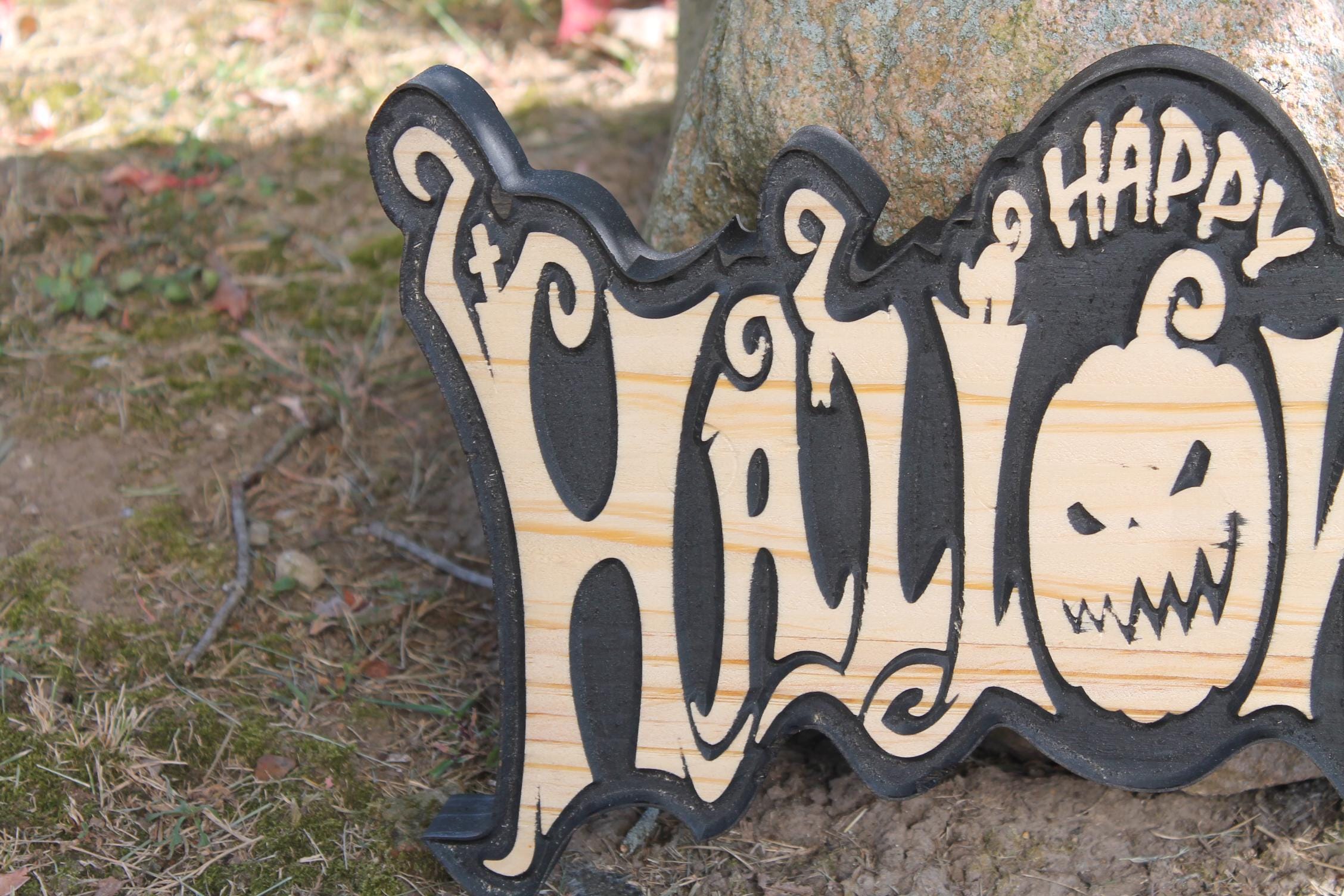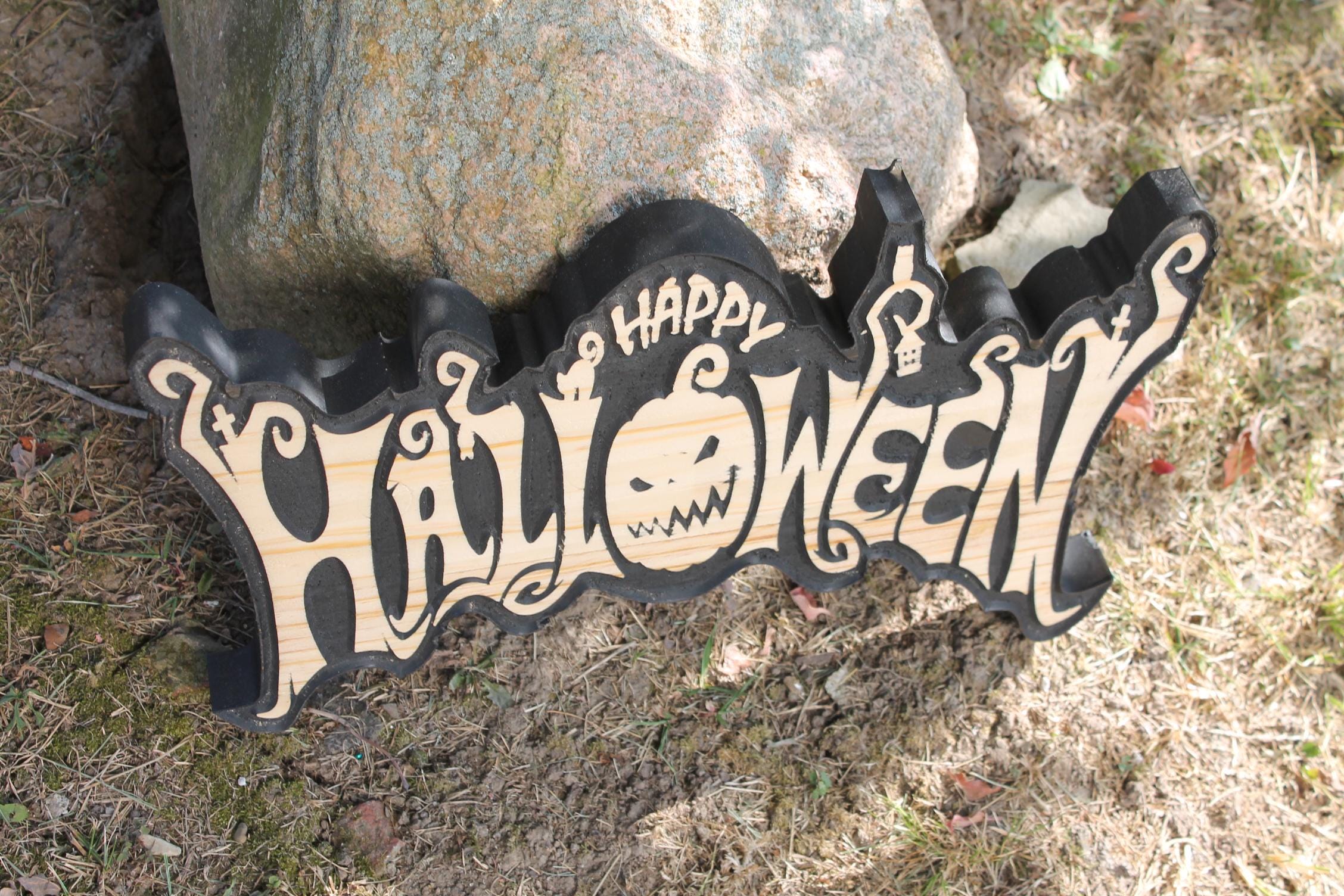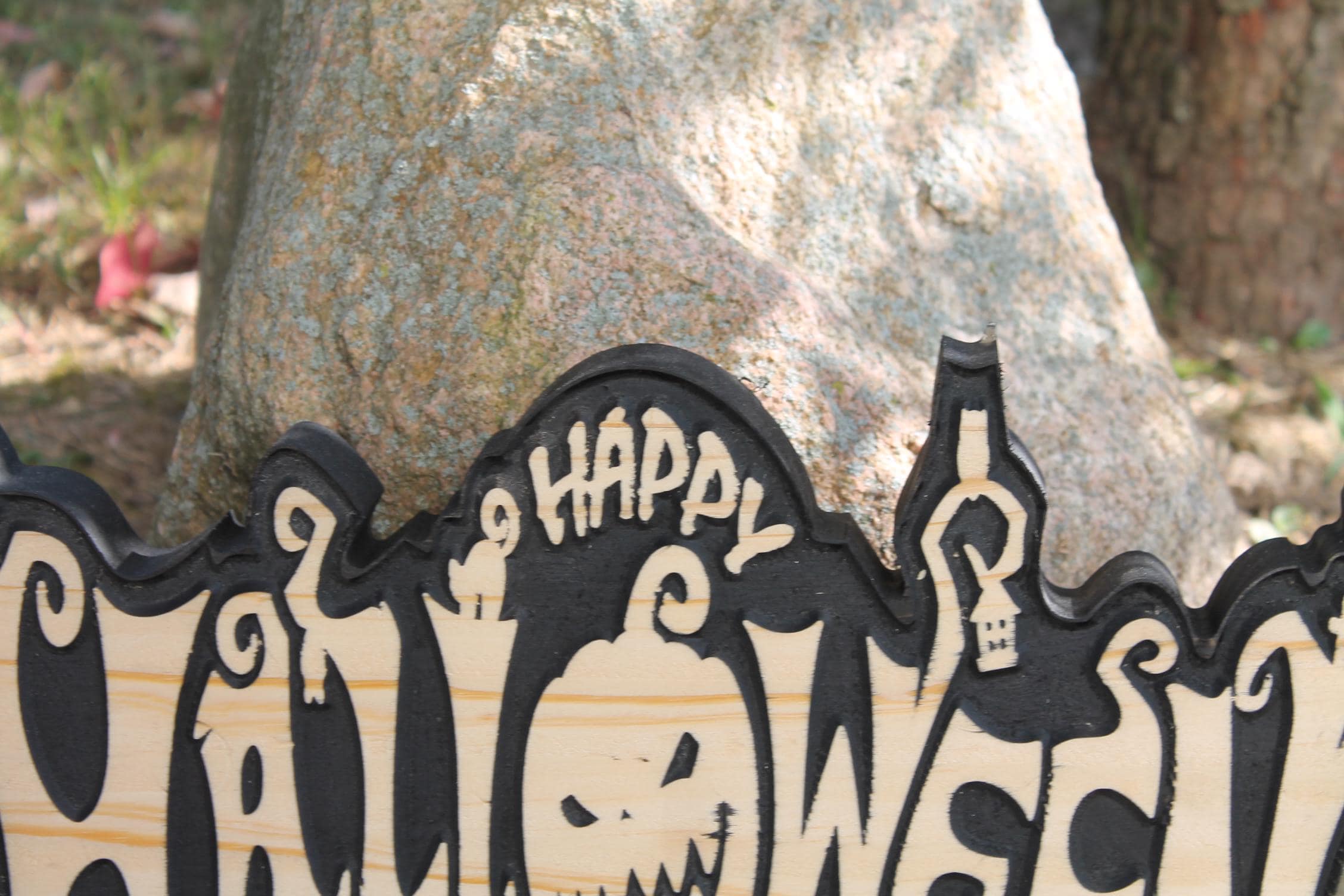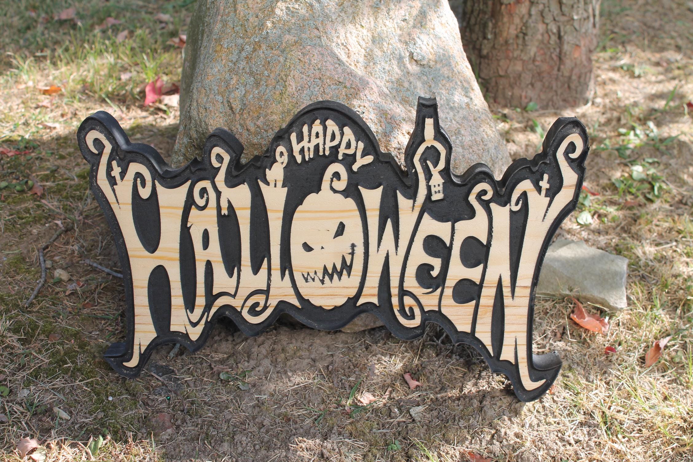Halloween Wooden Sign: Jack O Lantern, Black Cat, Spooky Decor, Engraved, Happy Halloween, Natural Wood, Pine, Decor, Pumpkin