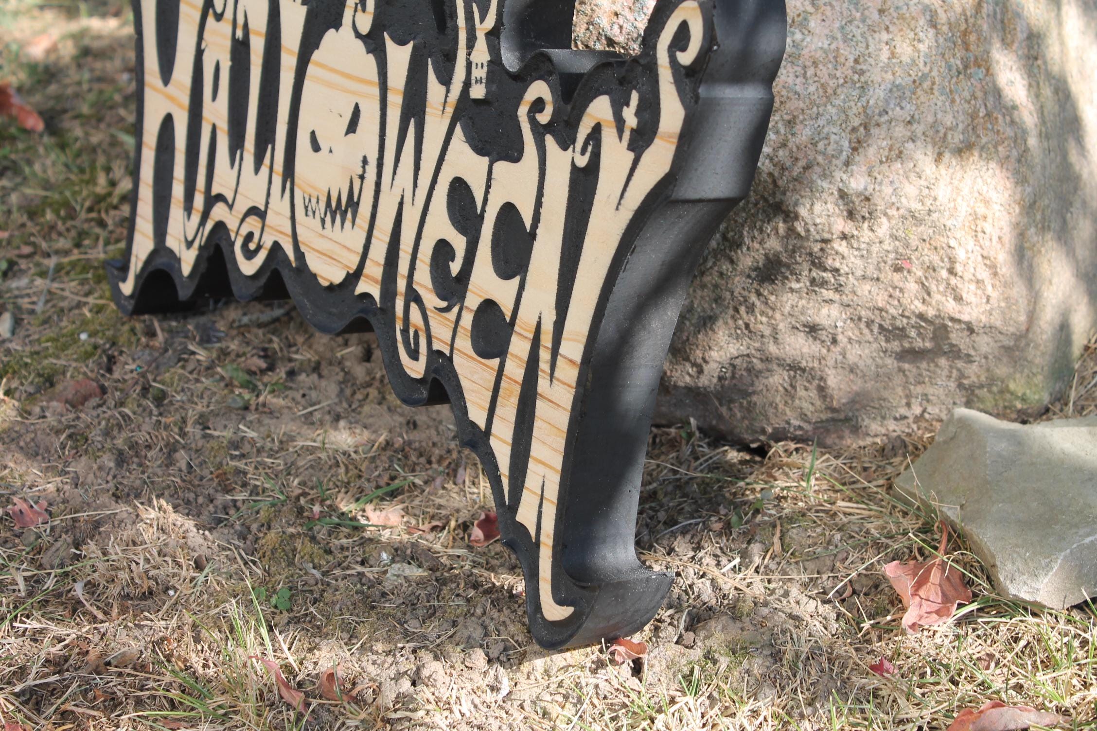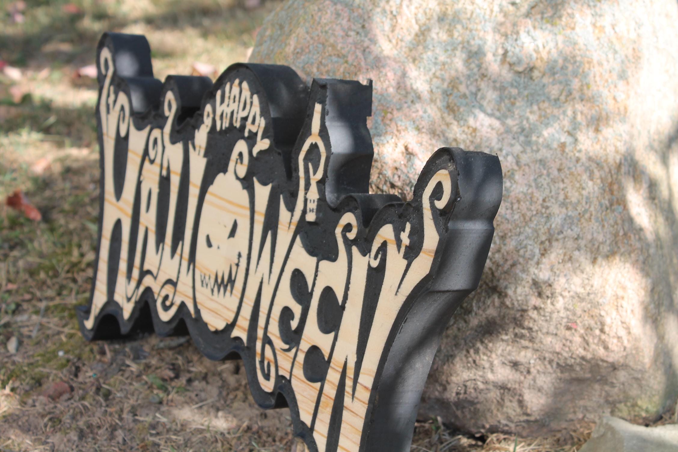 Halloween Jack O Lantern Spooky Forest Black Cat Prop Wooden Decor Fall Autumn Decoration Sign Orange And Black Haunted Grave Yard Theme