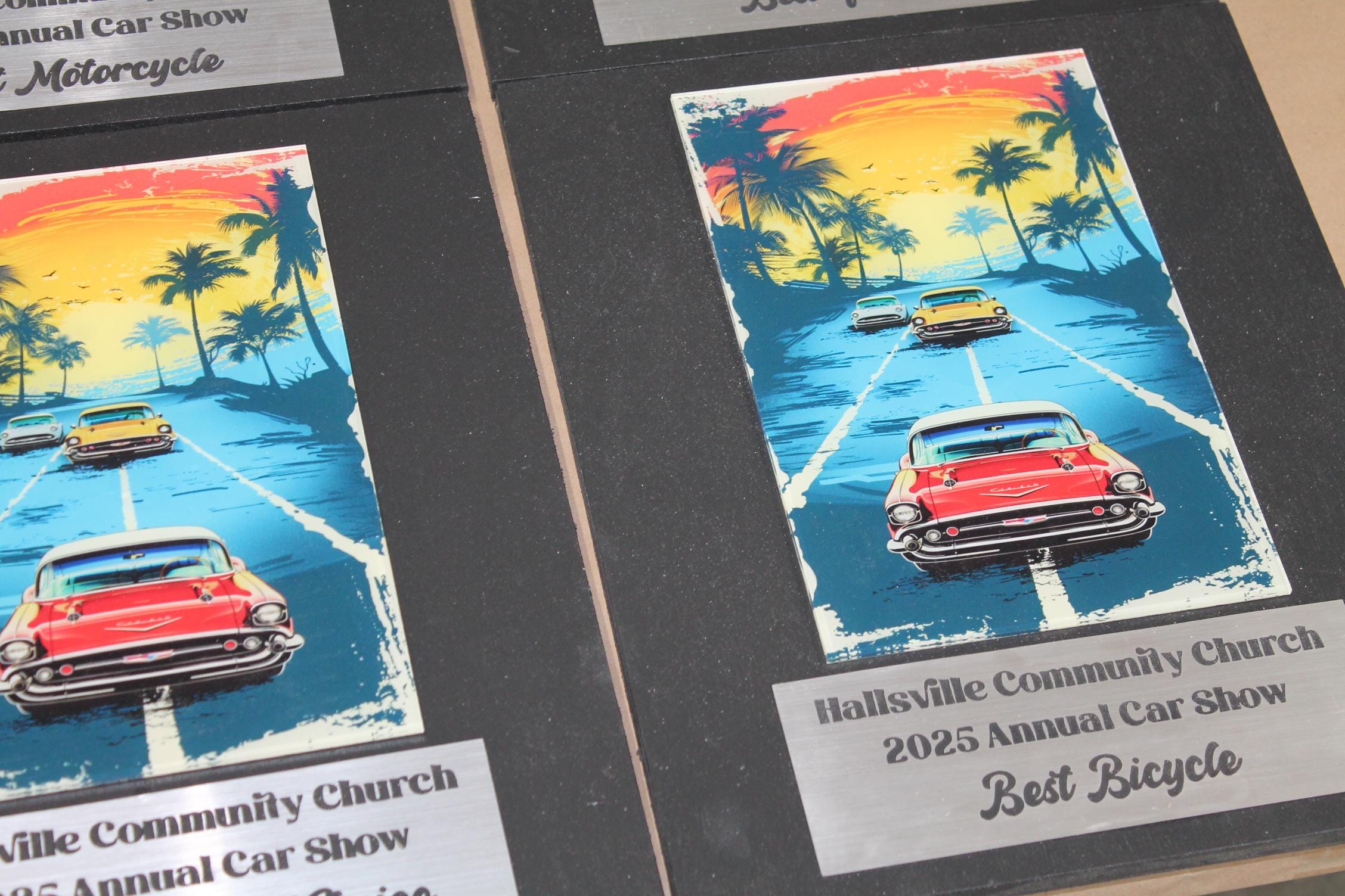 We have an adorable wood and acrylic printed plaque! The image is printed directly onto the acrylic with our UV printer! These are handmade in our shop in Tarlton, Ohio and we offer Free Shipping to the US.