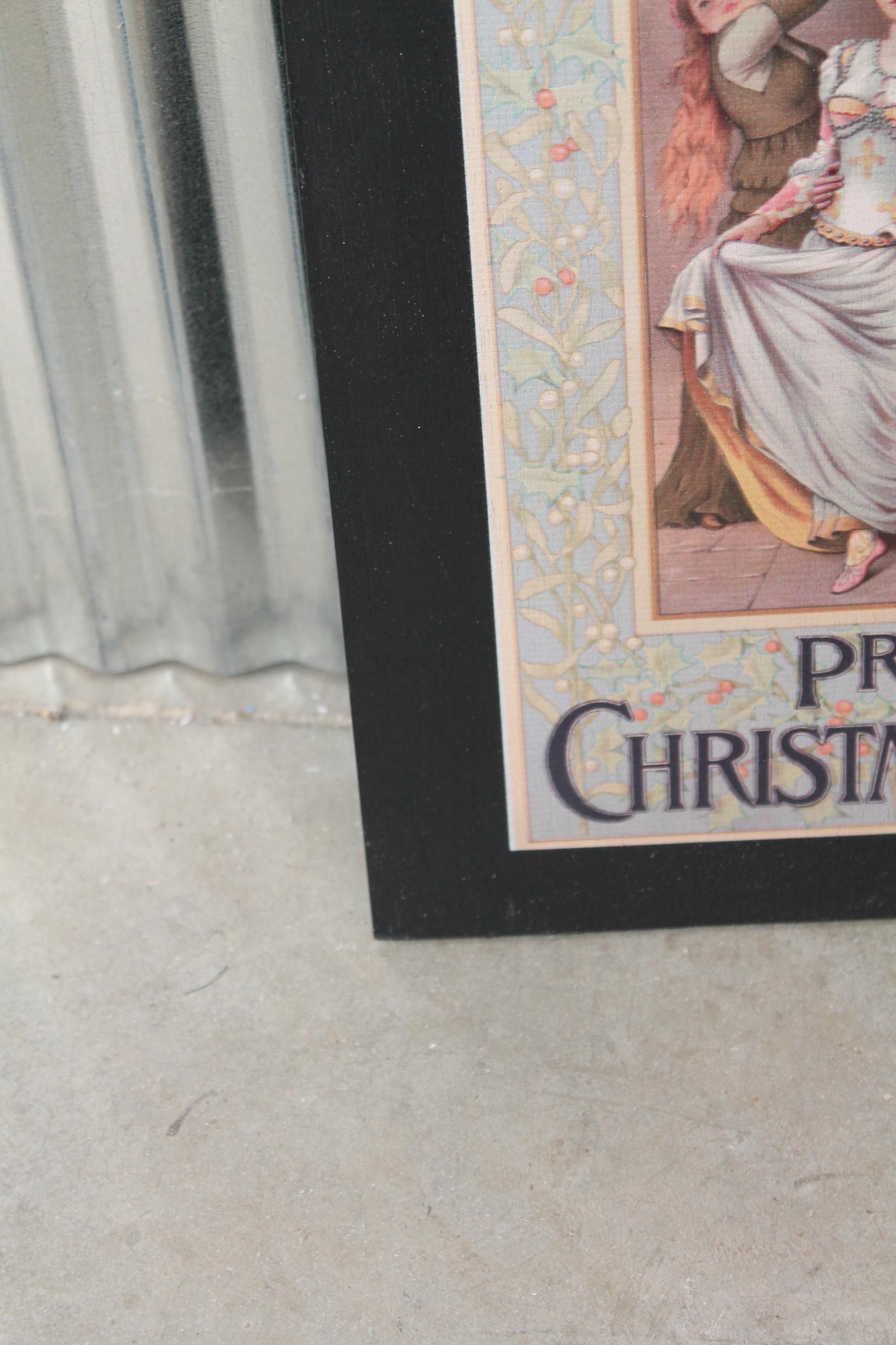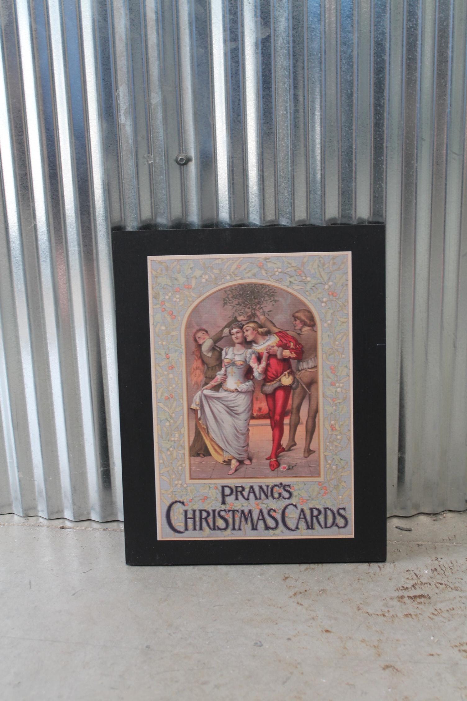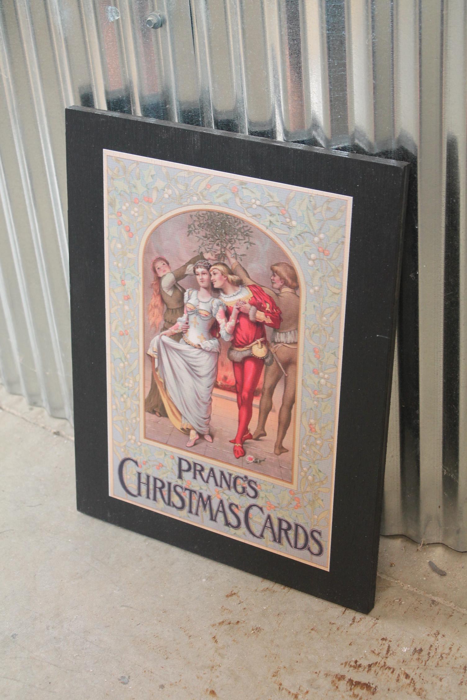 Prang's Christmas Card Printed Decorative Wood Sign Louis Prang Antique Holiday Wall Art Decor Mantle Vignette Theme Faux Frame