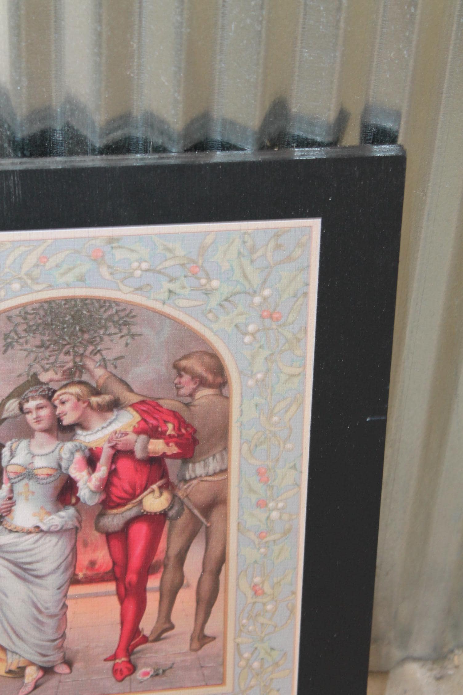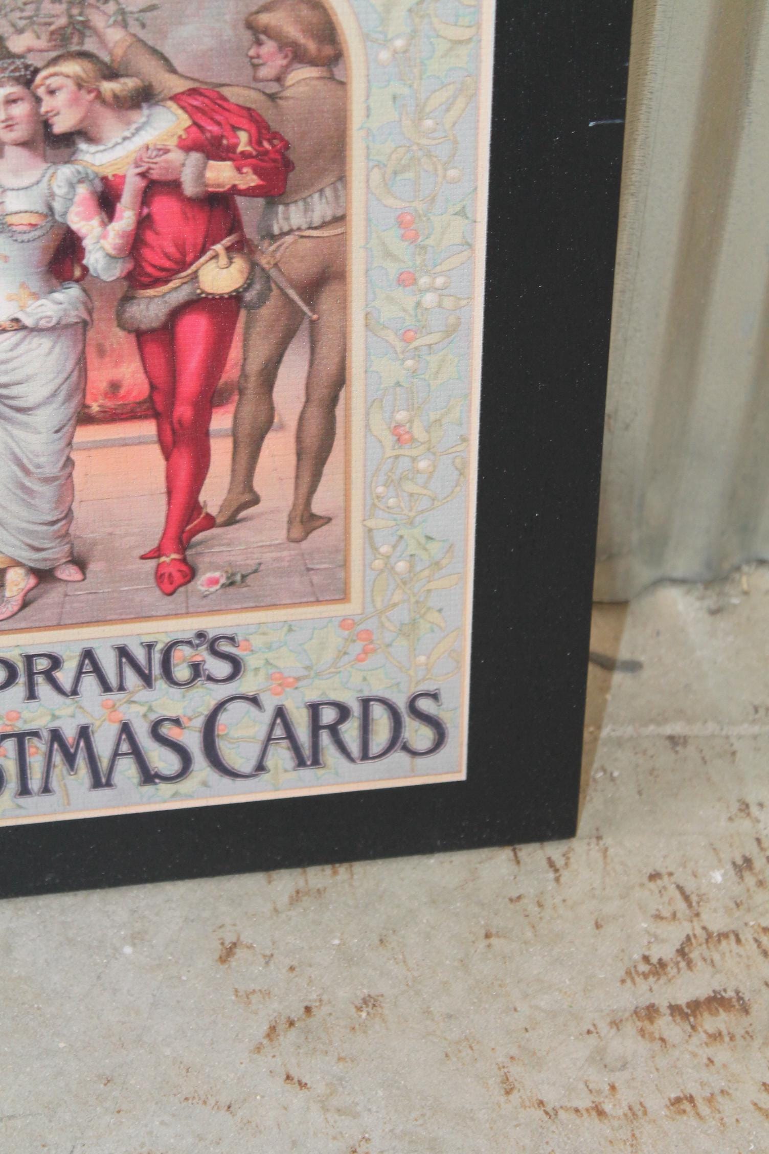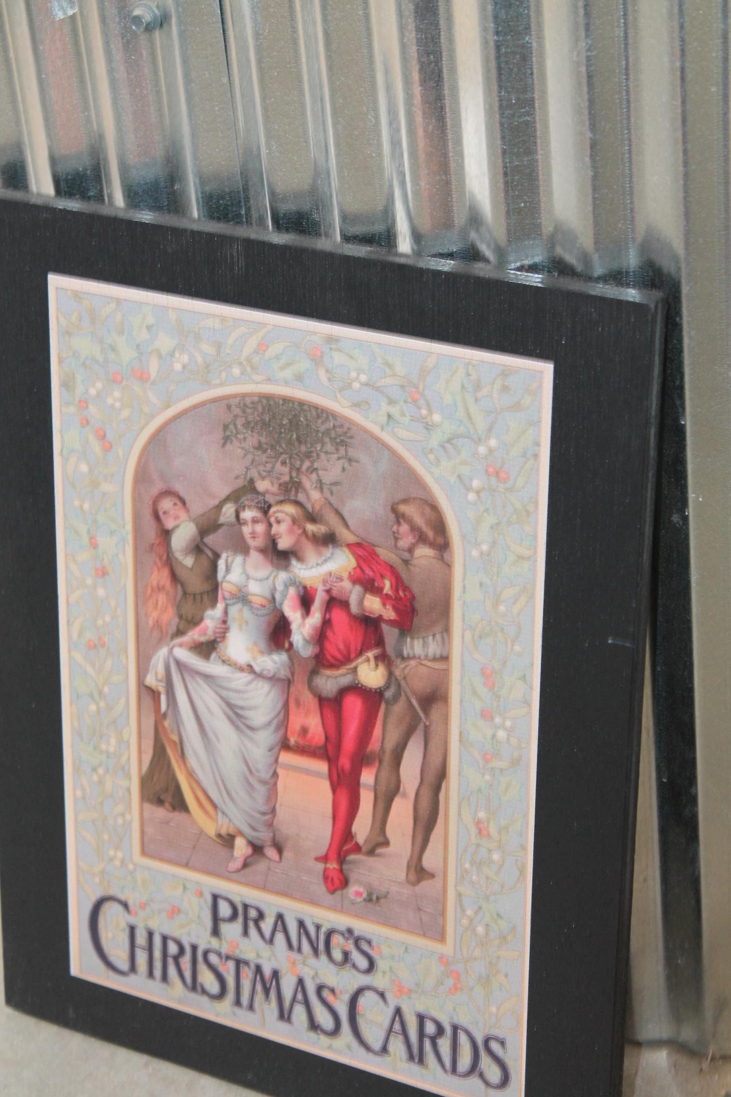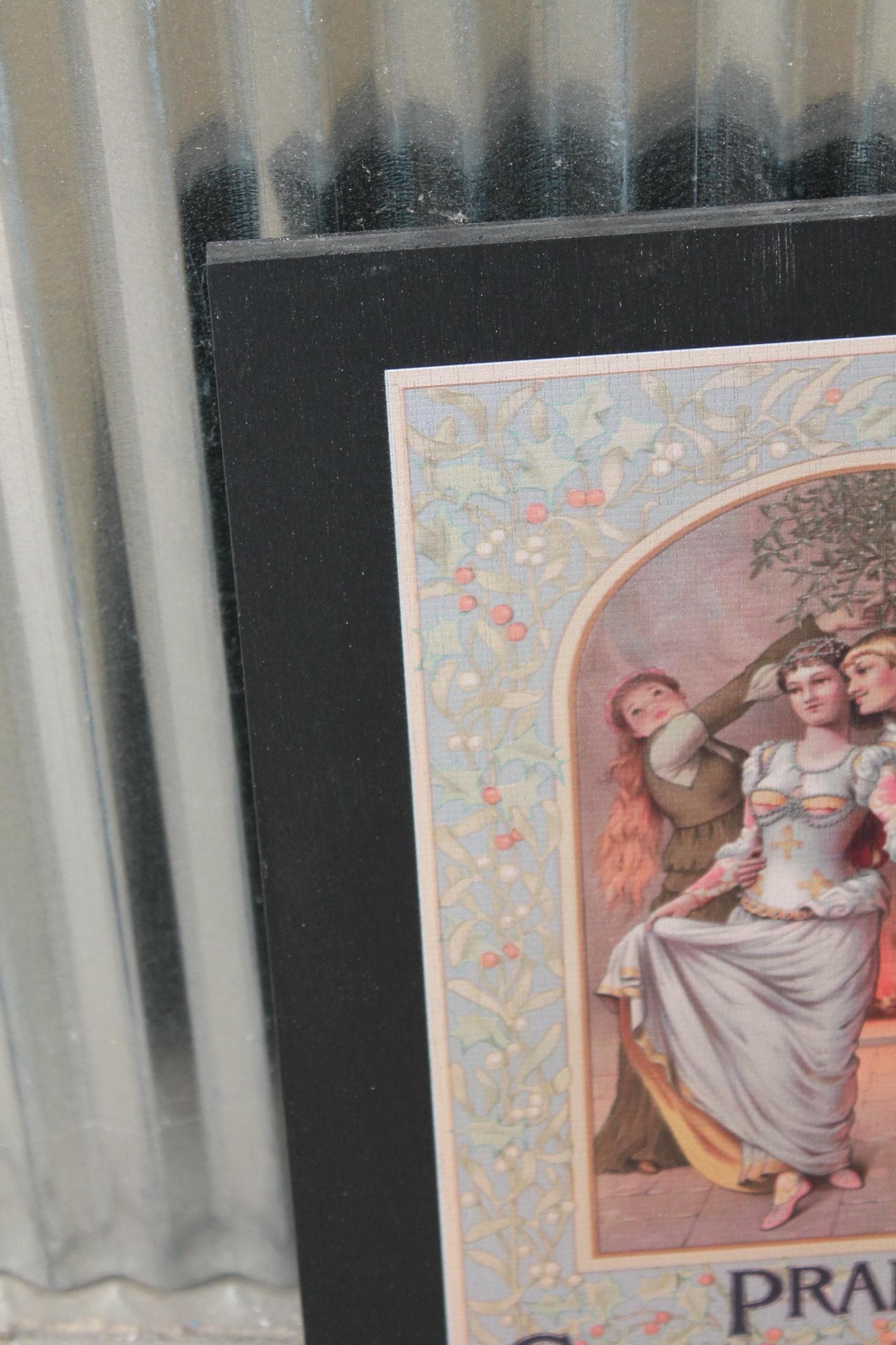 Prang's Christmas Card Printed Decorative Wood Sign Louis Prang Antique Holiday Wall Art Decor Mantle Vignette Theme Faux Frame