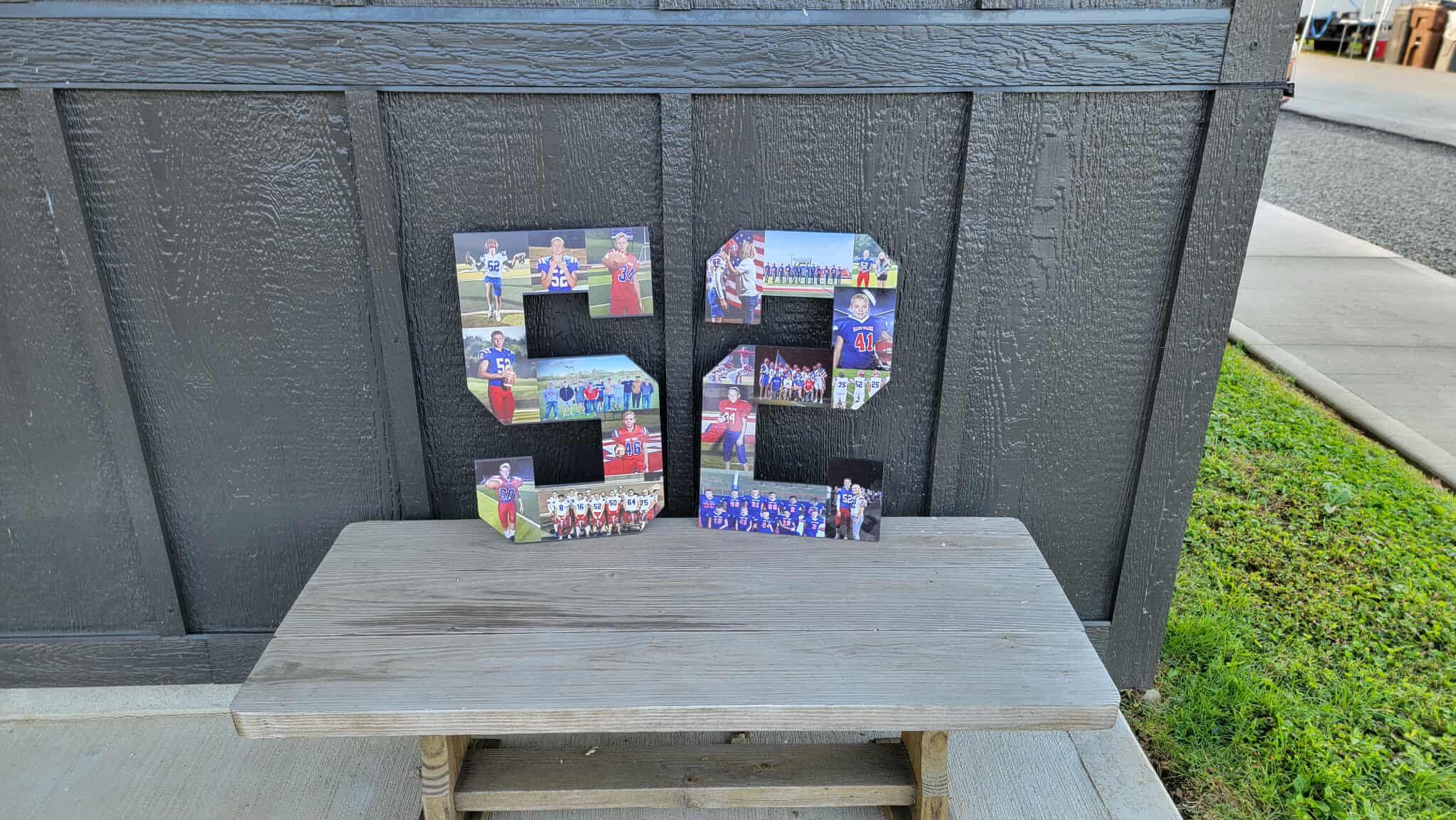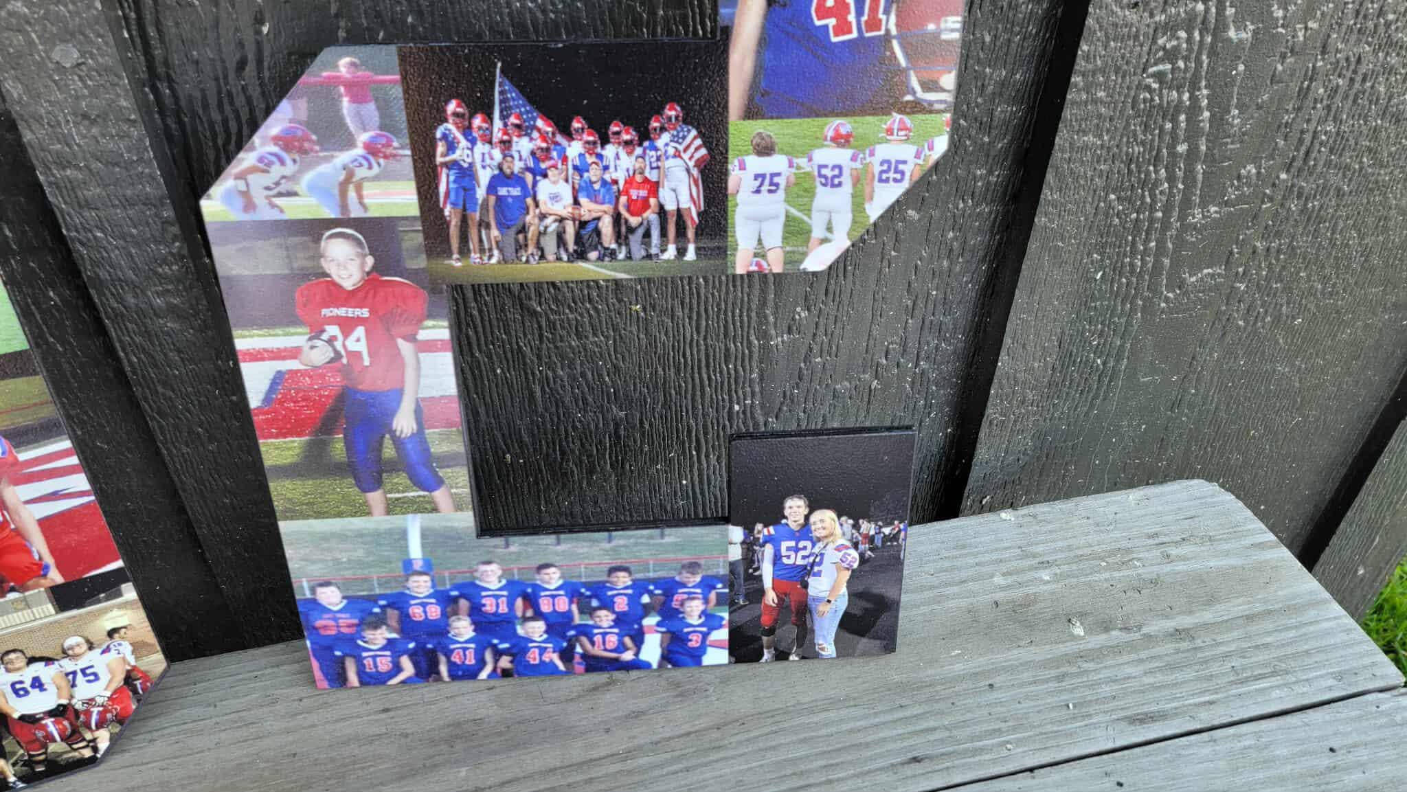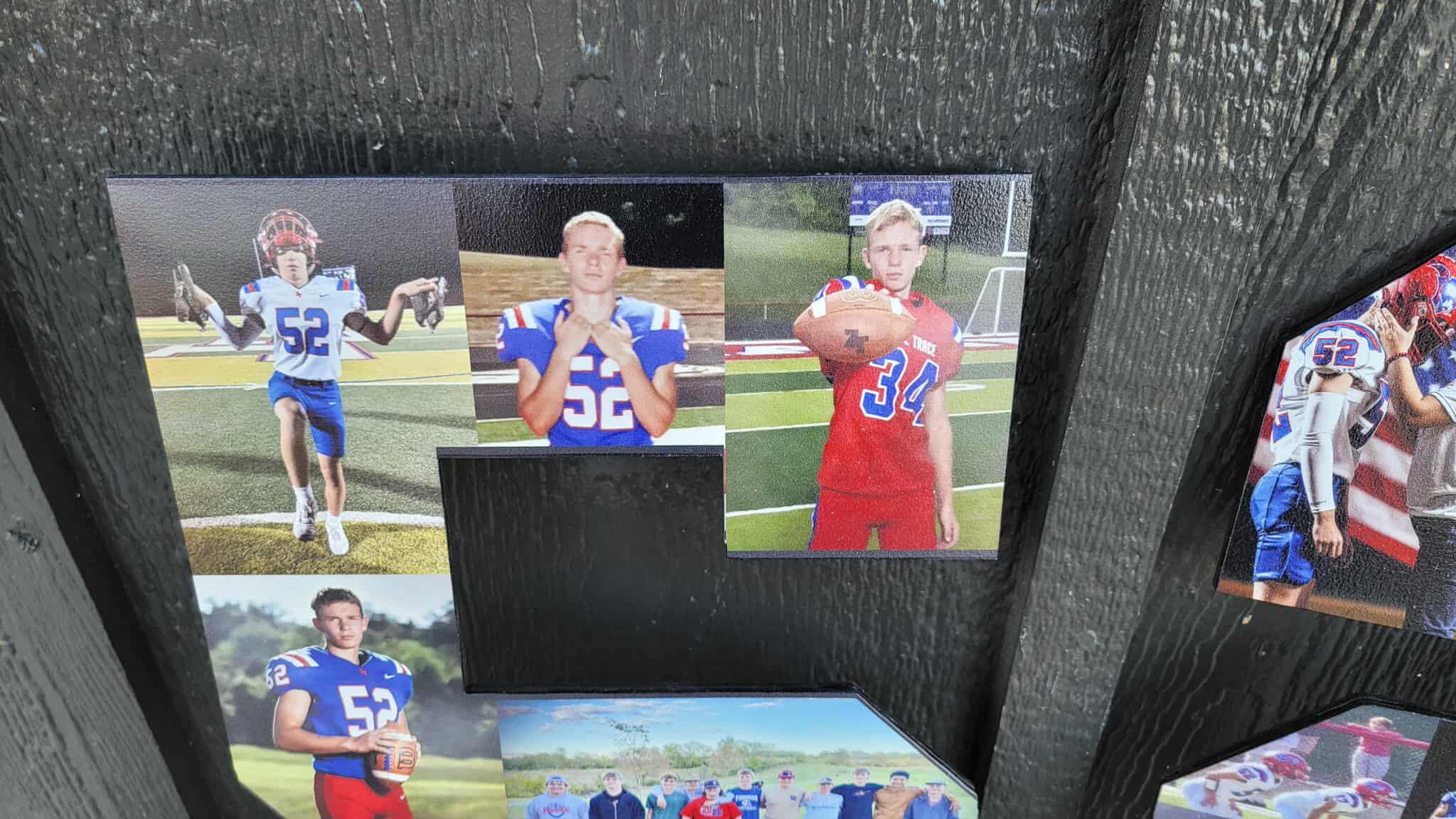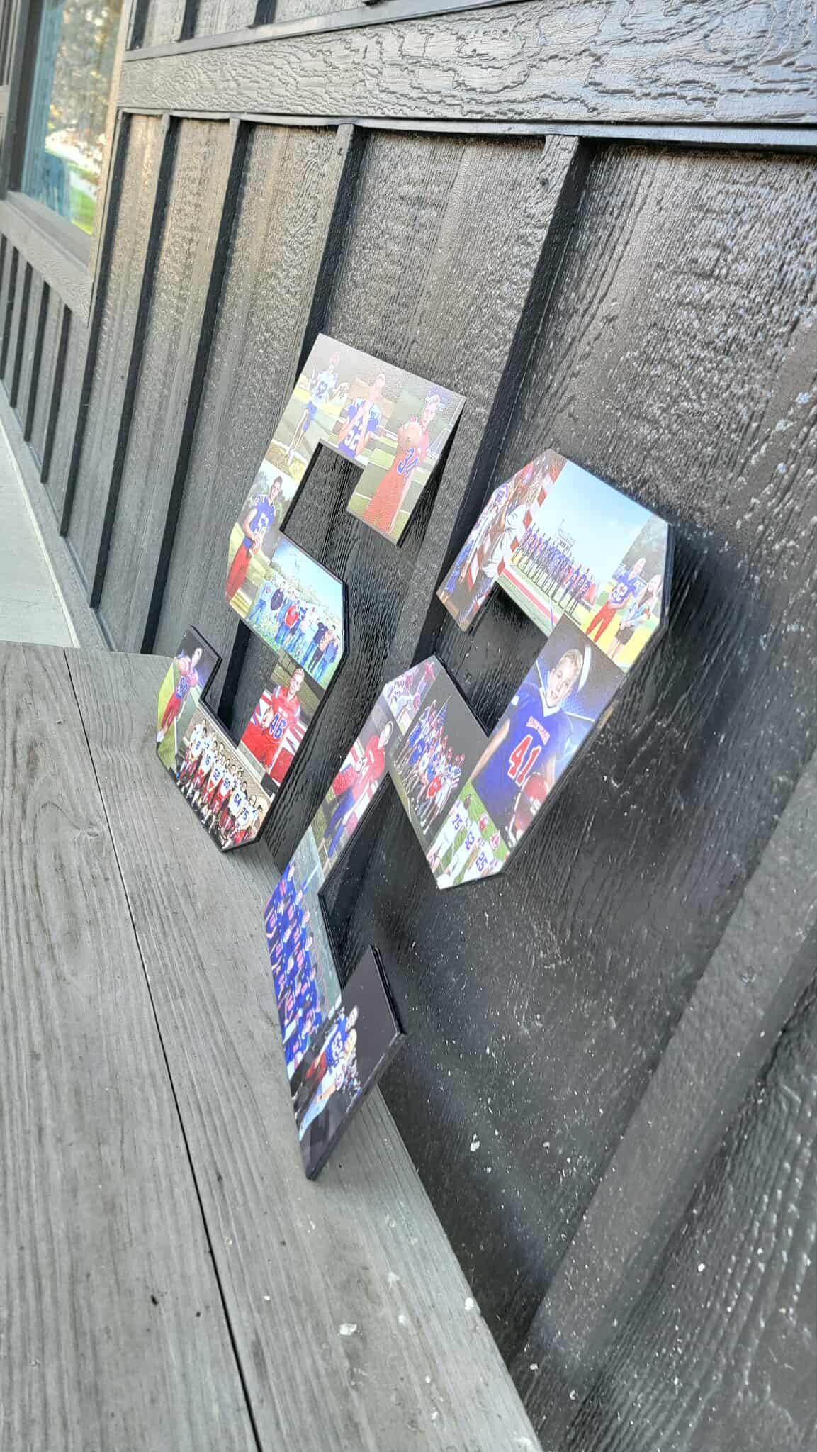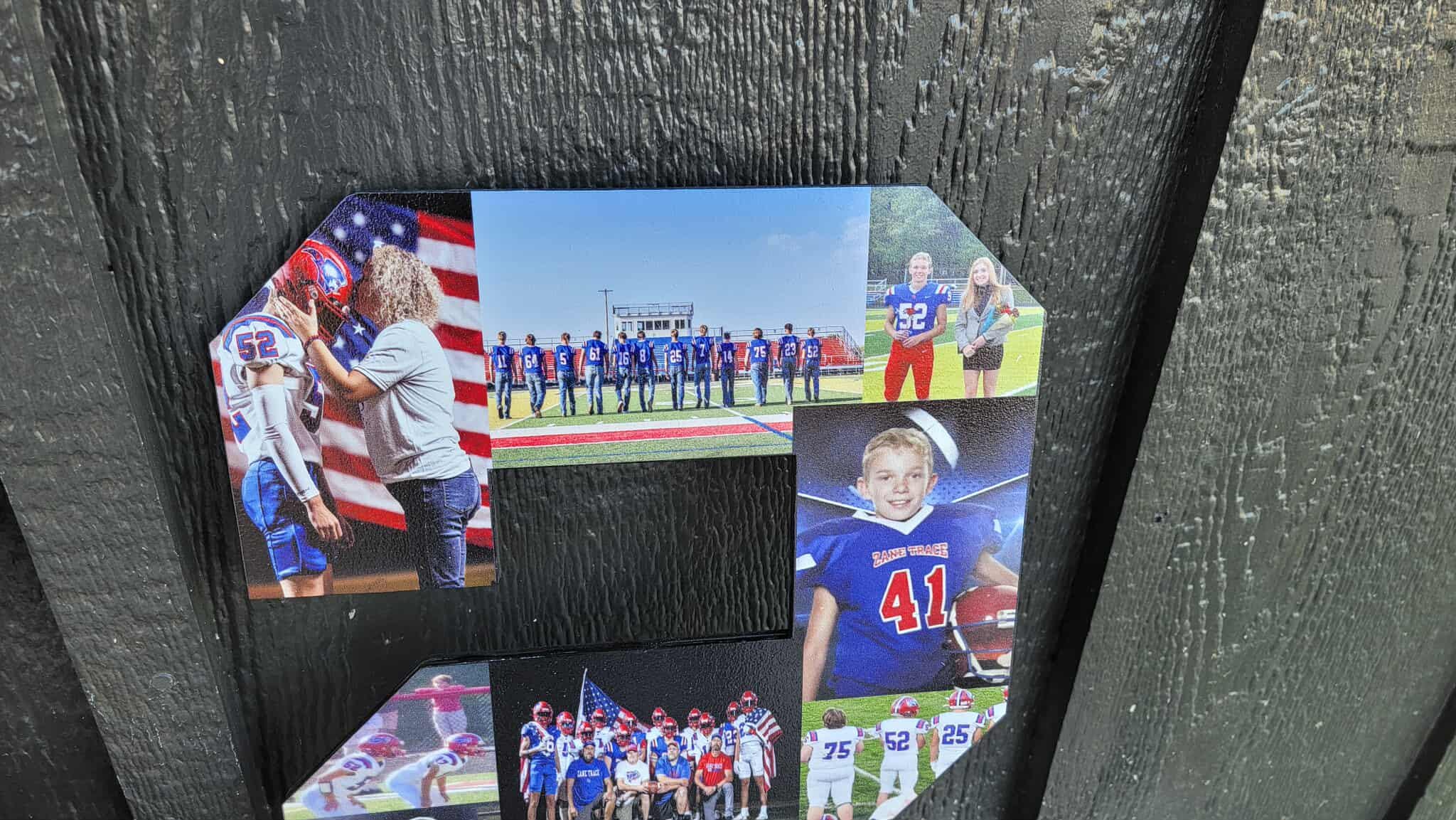 Here we have custom sports number personalized with photos sign! The image is printed directly onto the wood with our UV printer! These are handmade in our shop in Tarlton, Ohio and we offer Free Shipping to the US. NO LIMITS ON COLORS!! The printing will be very similar to the colors in your logo or choice of artwork. Each piece has its own natural texture and grain pattern, so no two pieces will be alike. You will be able to see some of the grain through the image itself.