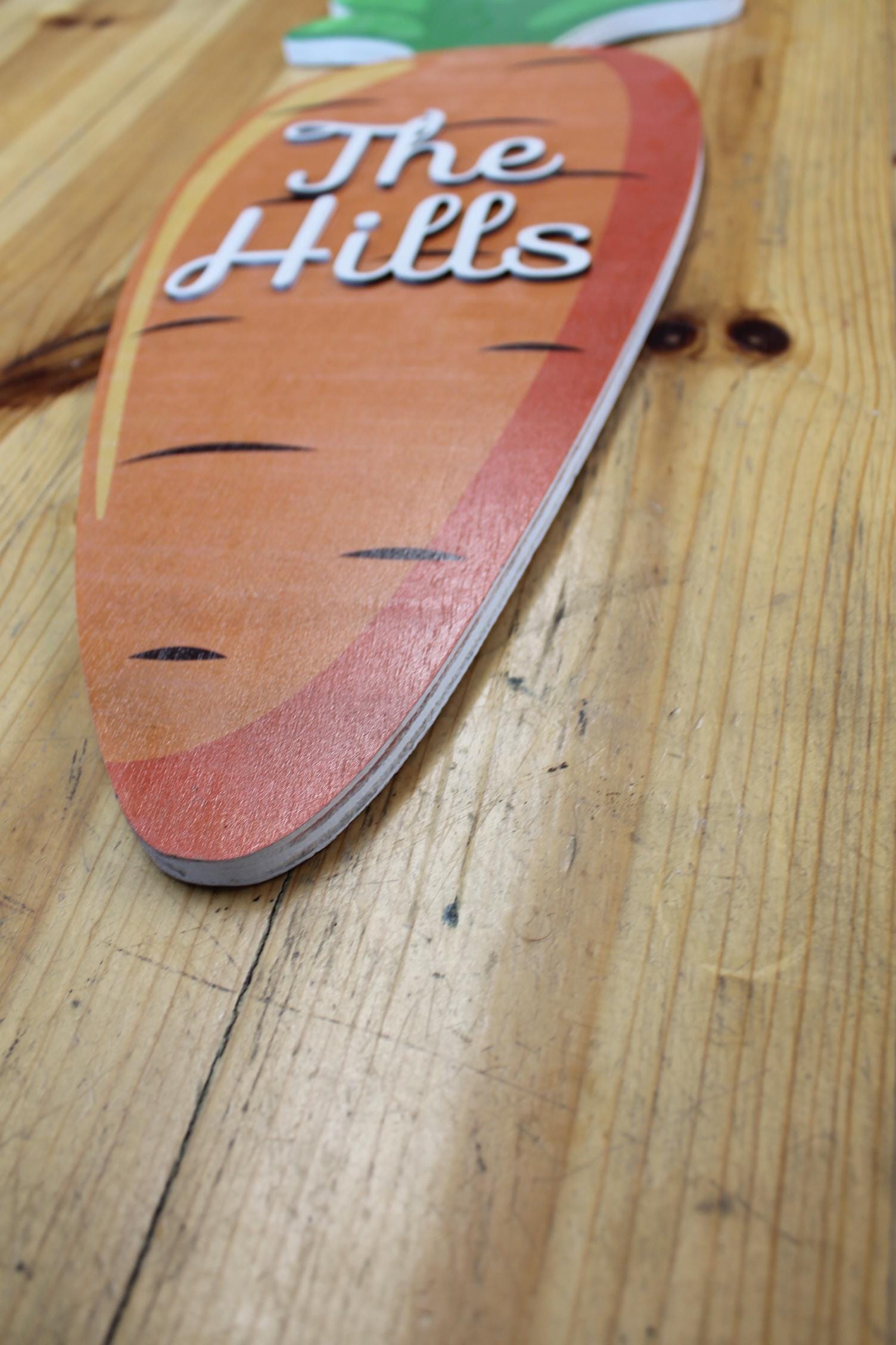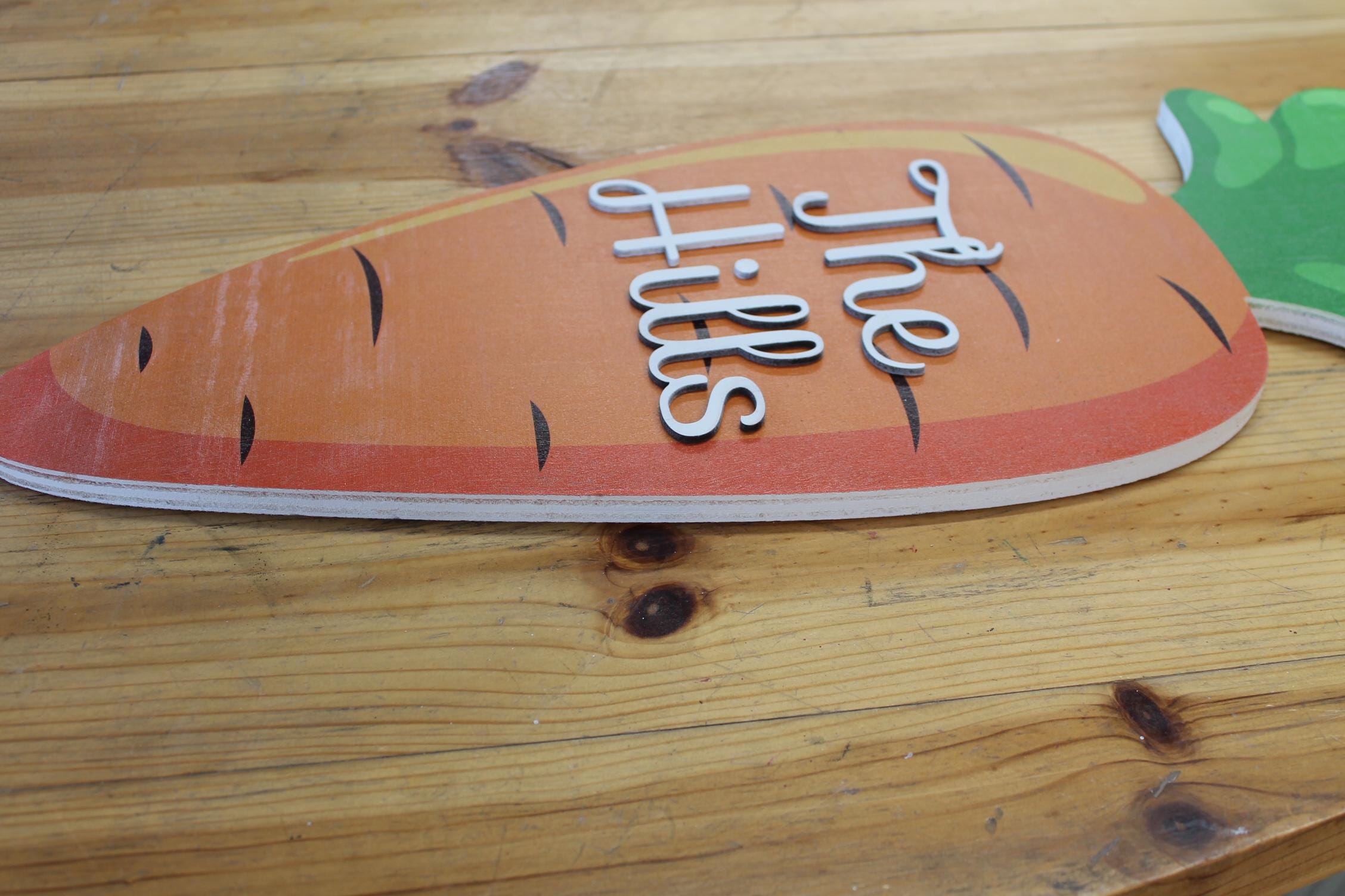 It has laser cut plywood letters and graphics. Your custom sign will come standard with these graphics. The lettering can be customized, our font options are in the photos.