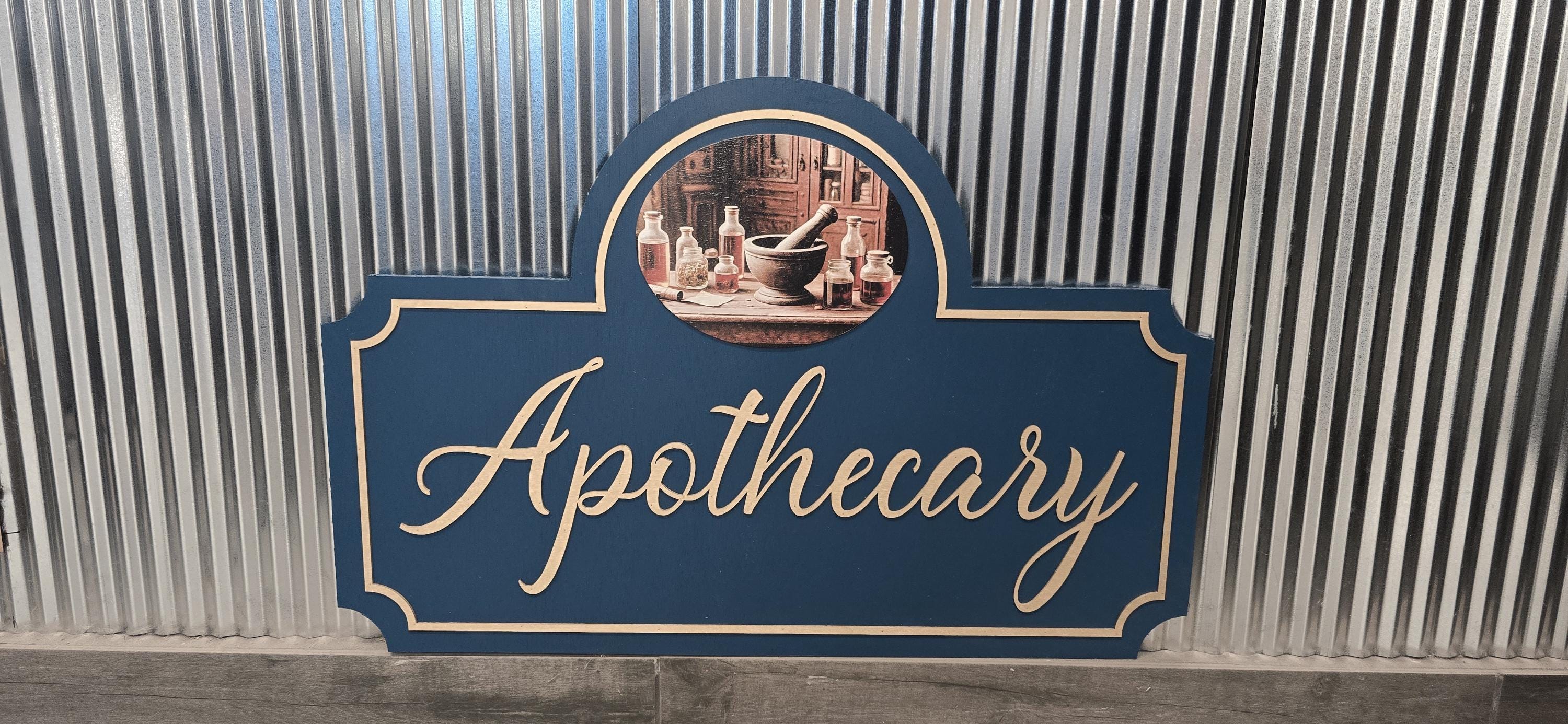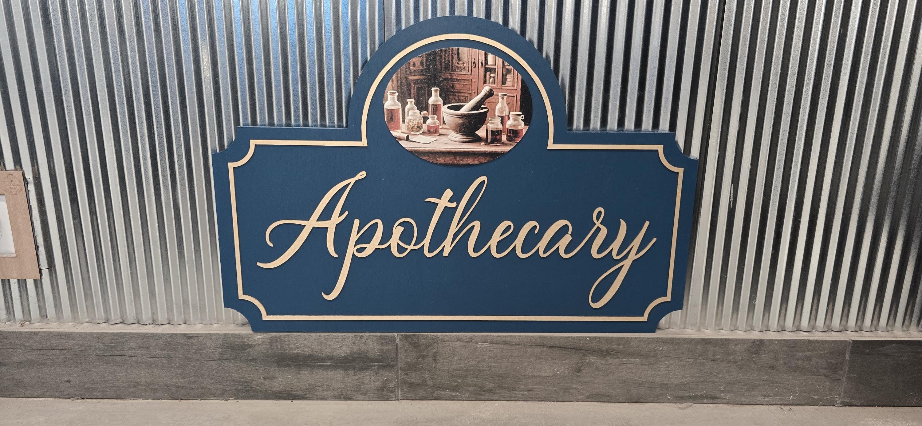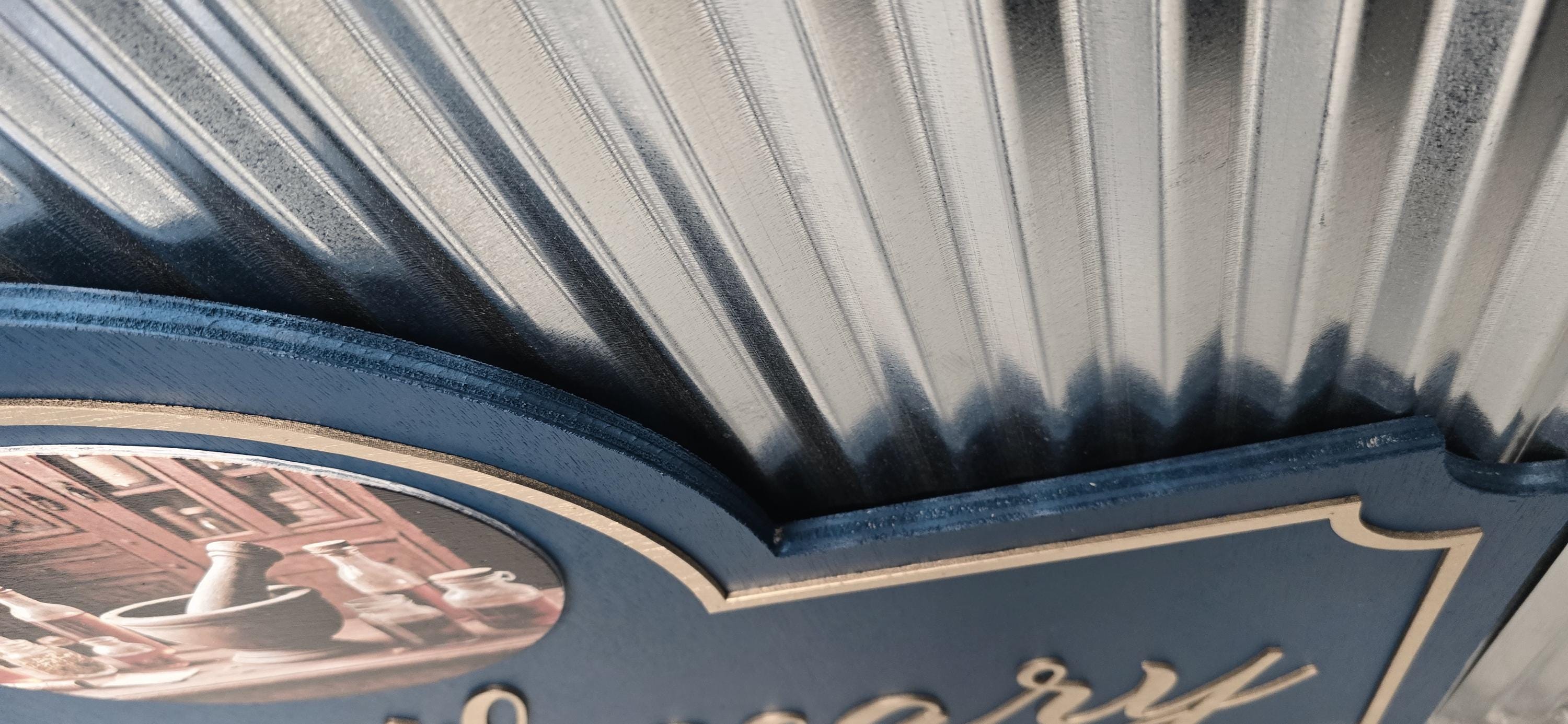The size is in inches, and it is the overall size of the size. It is mounted on a blue painted 3/8 inch plywood backer with 1/4 inch laser cut plywood letters. The image is printed onto a piece of wood and it will be securely fastened to the sign. We have used two different techniques to create the sign.