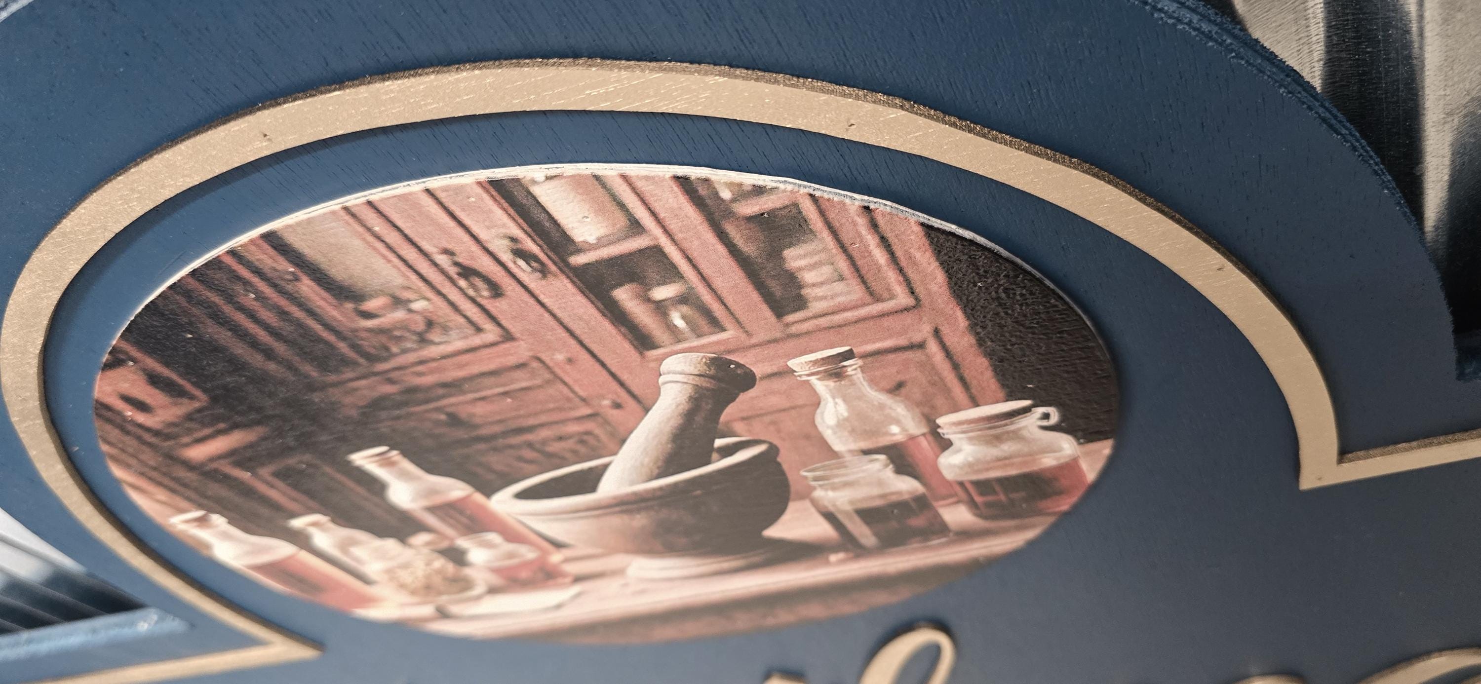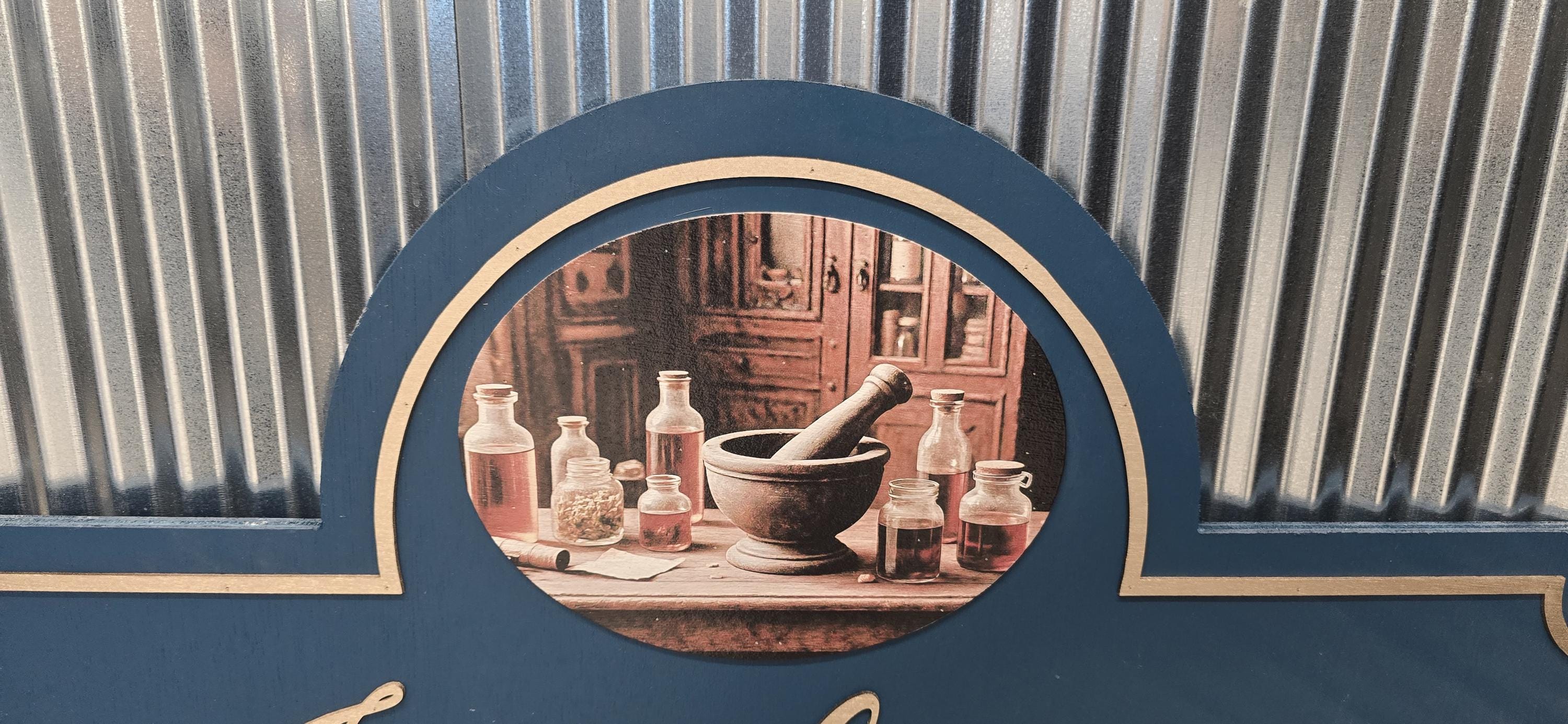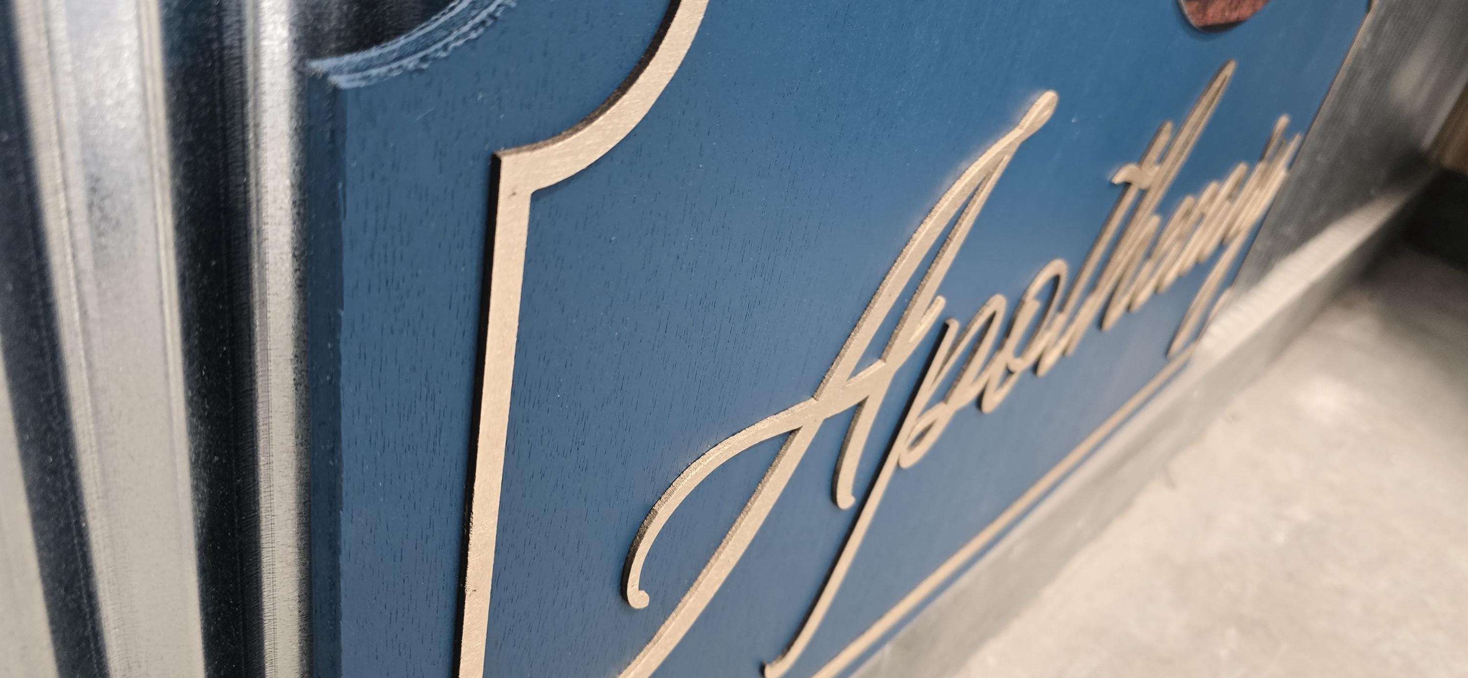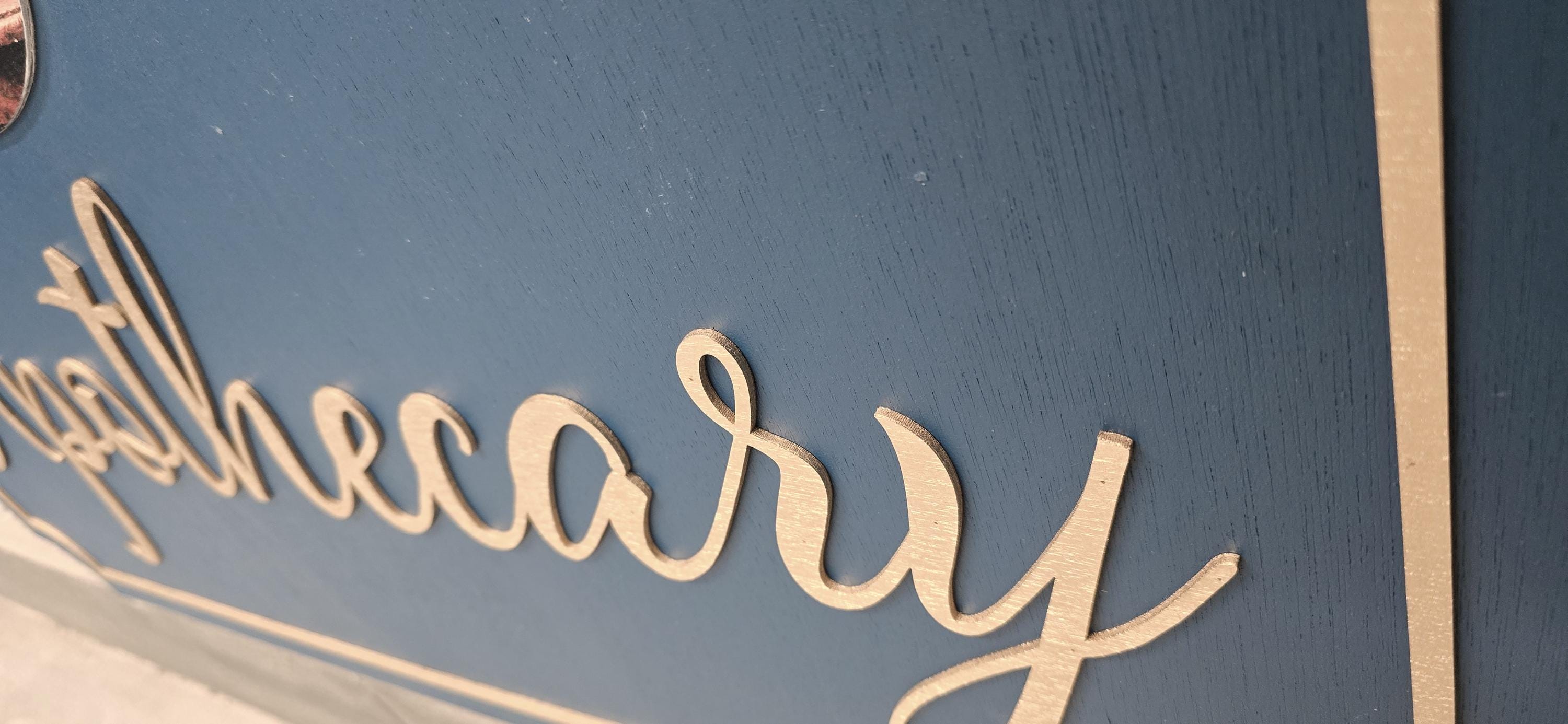 The size is in inches, and it is the overall size of the size. It is mounted on a blue painted 3/8 inch plywood backer with 1/4 inch laser cut plywood letters. The image is printed onto a piece of wood and it will be securely fastened to the sign. We have used two different techniques to create the sign.