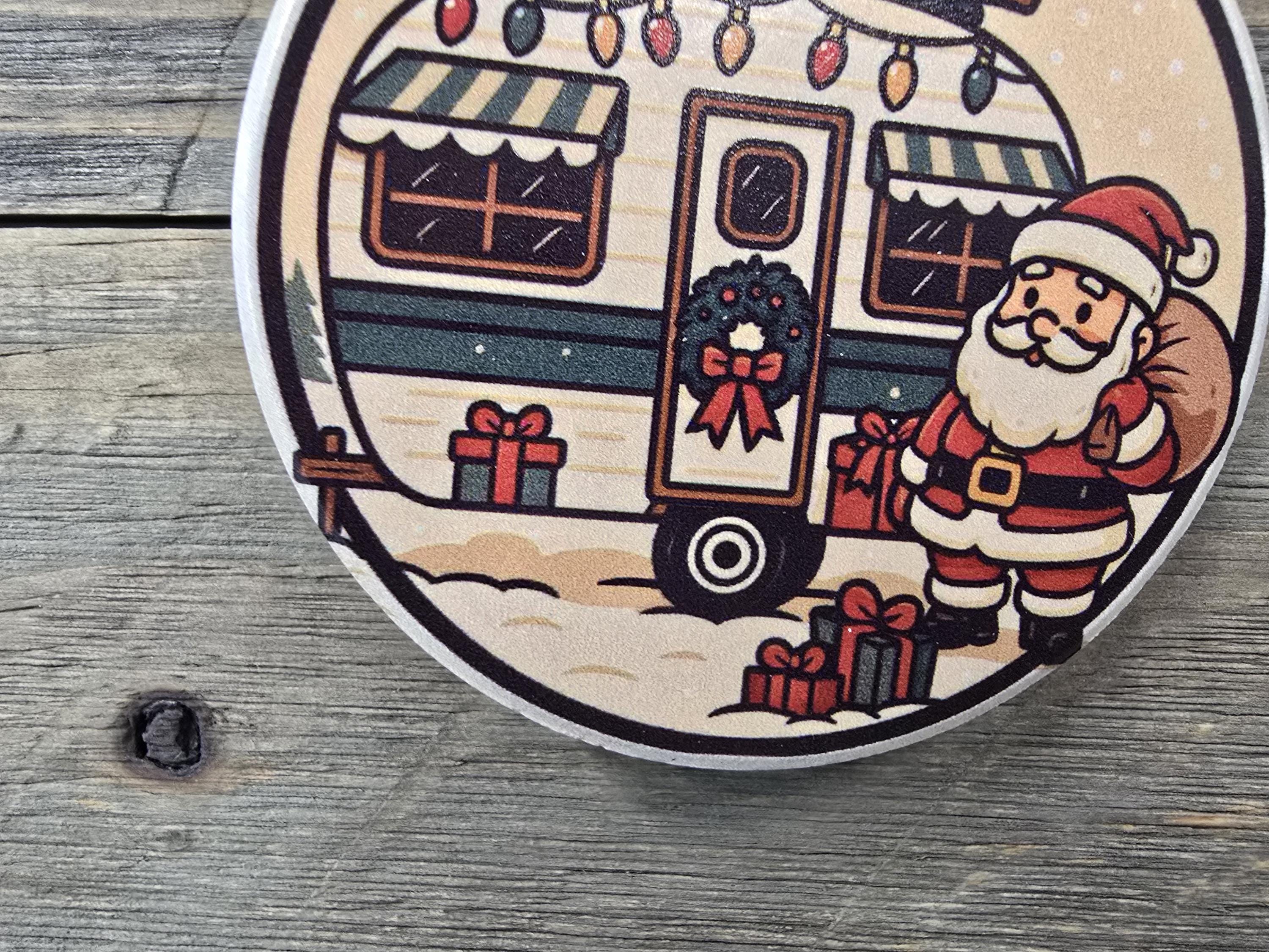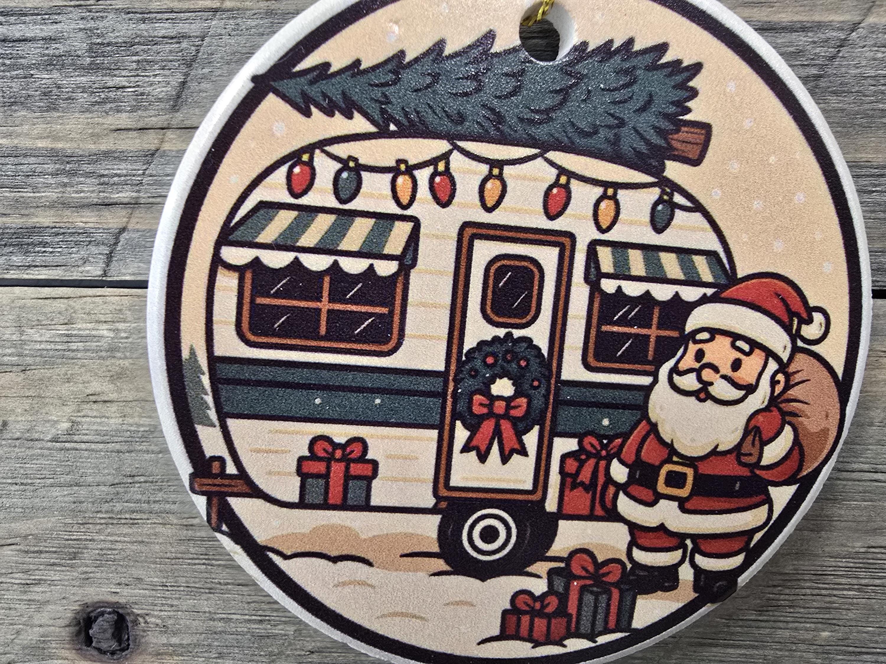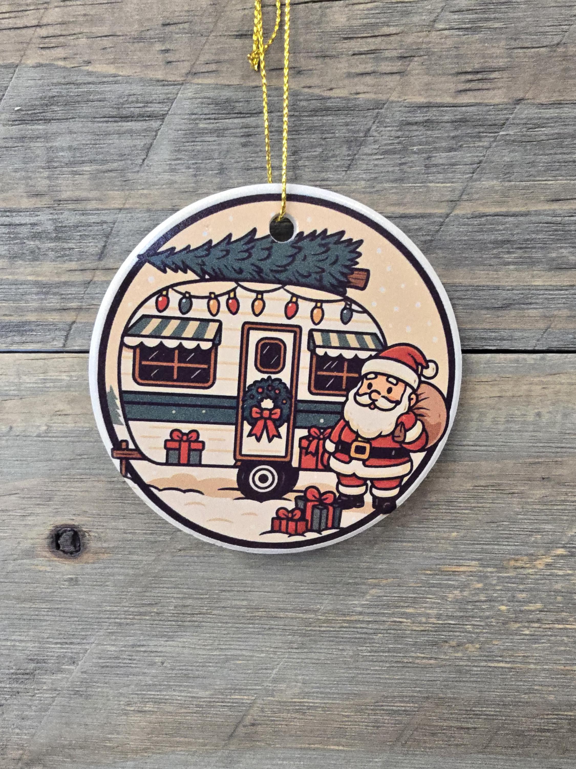 Celebrate the magic of the season with this charming ceramic ornament featuring Santa delivering presents that is perfect for the holiday season and for camping enthusiasts. Designed to evoke cozy winter nights and festive farmhouse charm, this ornament makes a perfect addition to your Christmas tree decorations or a thoughtful holiday gift for loved ones.