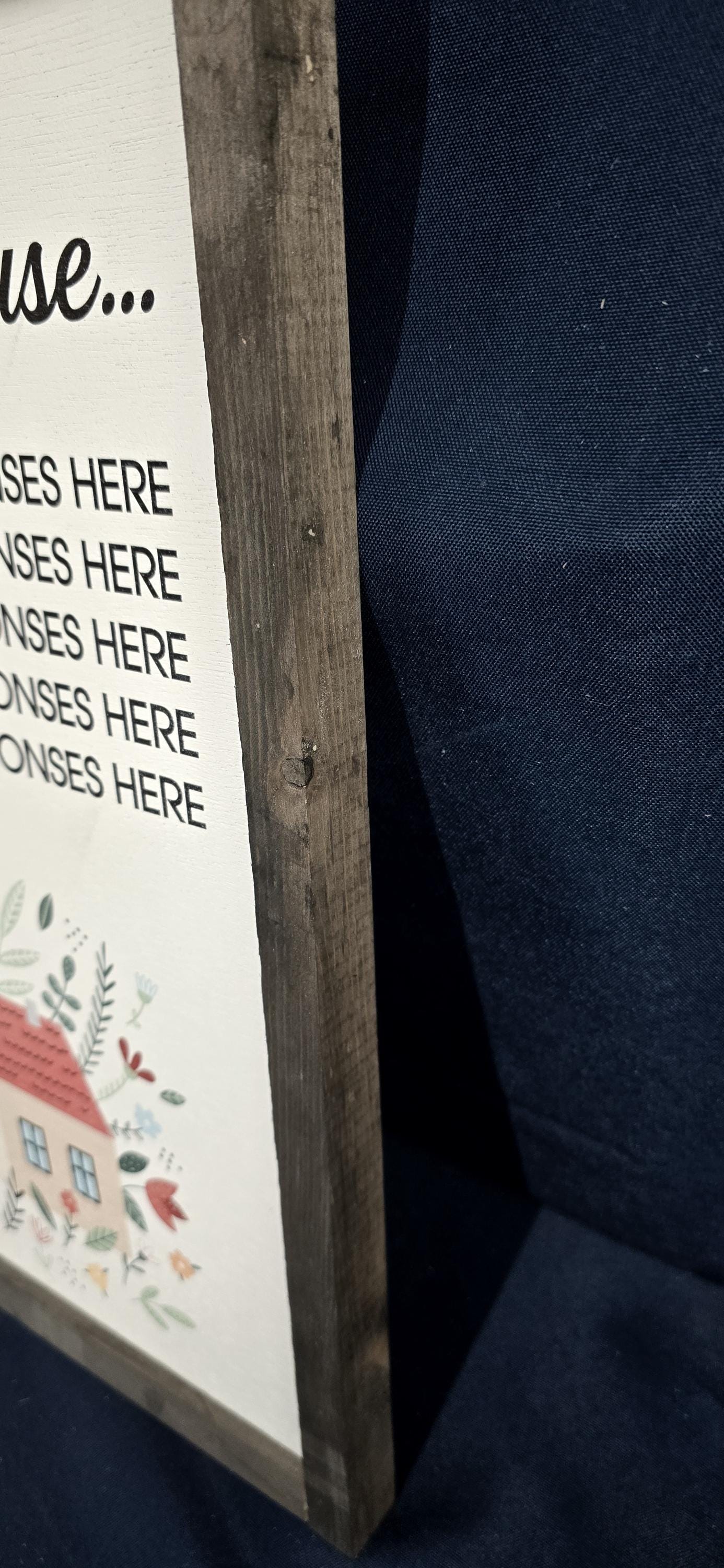 The item we are offering is a wonderful handmade family rules sign. We take your rules and turn it into a custom wood sign or we can start from scratch.
