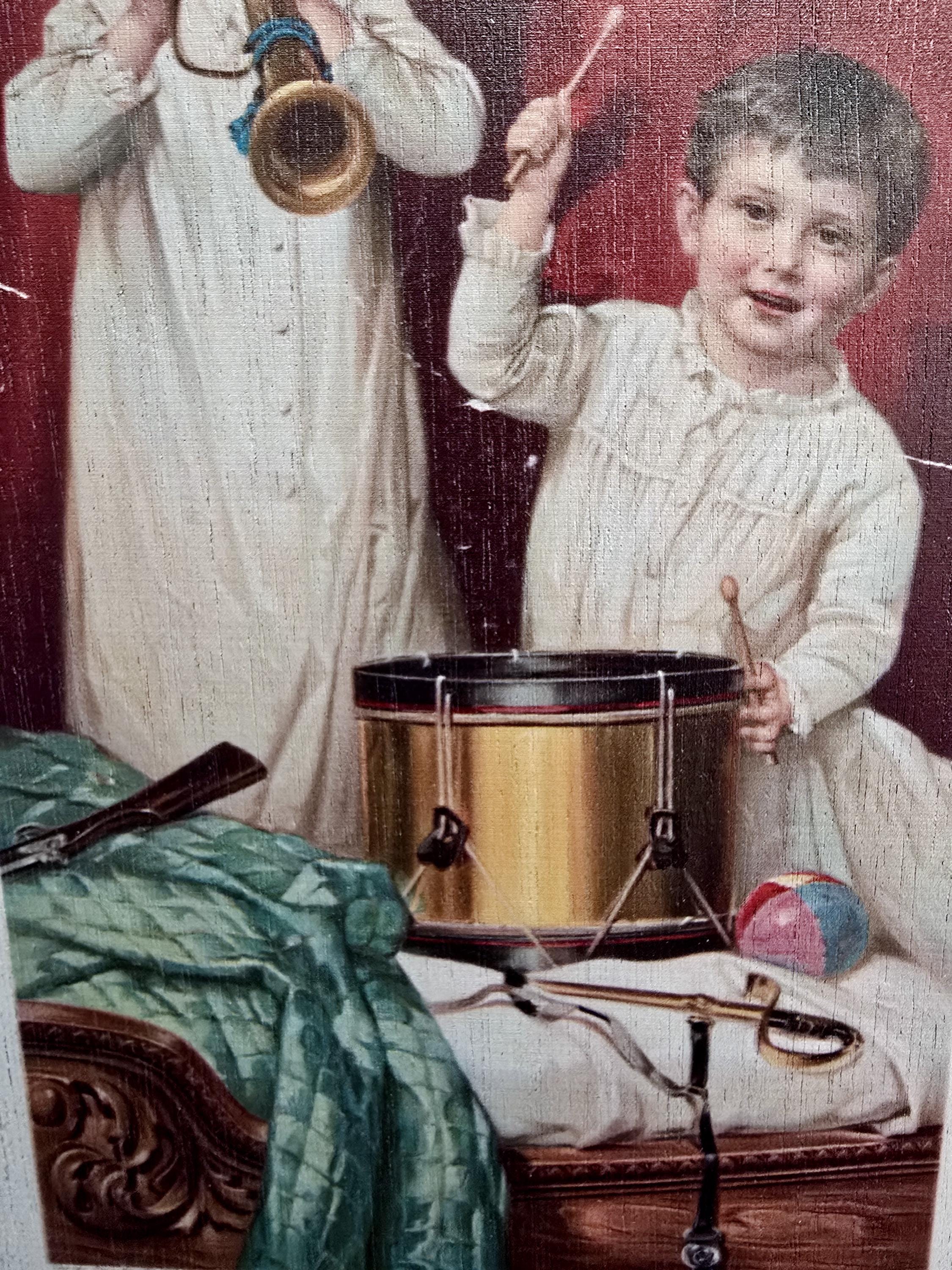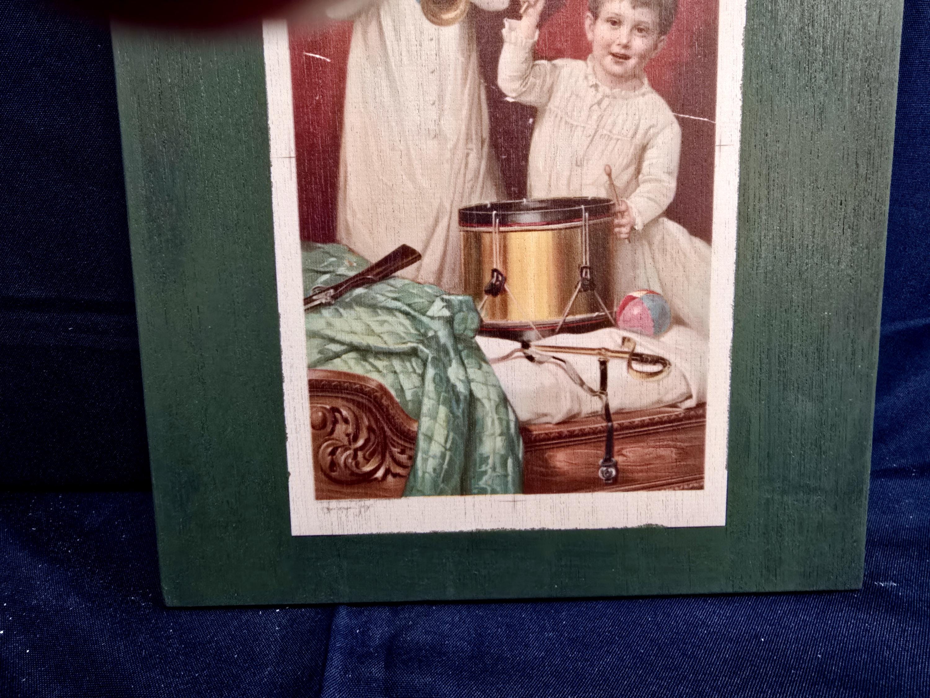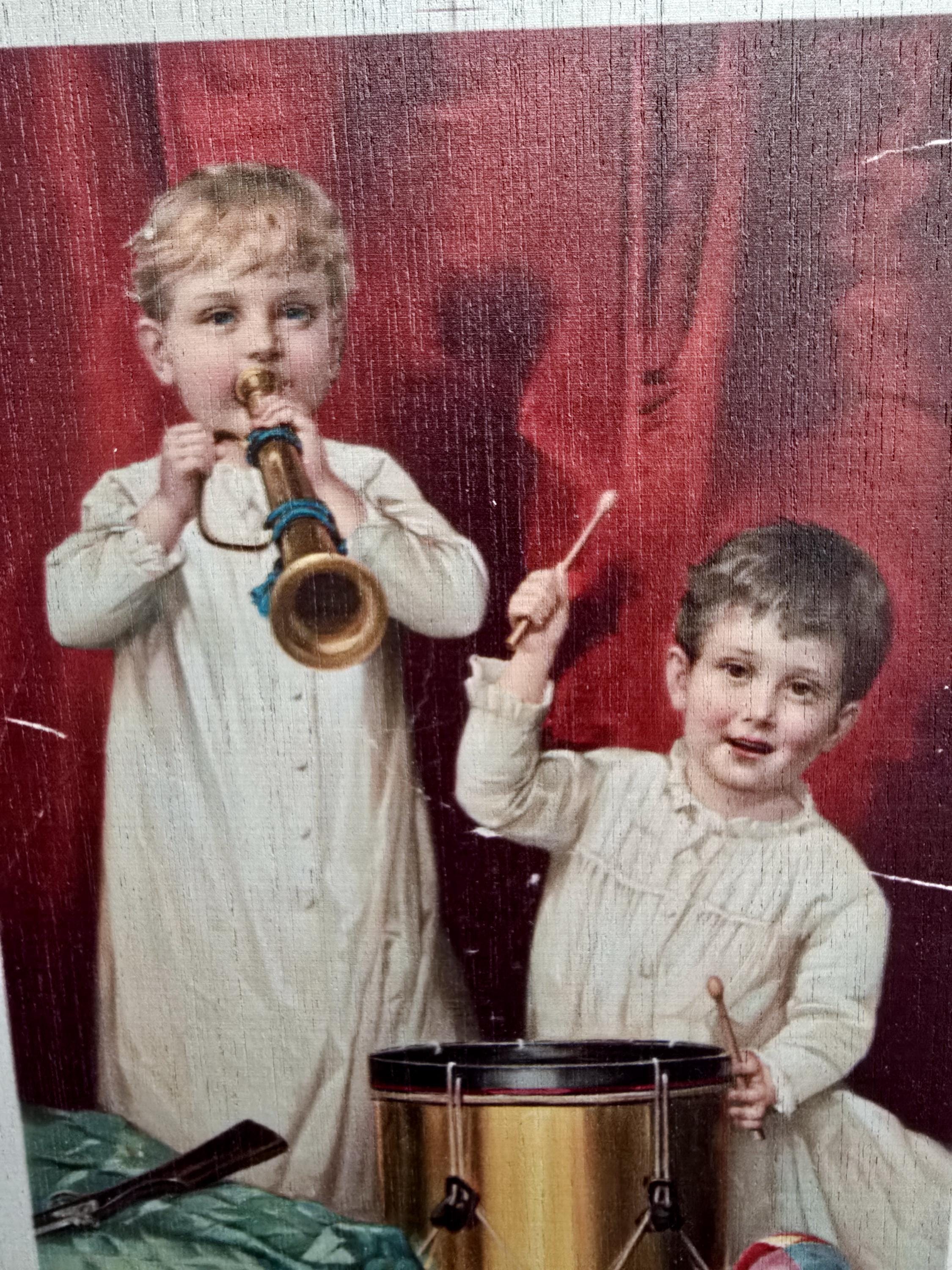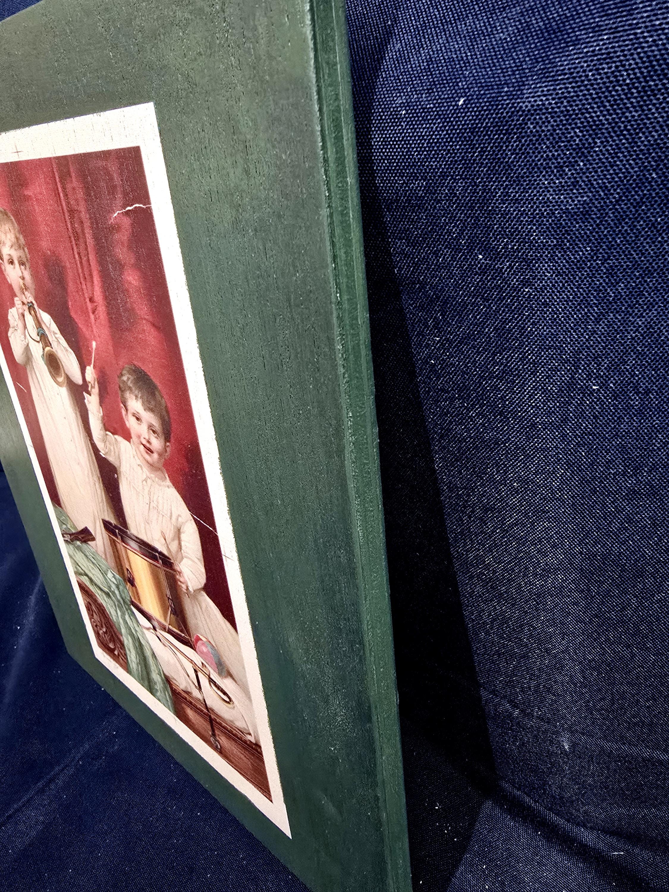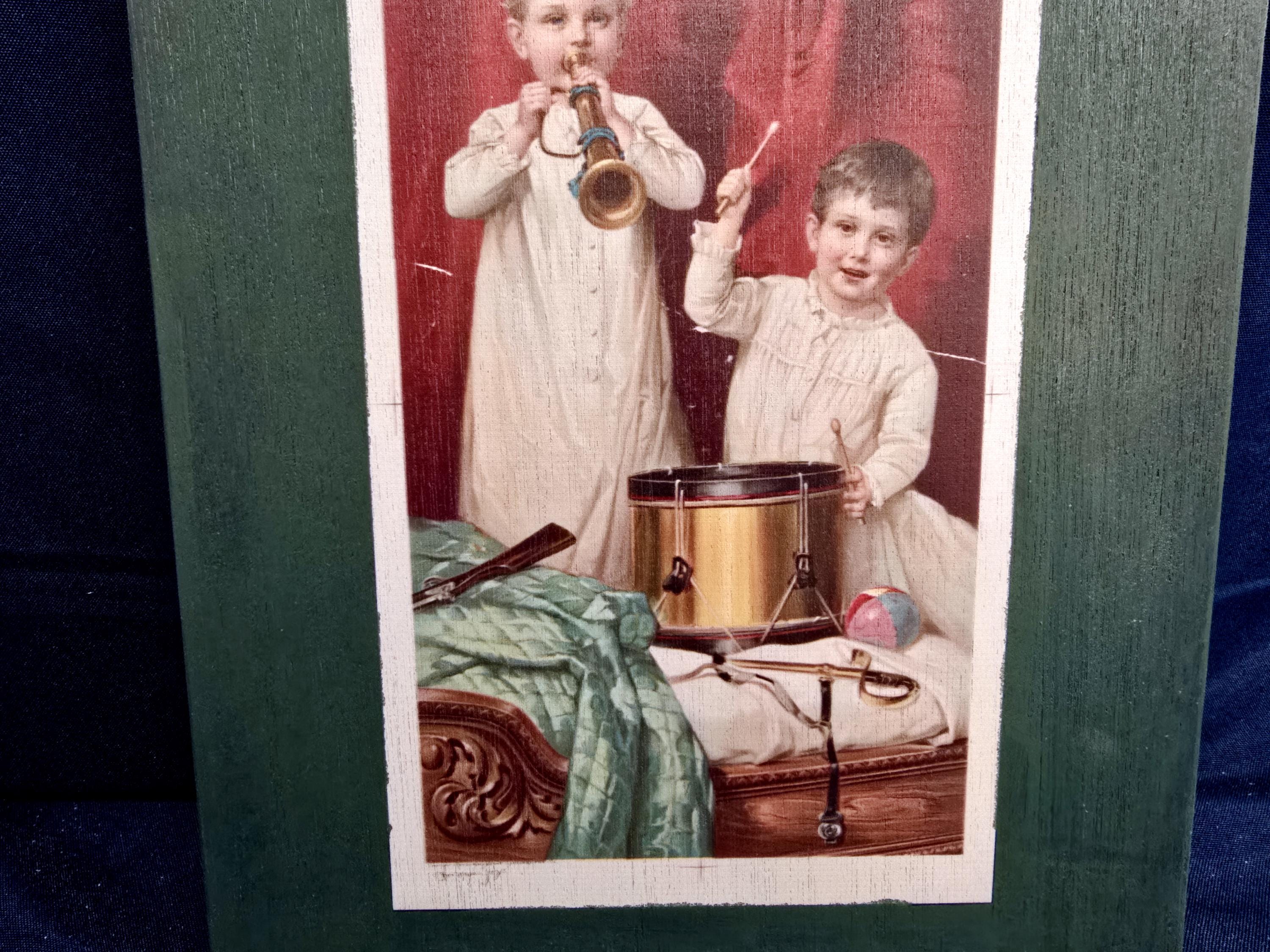 Drummer Boy and Trumpet Player Vintage Holiday Photo Printed on wood Sign for Christmas Display