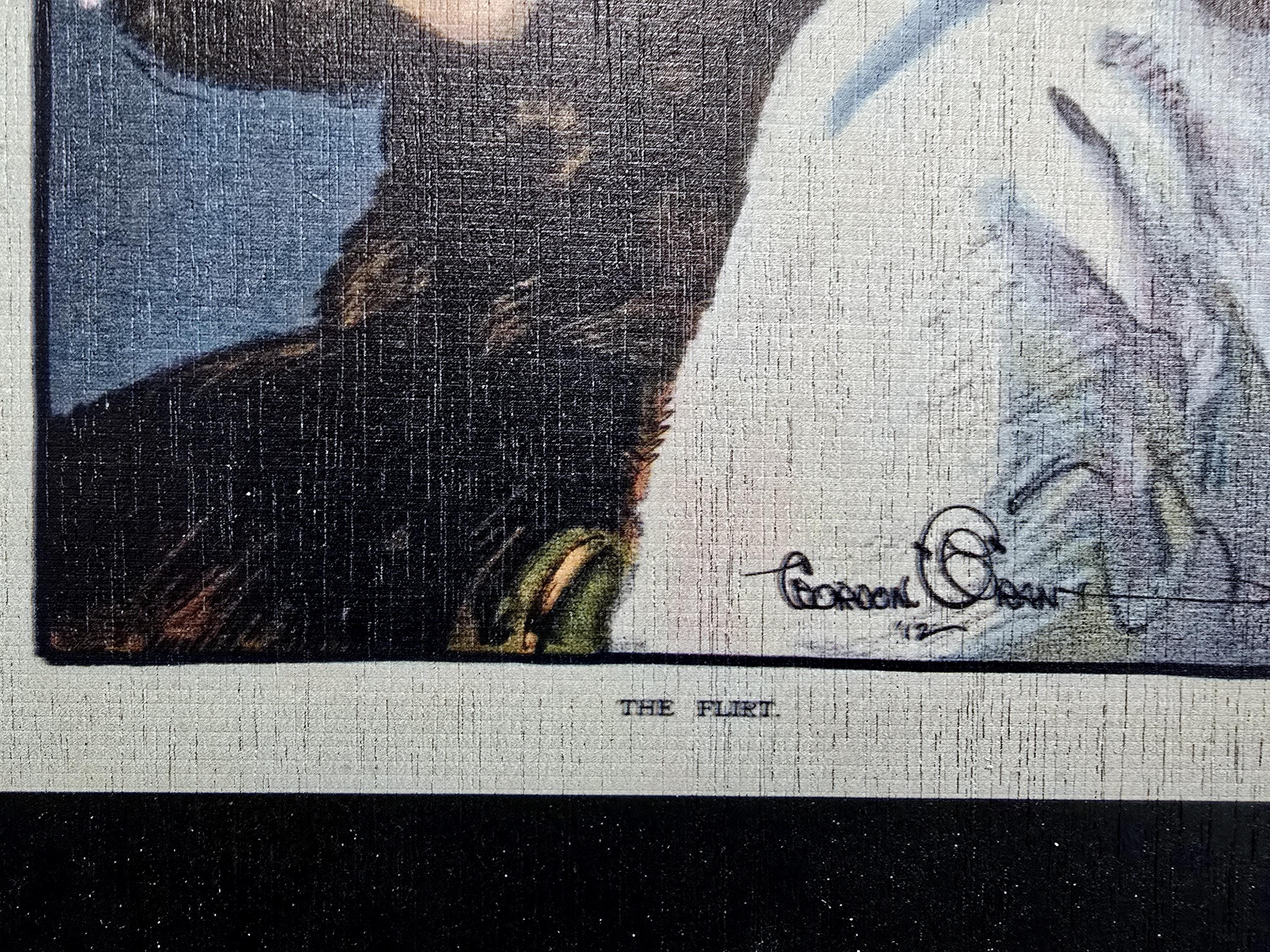 The graphic has been printed onto the wooden backer. The frame is also printed to mimic a real frame. Please see the photos.