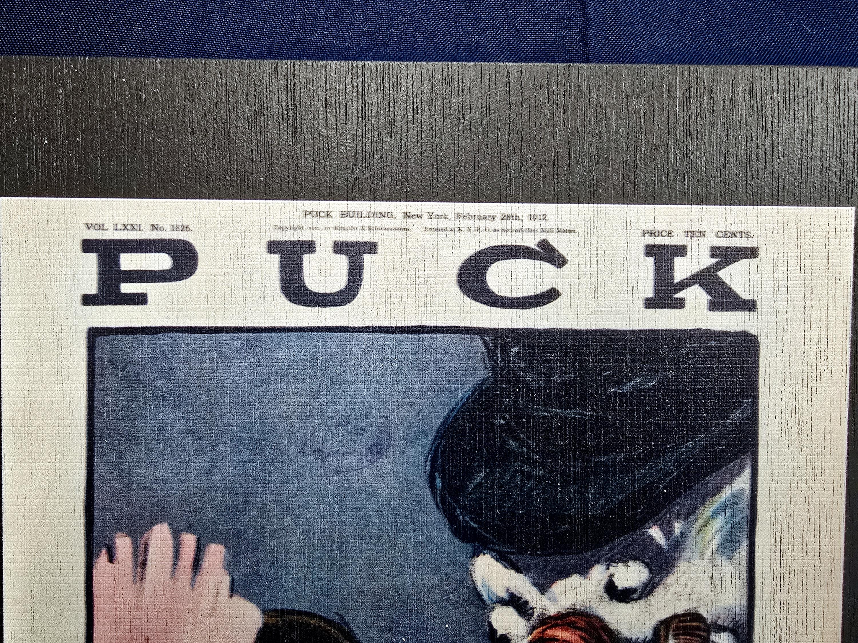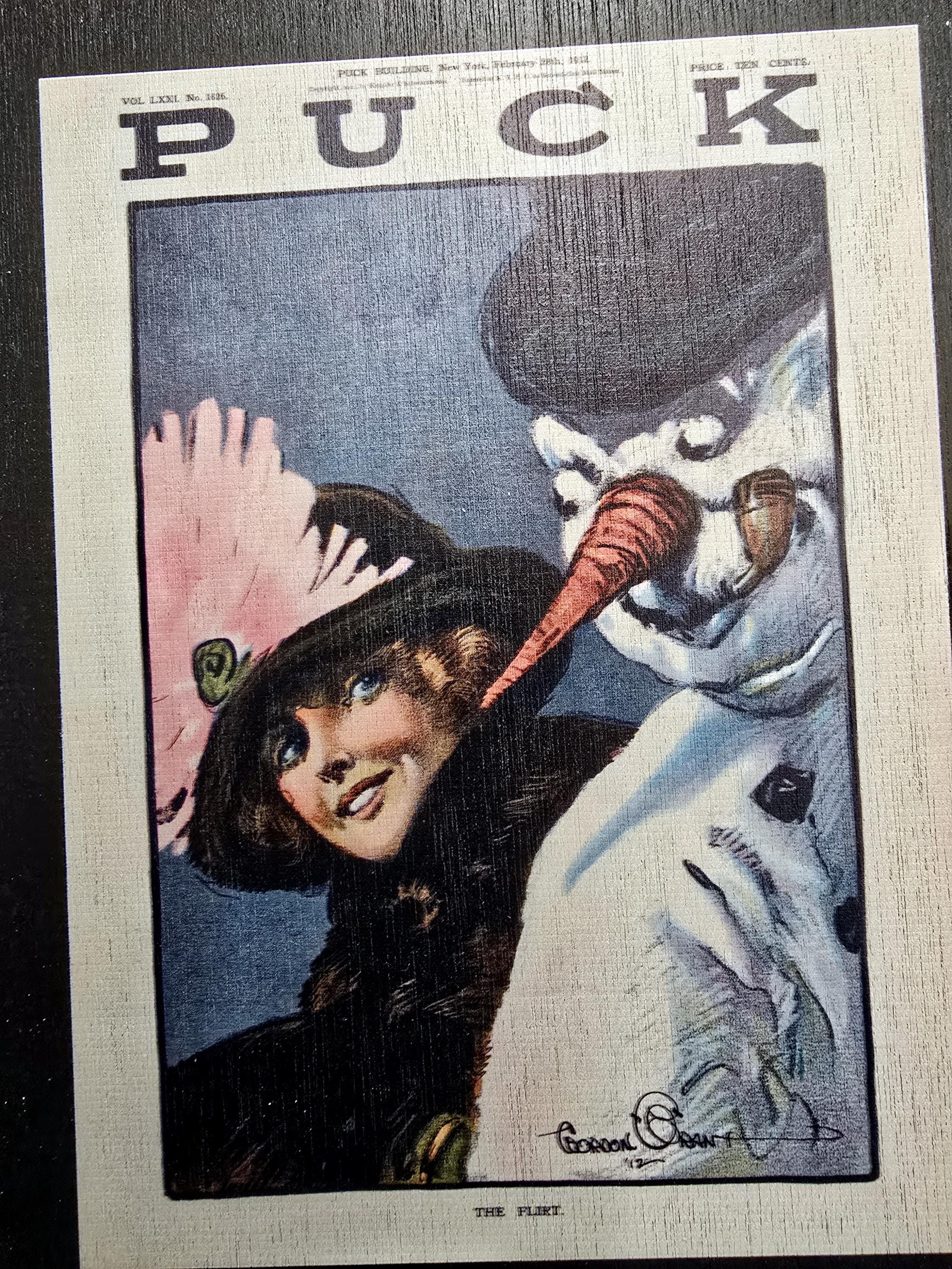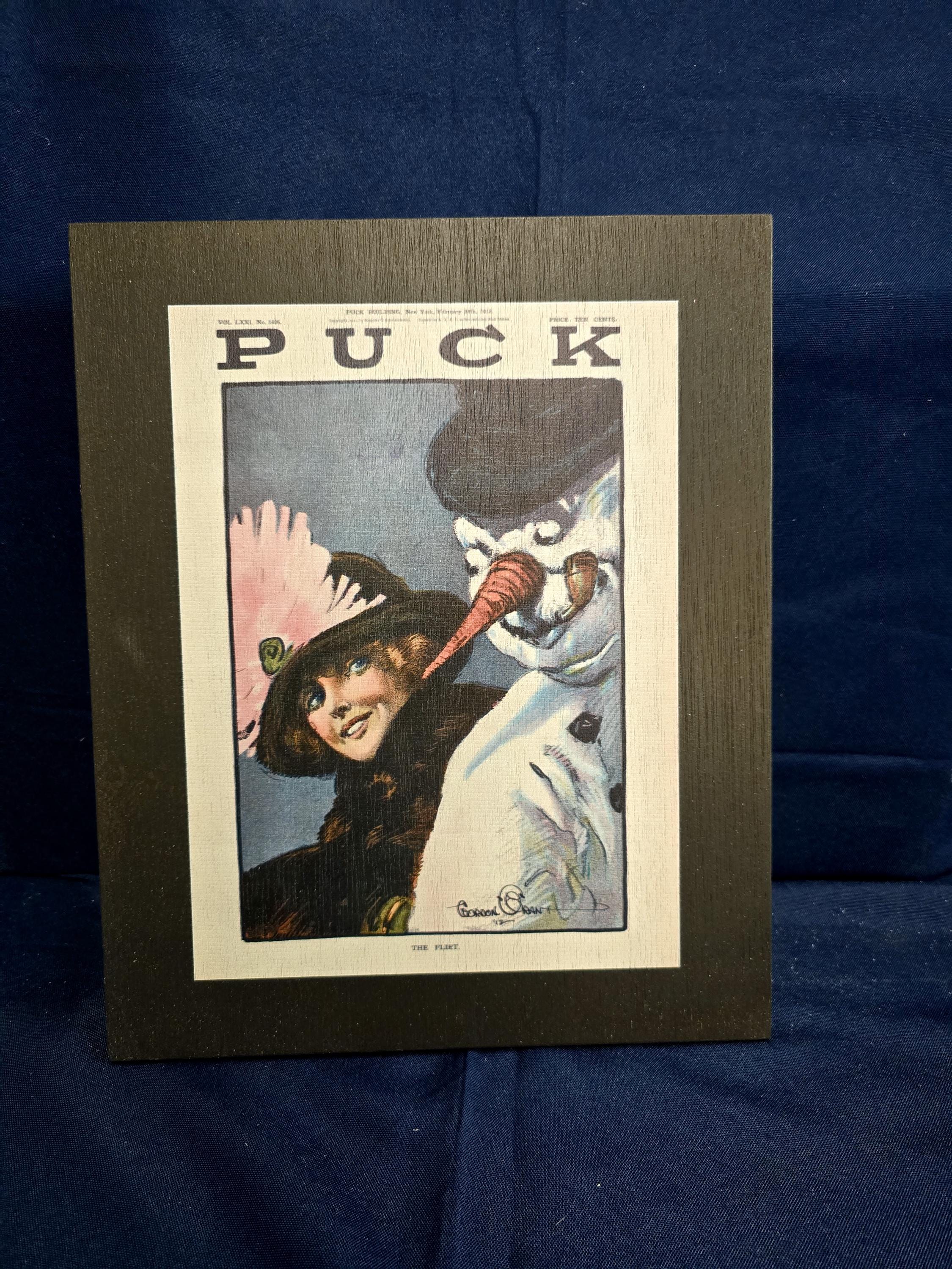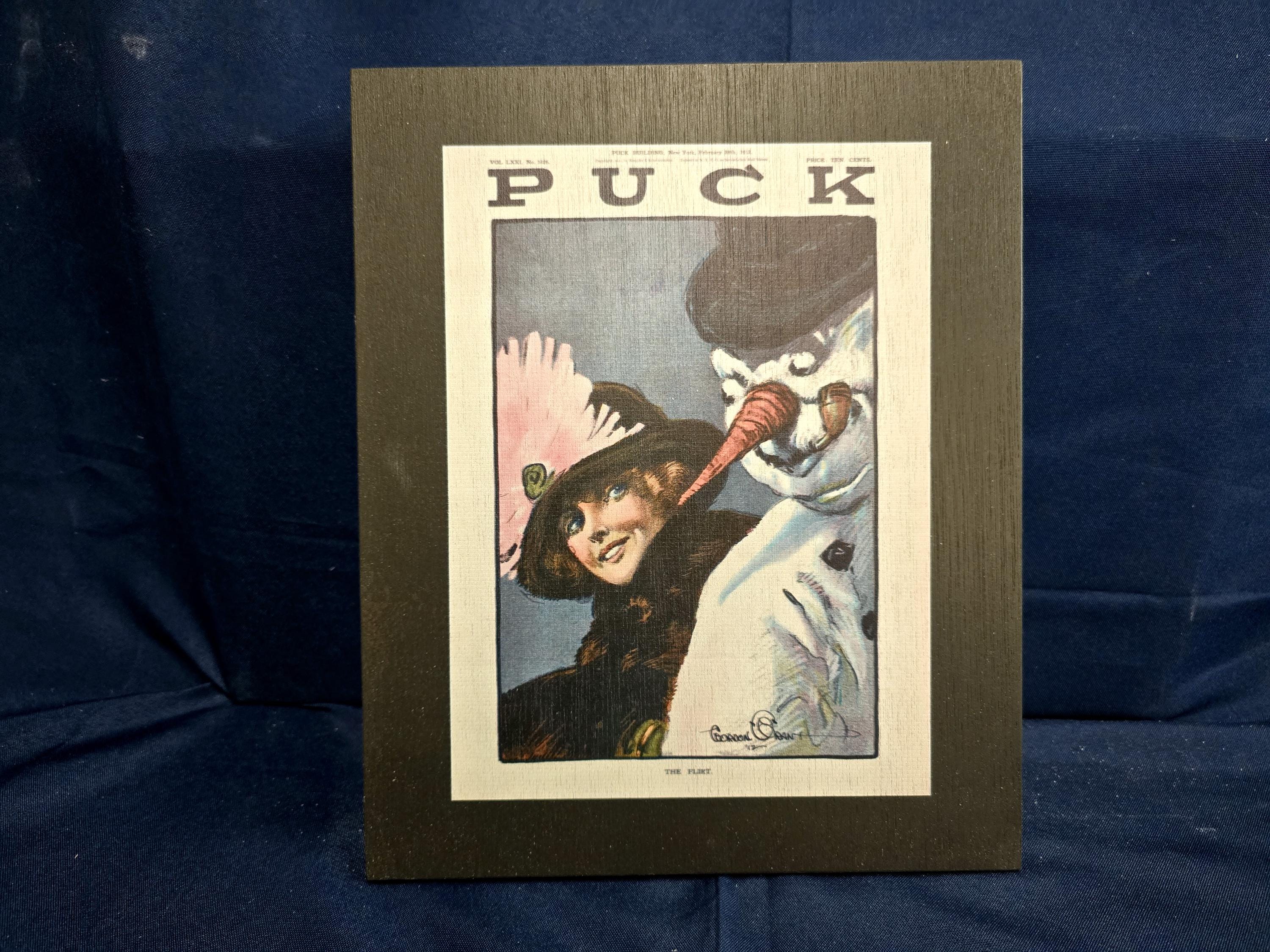 Snowman and Lady Christmas Puck Magazine Cover Printed Wood Sign for Decoration, Wall Art