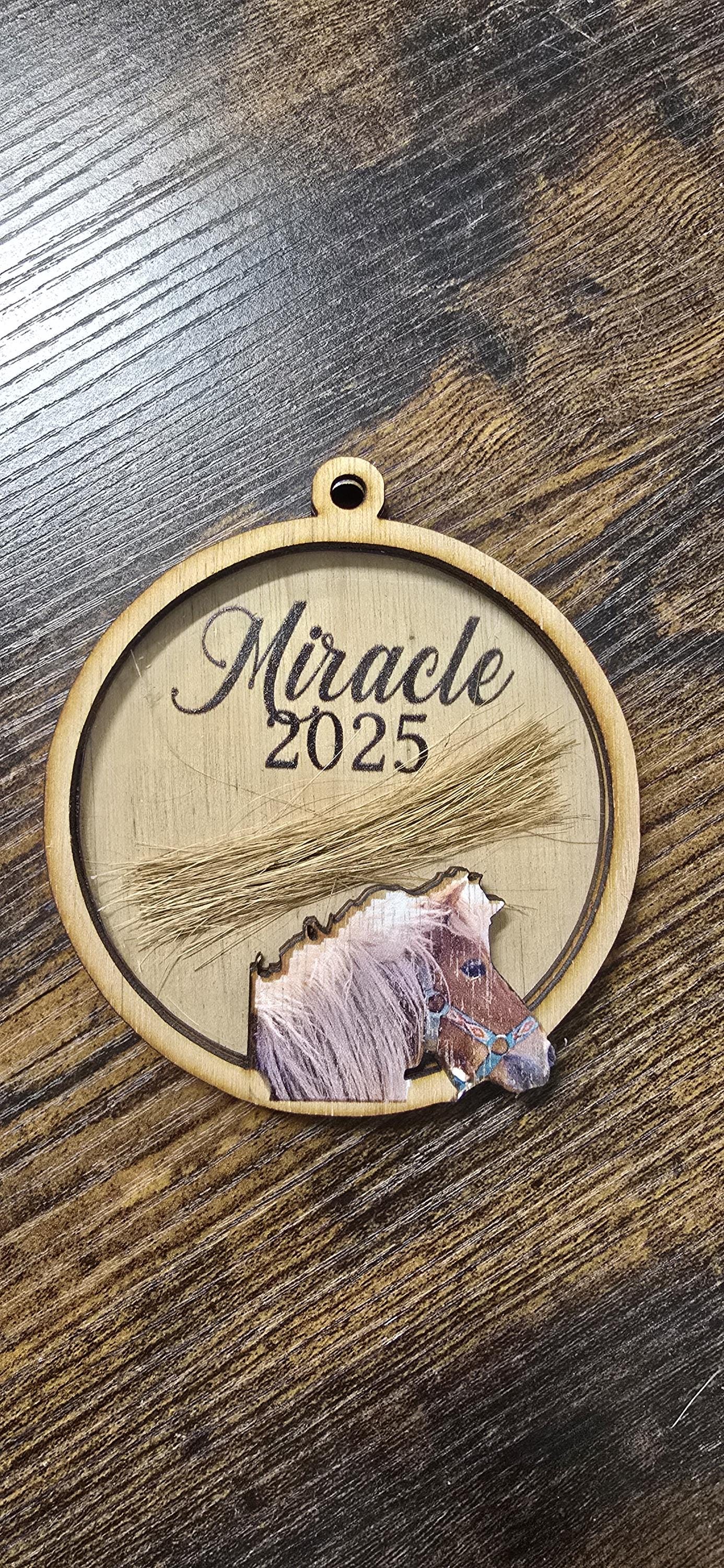 Custom Horse Hair Ornament • Personalized Photo & Text Wood Keepsake • Real Horsehair Memorial Gift • Printed Equestrian Ornament